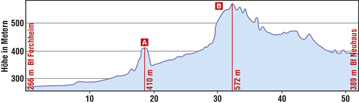 Während gestern gemütliches Genussradeln auf dem Programm stand, war heute Trainieren für unsere geplante Sommer-Radreise angesagt. Bei 30 °C ging es 600 Höhenmeter durch die südliche Fränkische Schweiz und den Veldensteiner Forst von Forchheim, am Walberla vorbei, über Egloffstein bis nach Neuhaus a. d. Pegnitz.