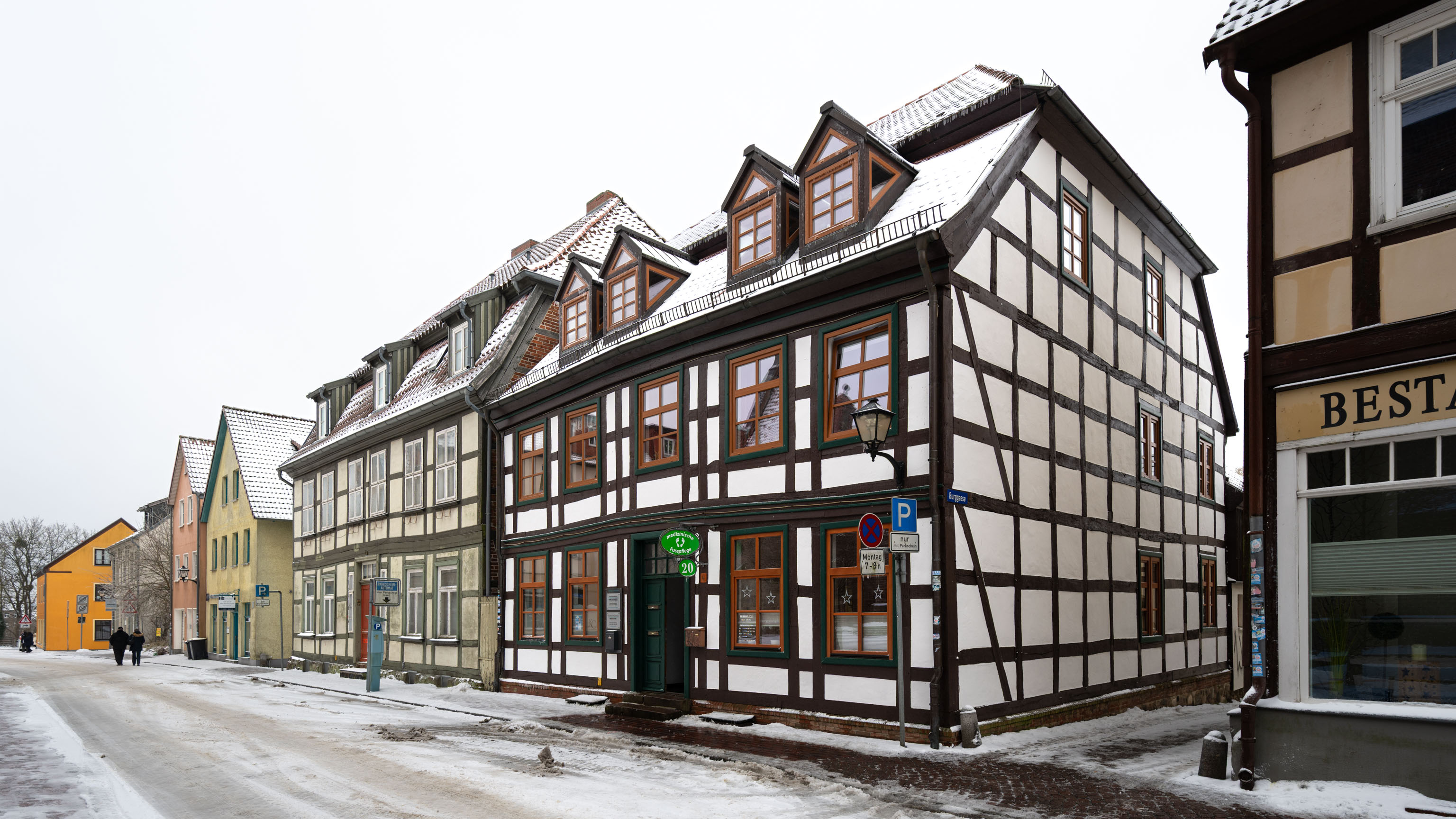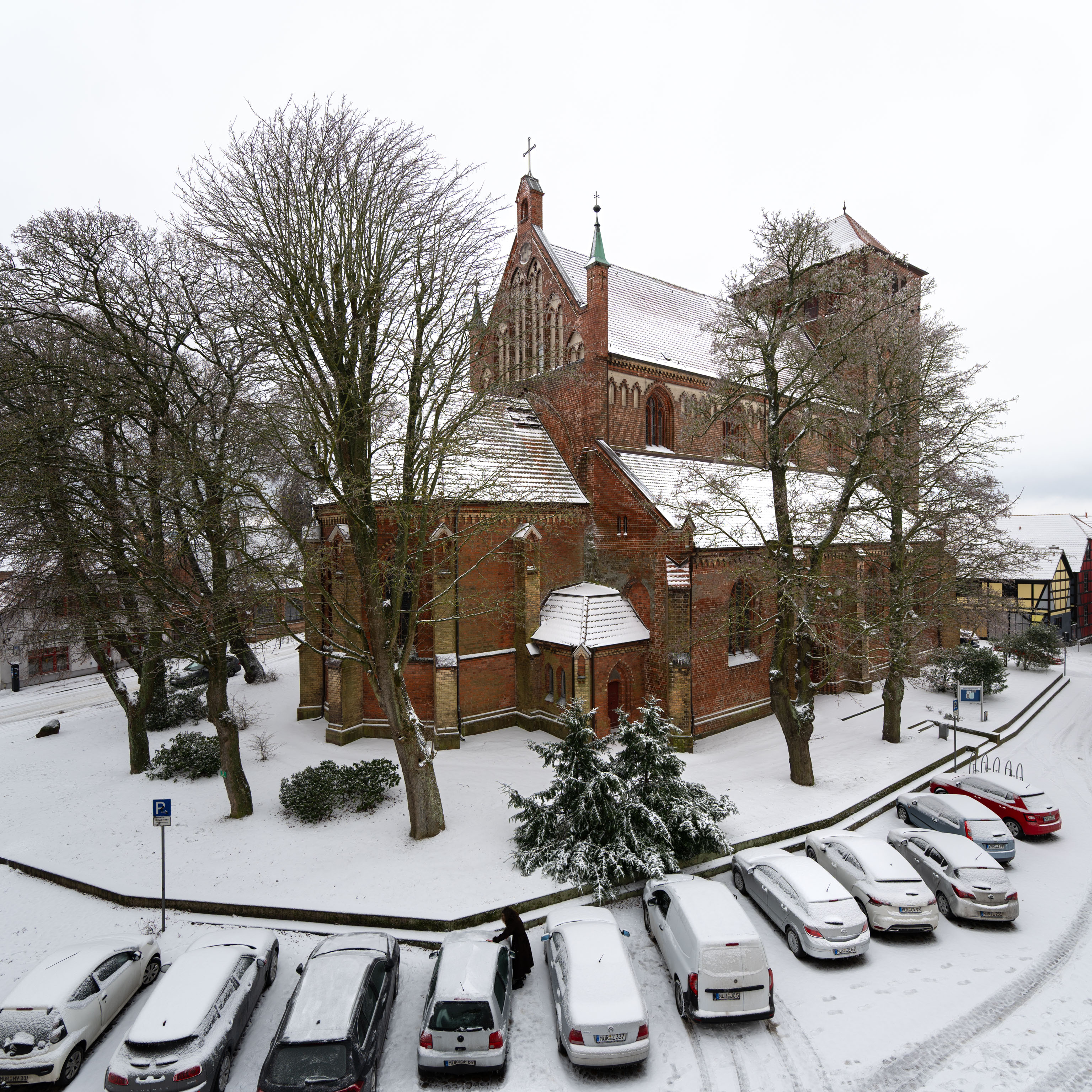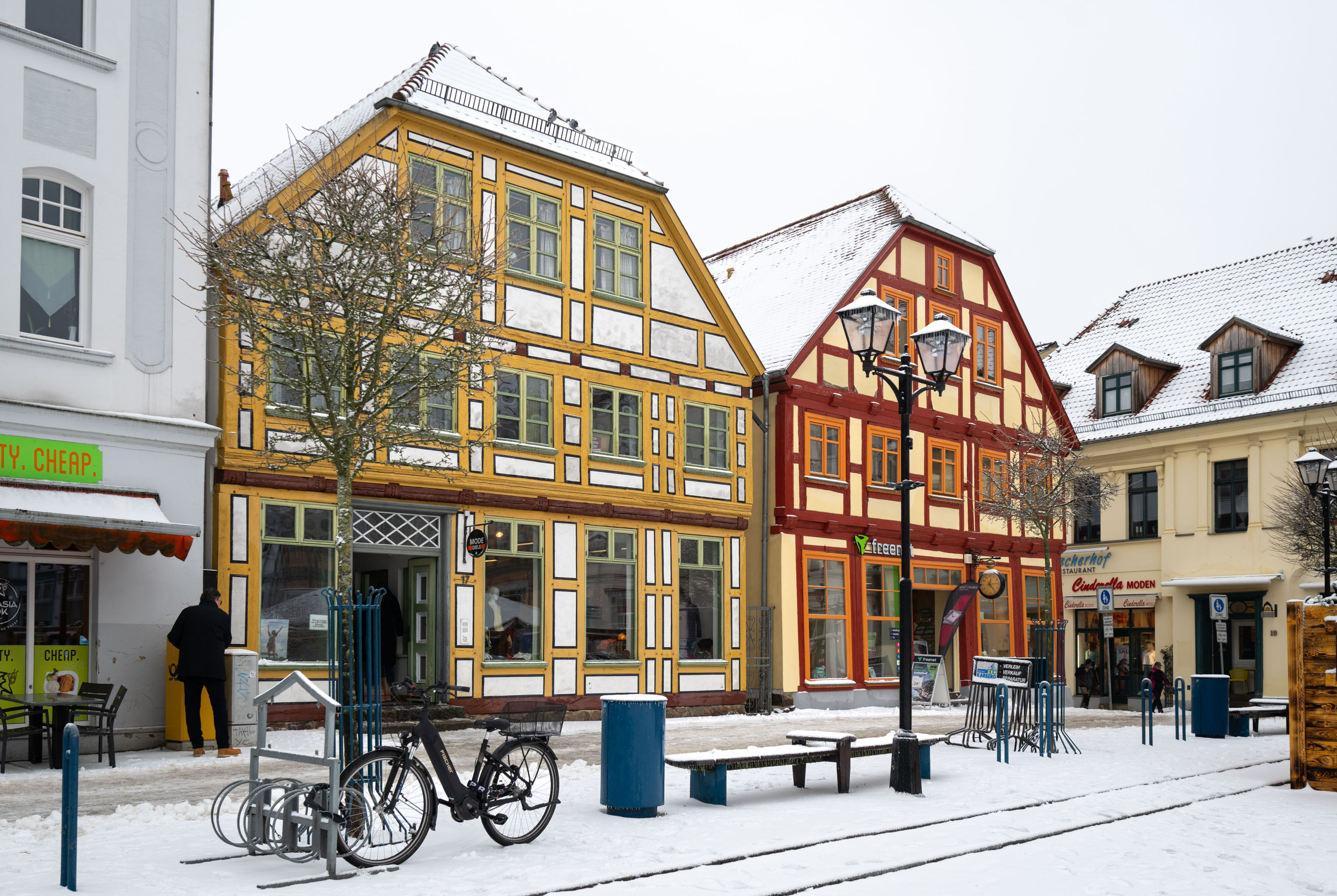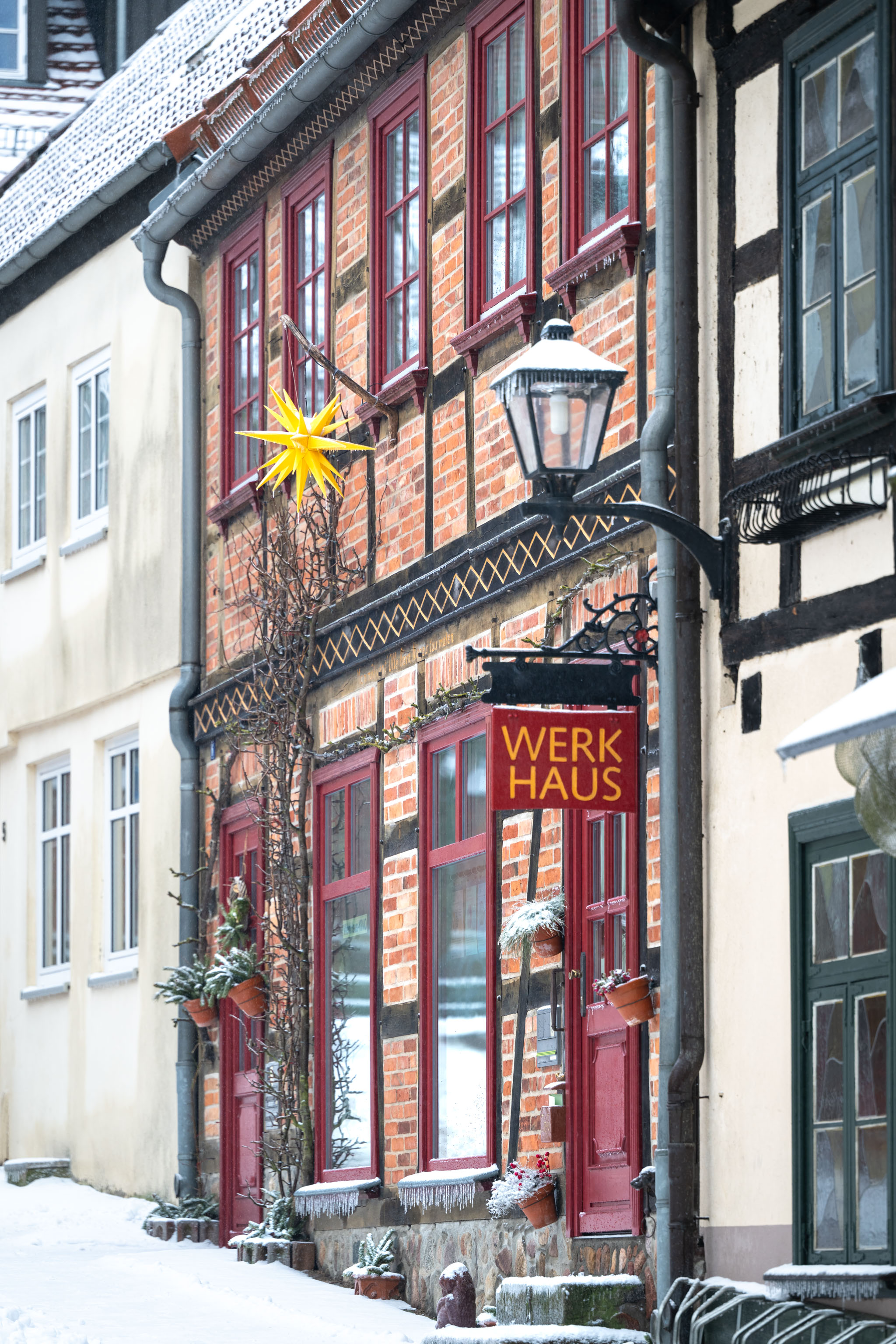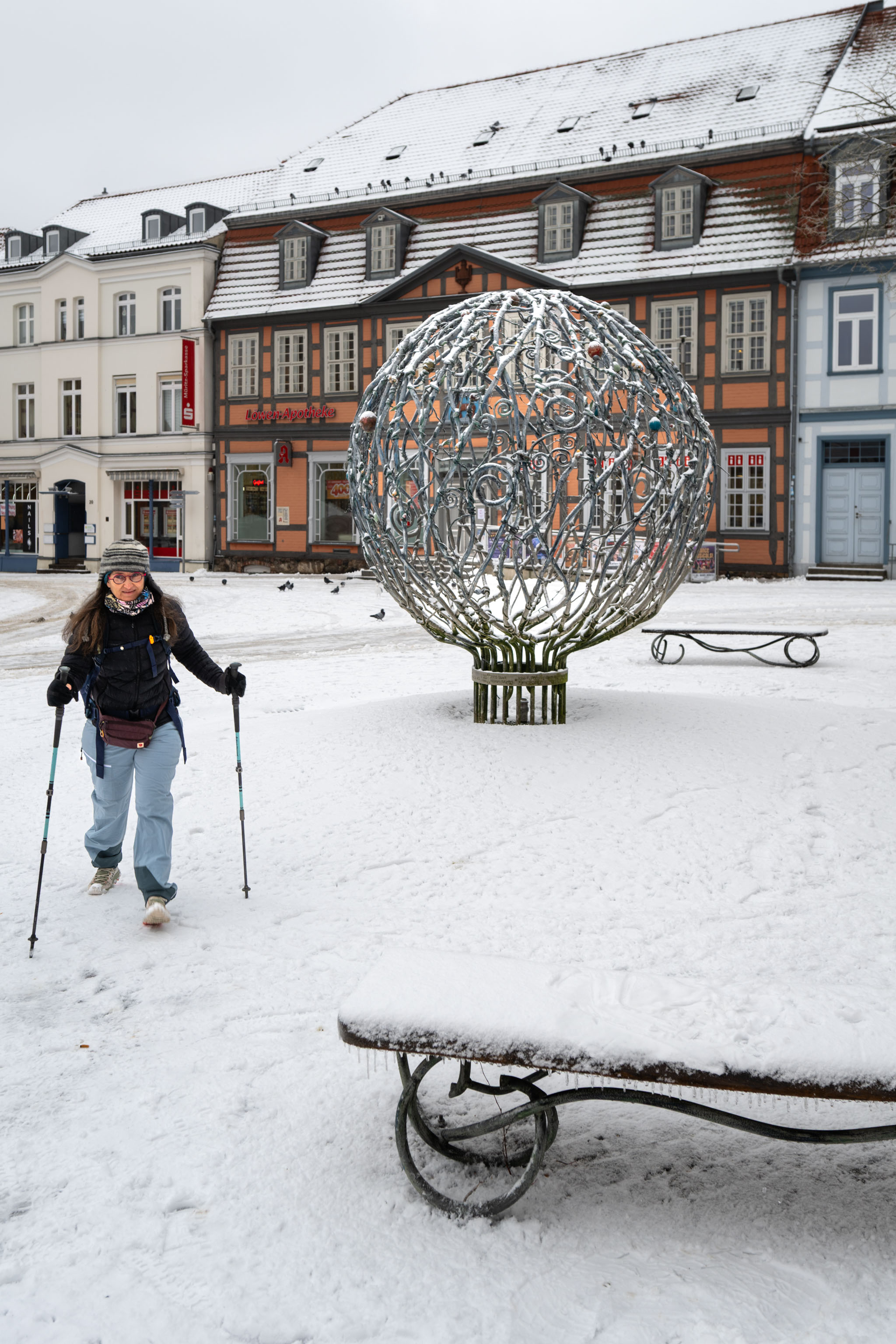 Als wir am Morgen aus dem Fenster unserer Ferienwohnung schauten, schneite es inzwischen auch tatsächlich ein paar dicke Flocken, die Straßen waren aber nur ein bisschen überzuckert – keine Spur von Tiefschnee, zumal der Schneefall bald aufhörte.