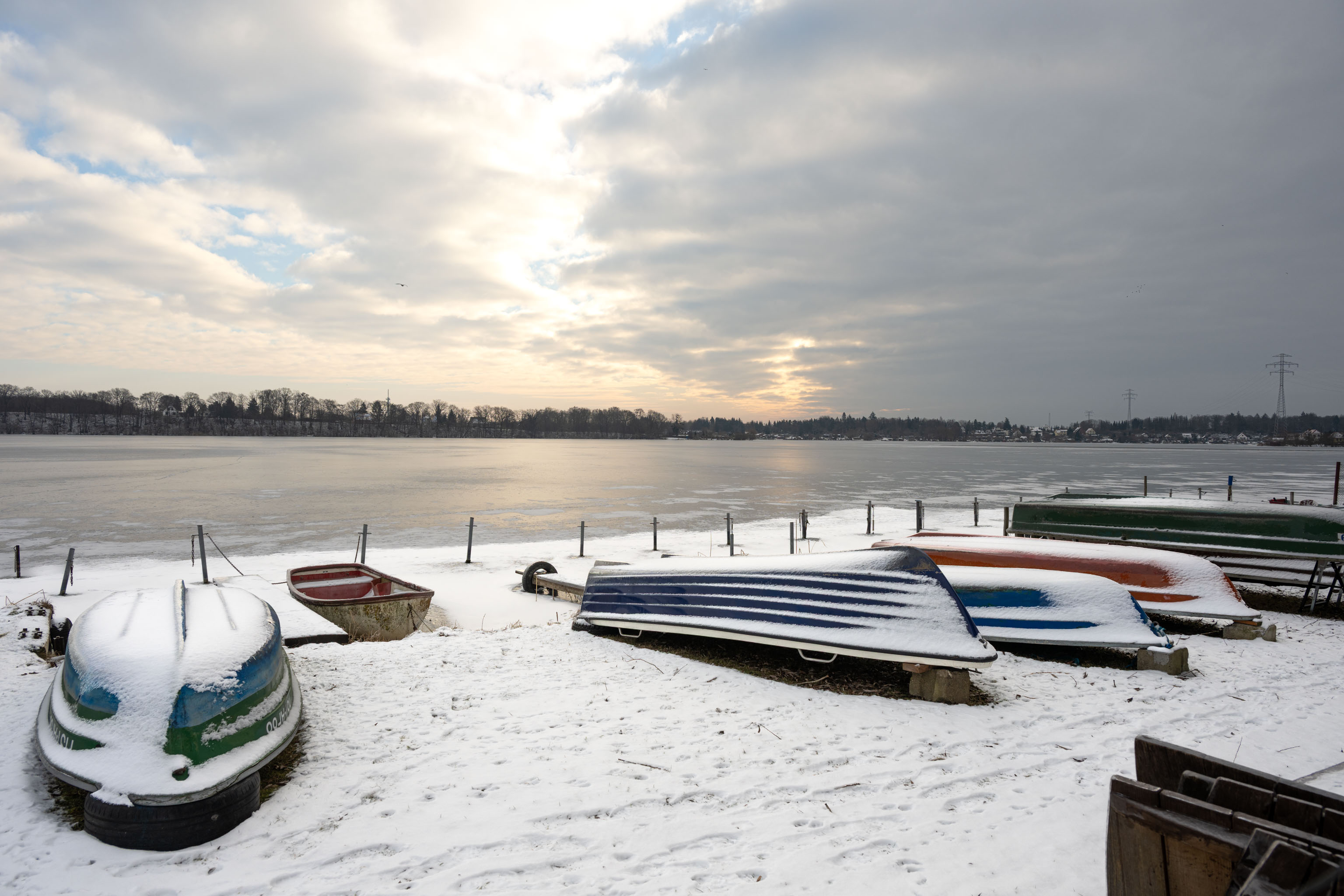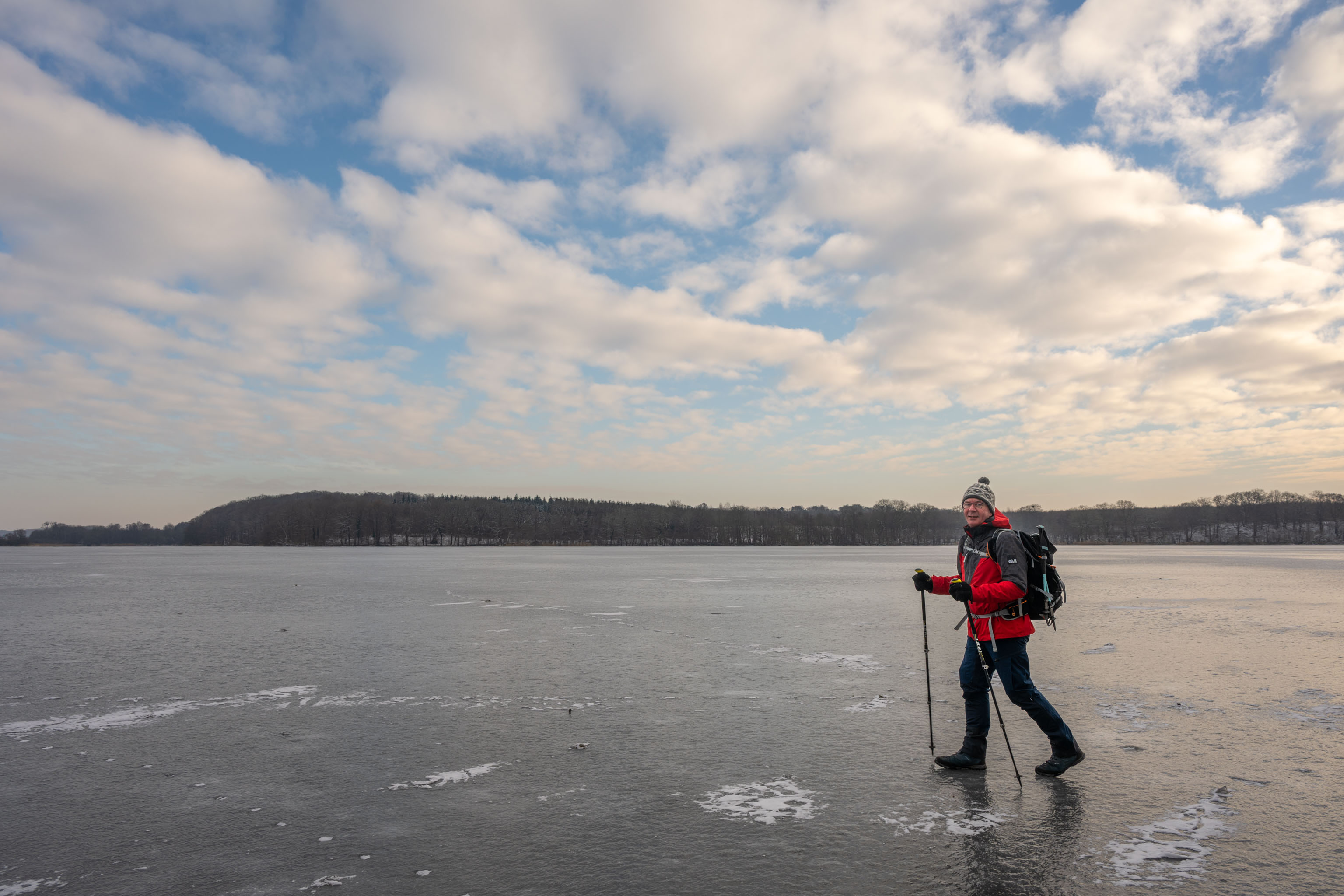 So ein zugefrorener See ist übrigens alles andere als still. Nachdem wir völlig alleine unterwegs und weite Teile des Sees schneefrei waren, konnte man die Bewegungen im Eis – das Knarzen und Krachen – richtig laut hören. Teilweise bewegten sich die Geräusche direkt unter uns durch das Eis.