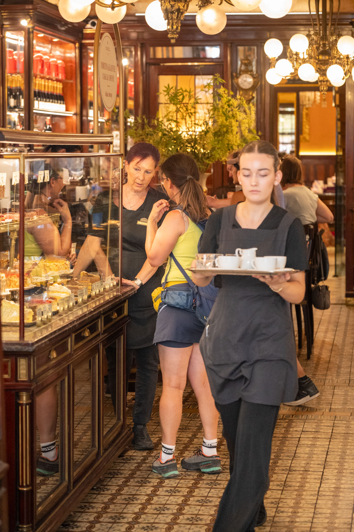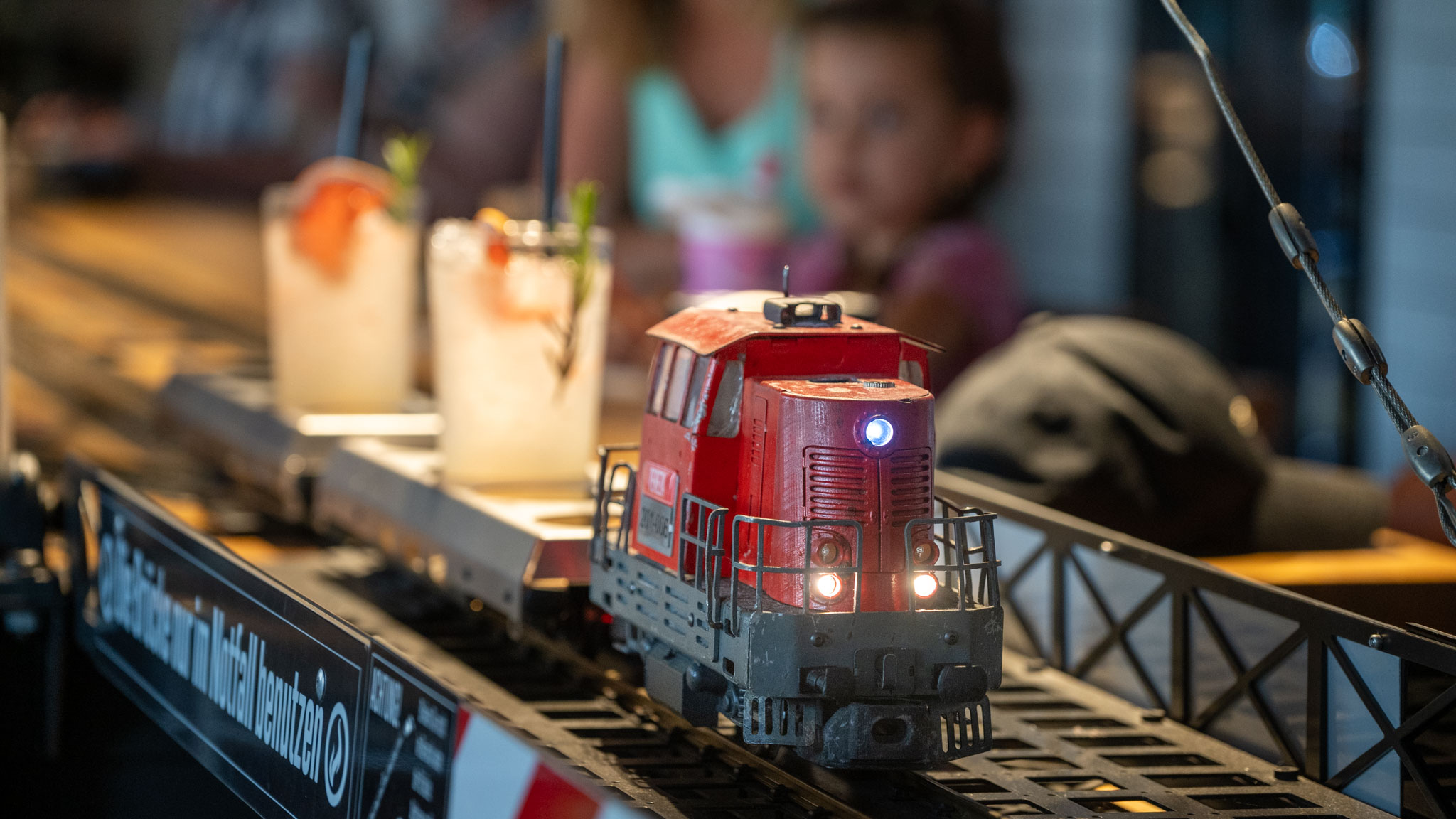 Das ist nicht der Zug, mit dem wir nach Wien gefahren sind, sondern der, der in einem Lokal am Naschmarkt unsere Speisen und Getränke an unseren Platz gebracht hat.