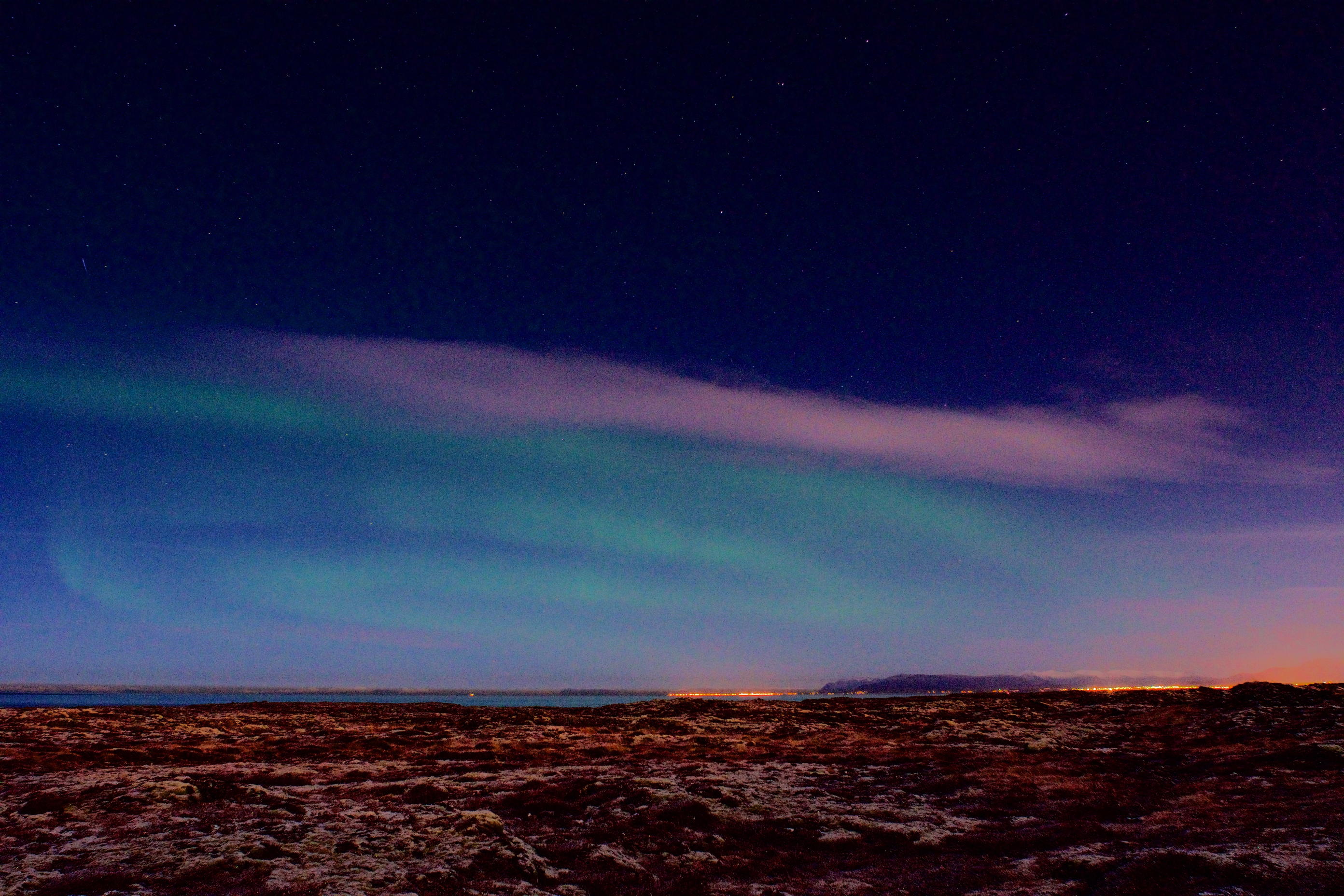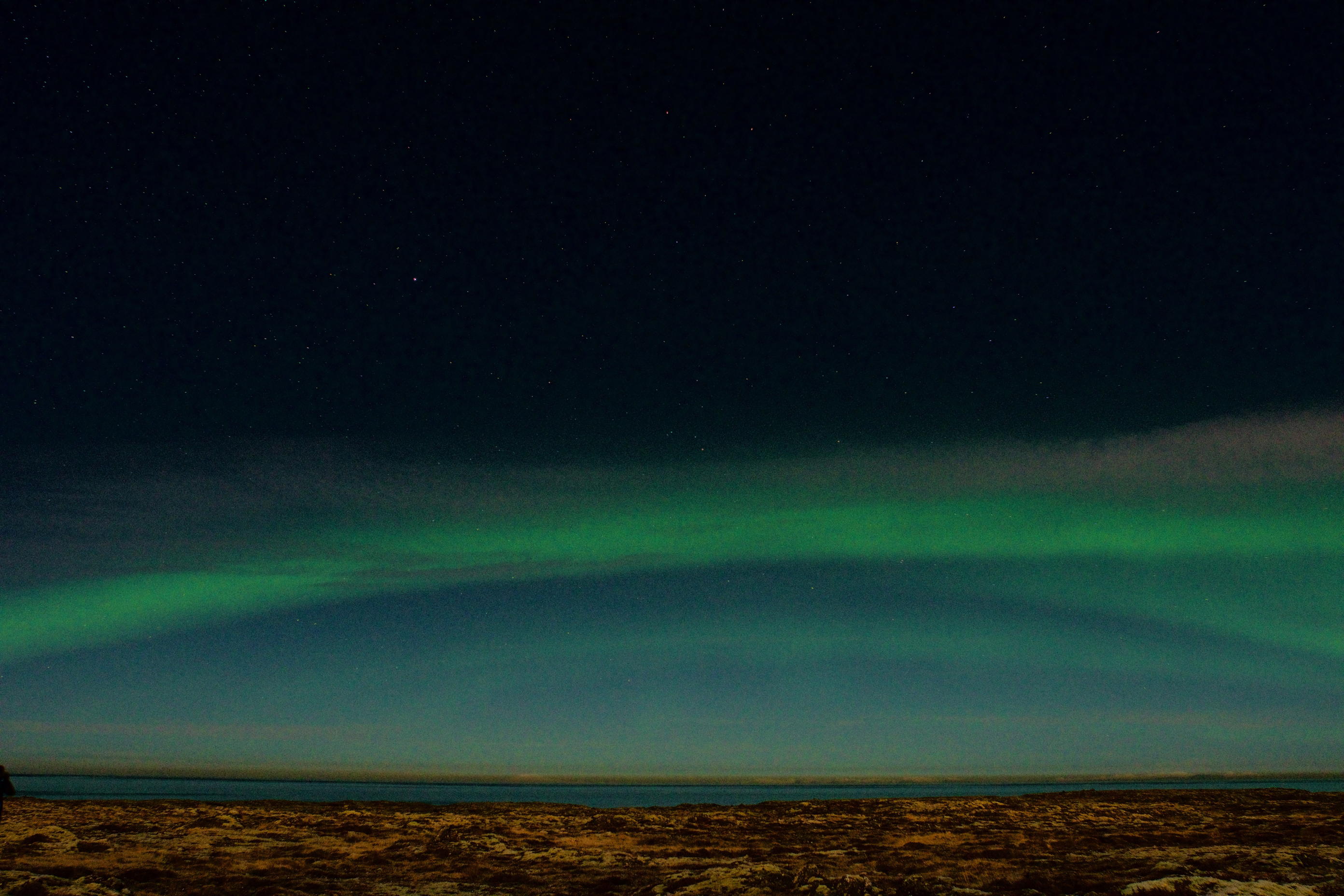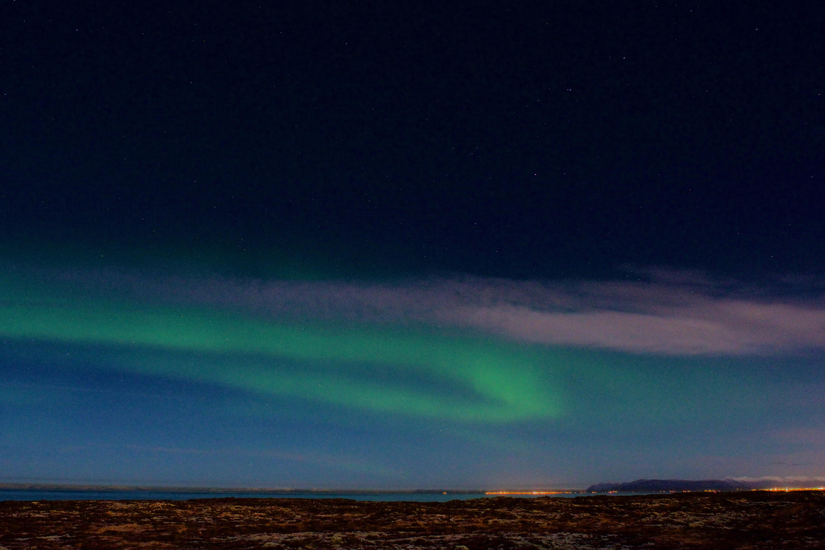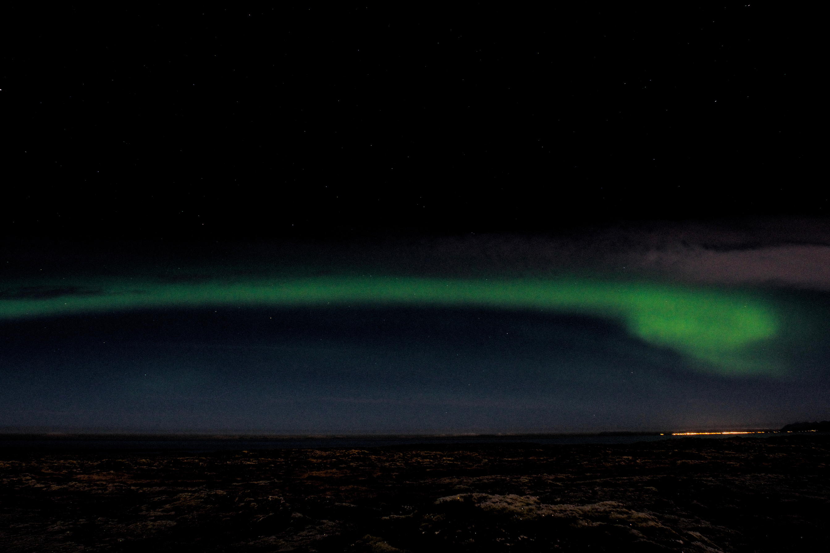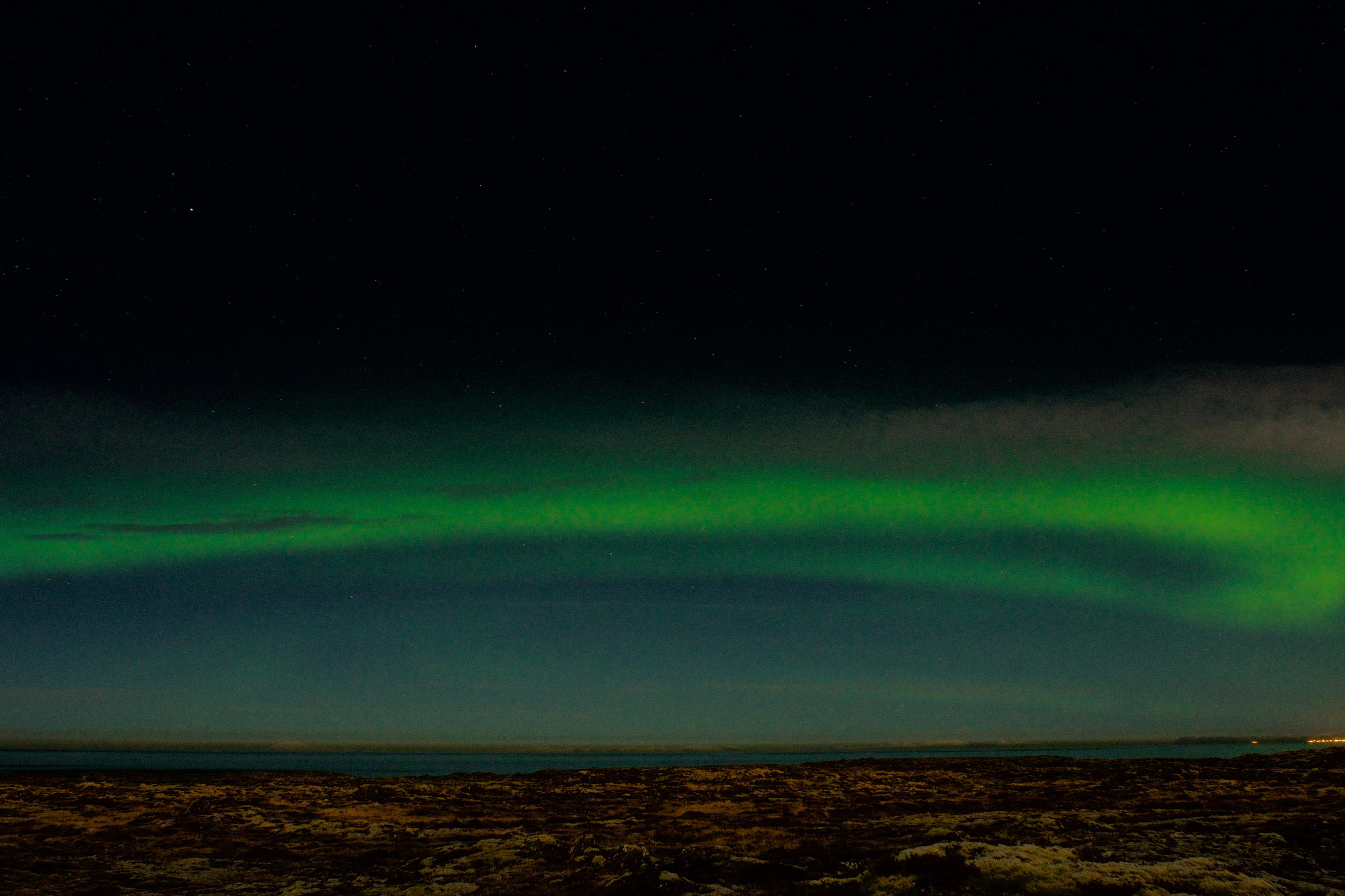 Als wir 2008 das erste Mal – seinerzeit im Sommer – auf Island waren, haben wir uns vorgenommen, auch im Winter einmal hierher zu kommen, um Polarlichter zu beobachten. Vergangene Nacht sind wir dann aufgebrochen. Und wir haben welche gesehen! Der Himmel war wolkenlos, doch wir hatten fast Vollmond (es war also recht hell) und die Sonnenaktivität war ziemlich schwach, doch faszinierend war das Schauspiel am Himmel trotzdem.