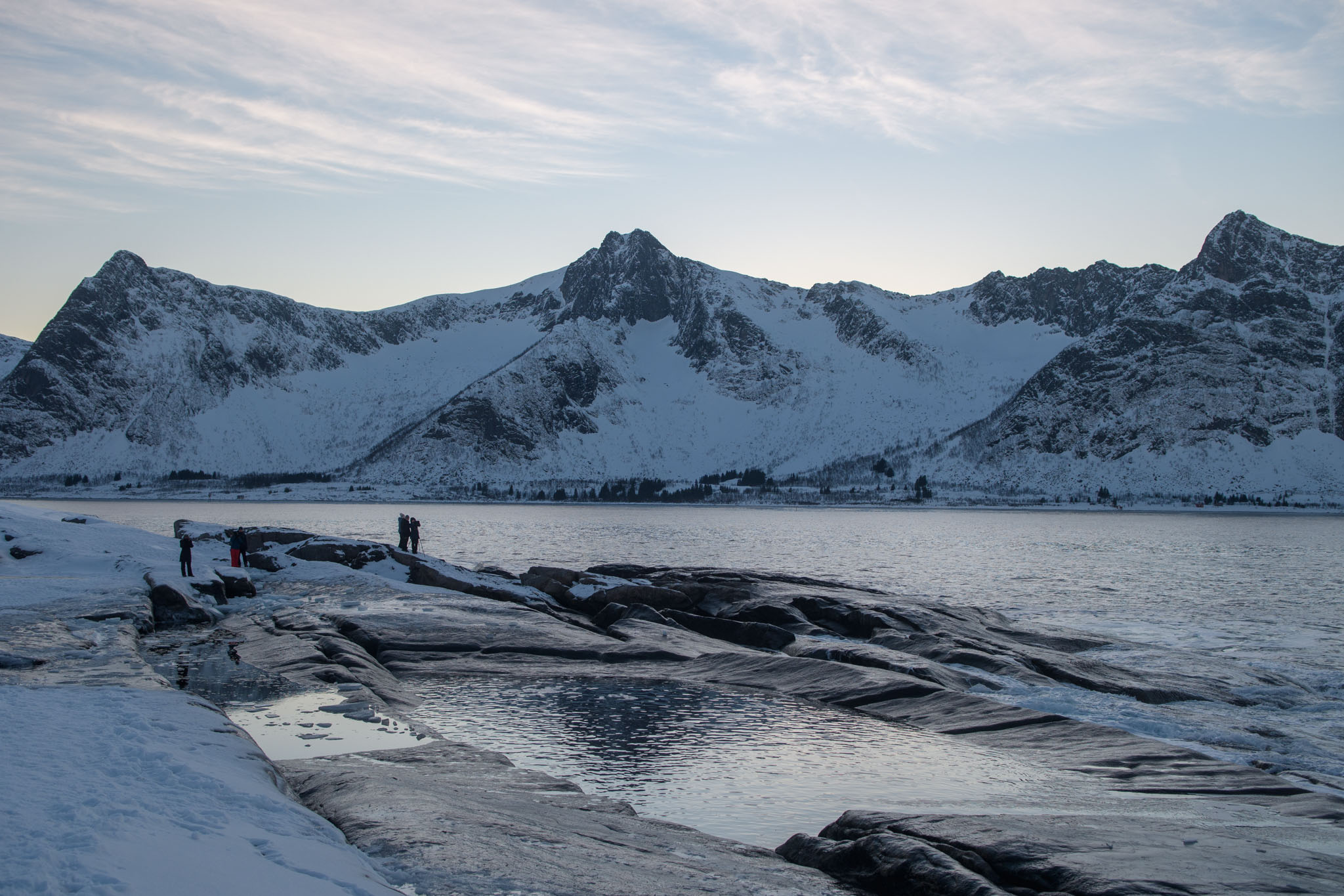 Los ging es gegen halb 12. Das erste Foto unten ist noch vom Weg dorthin, die anderen zeigen alle die Landschaft auf der Insel. Zwischendrin sind wir auch einmal in ein nettes kleines Café eingekehrt, um Samir mit Kaffee zu versorgen. Die letzten beiden Fotos sind dann – schon bei Nacht – ein Blick zurück auf Senja bzw. die Brücke, die Senja mit dem norwegischen Festland verbindet.