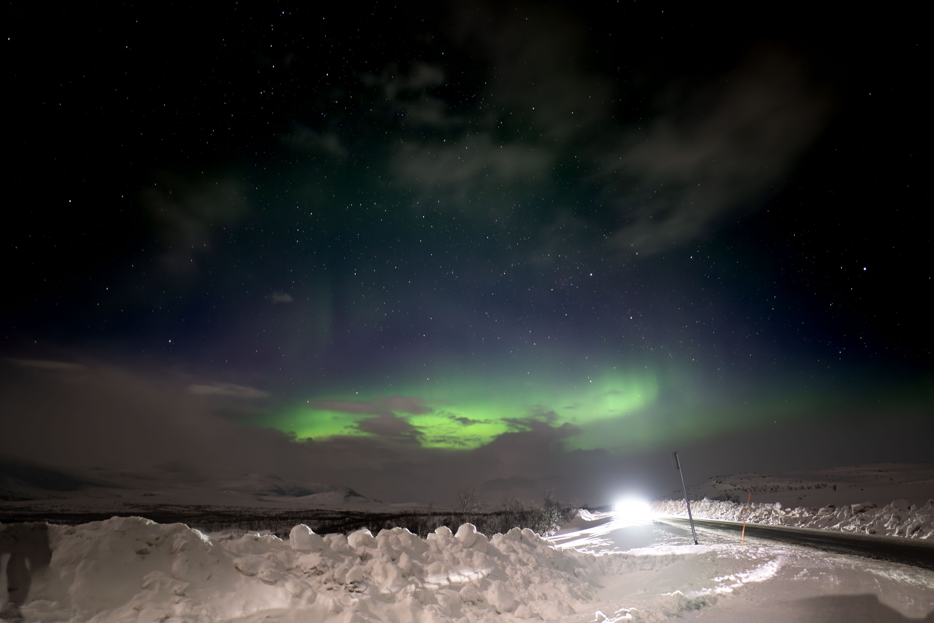 … mussten wir vergangene Nacht fahren, um Polarlichter zu sehen, aber es hat sich gelohnt.