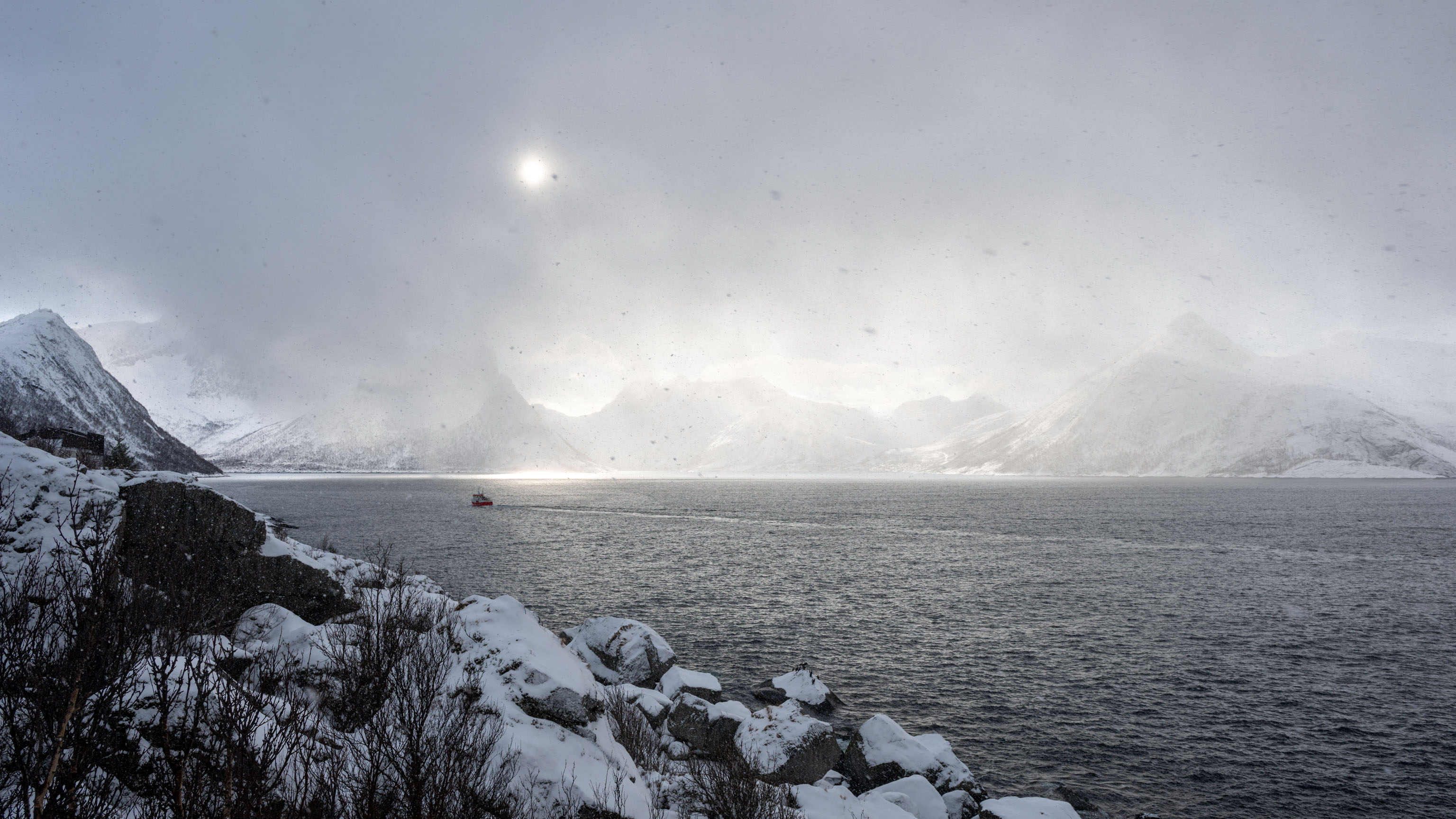 Und noch etwas: für die kommende Nacht gibt es wohl keine Hoffnung auf Polarlichtfotos. Wolken und Schneefall sind schon den größten Teil des Nachmittags viel zu stark, als dass man etwas sehen könnte und das wird sich wohl auch heute Abend nicht ändern.
