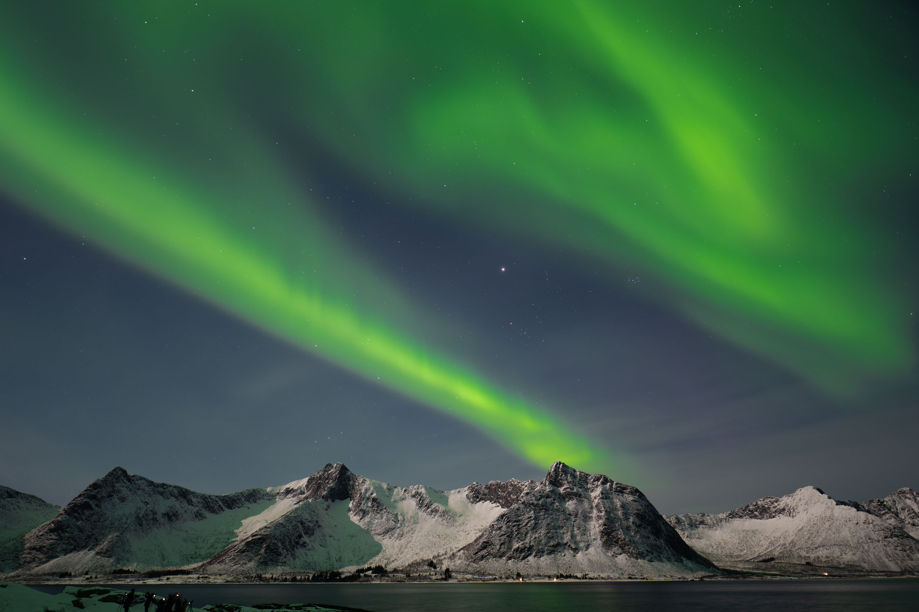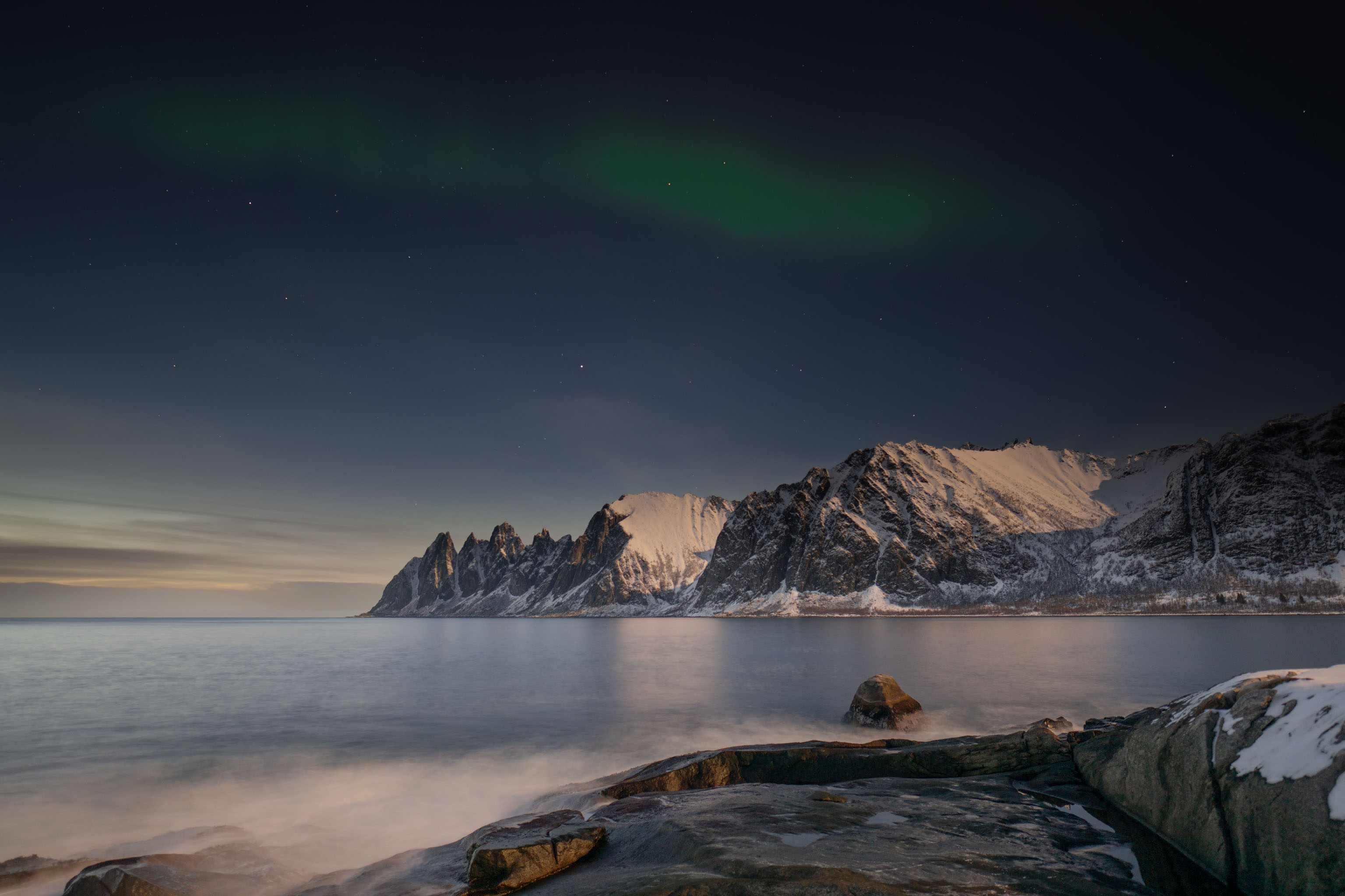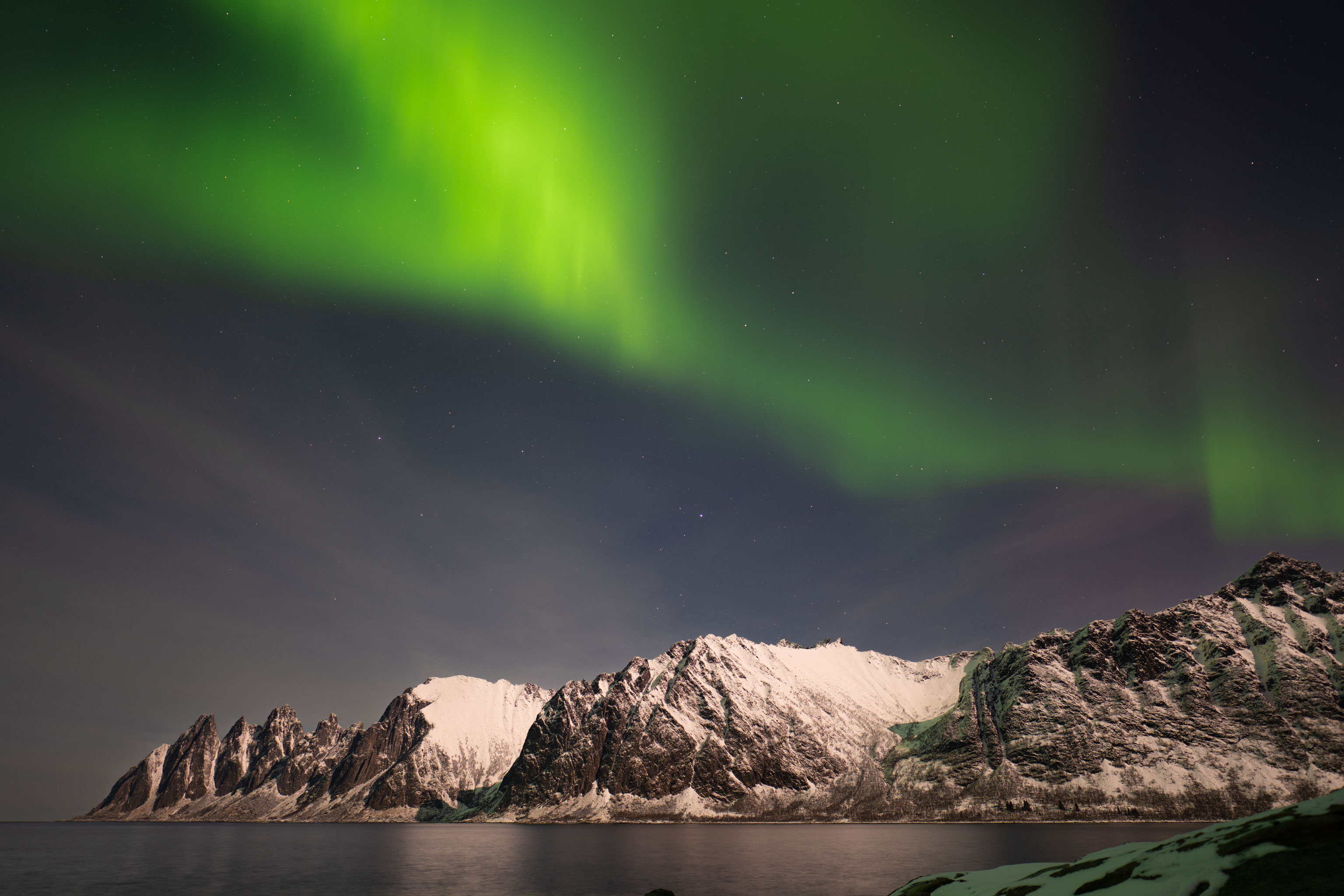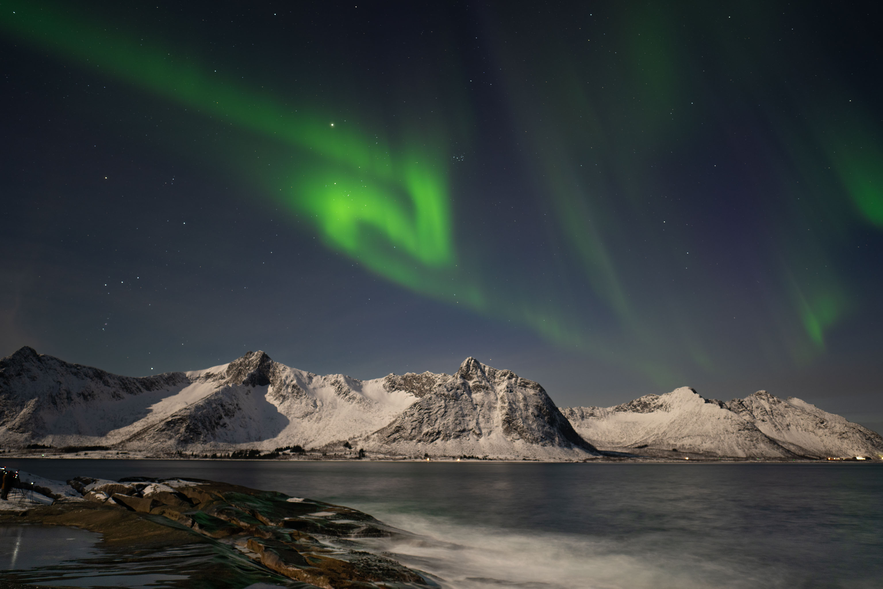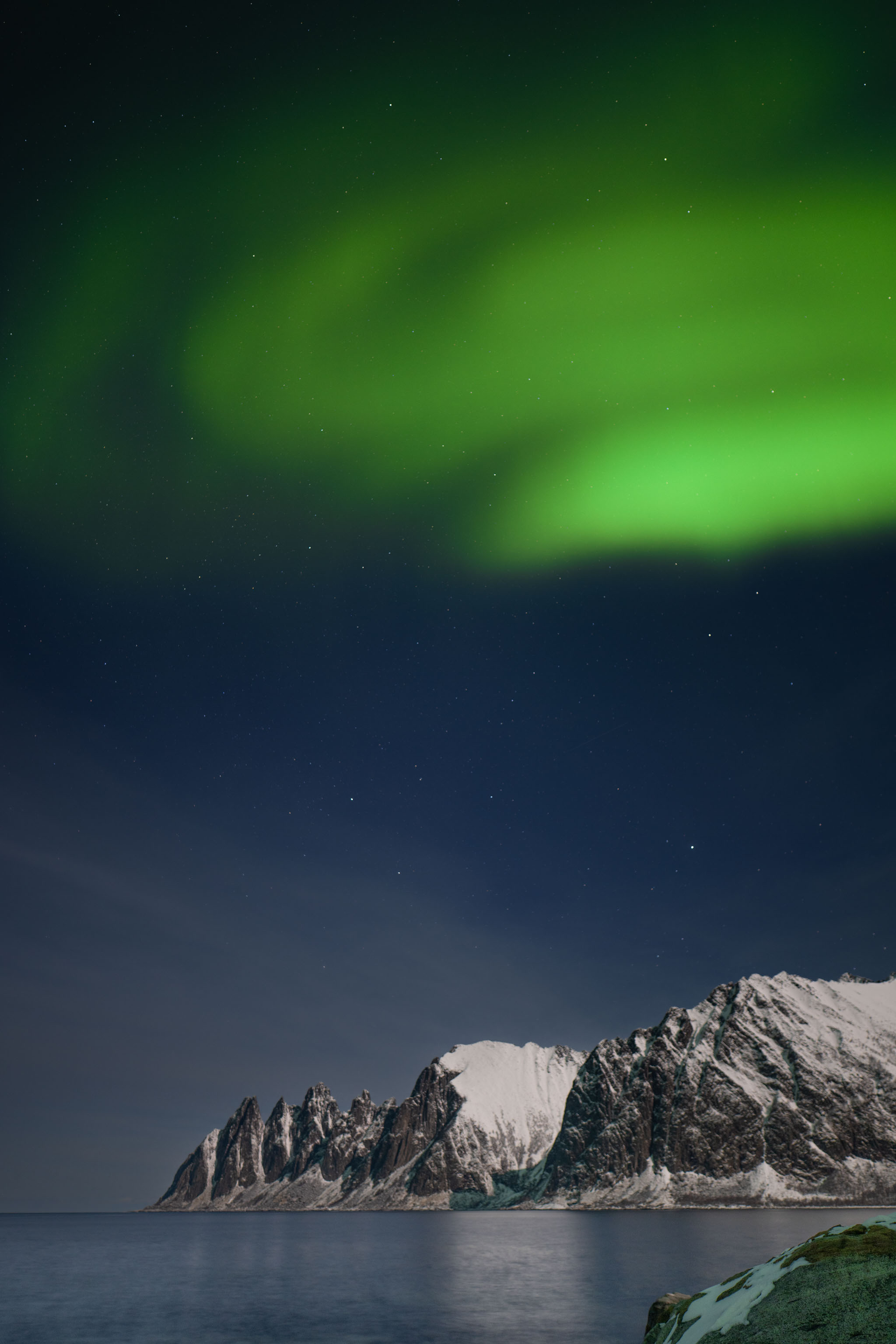 Von unserem Standort Tungeneset sind die Teufelszähne exakt im Norden, also die besten Voraussetzungen für Polarlichter darüber. Der Kp-Index war mit 5 sehr ordentlich und der Himmel war sowieso klar.