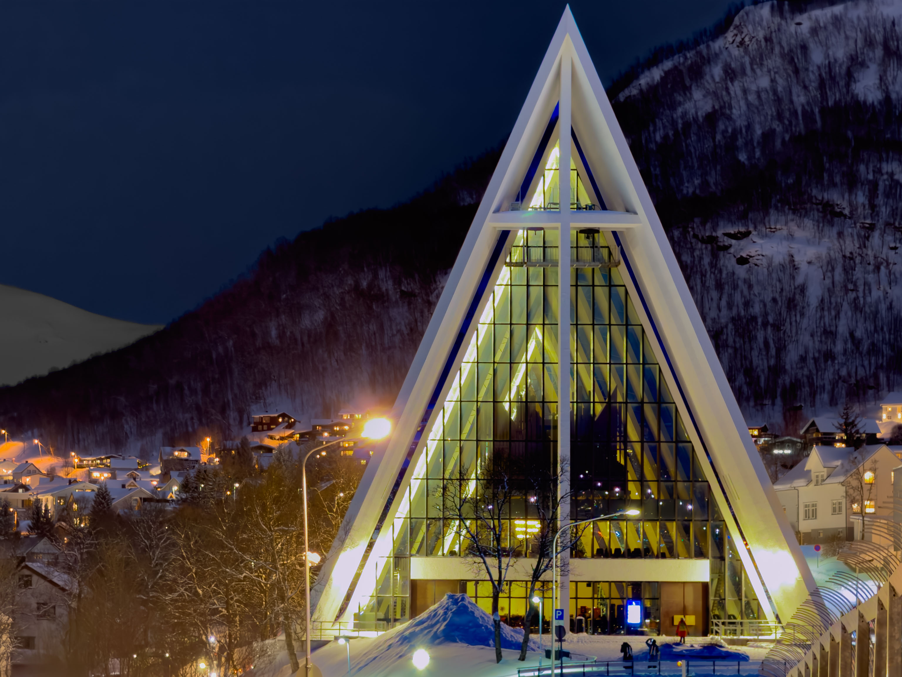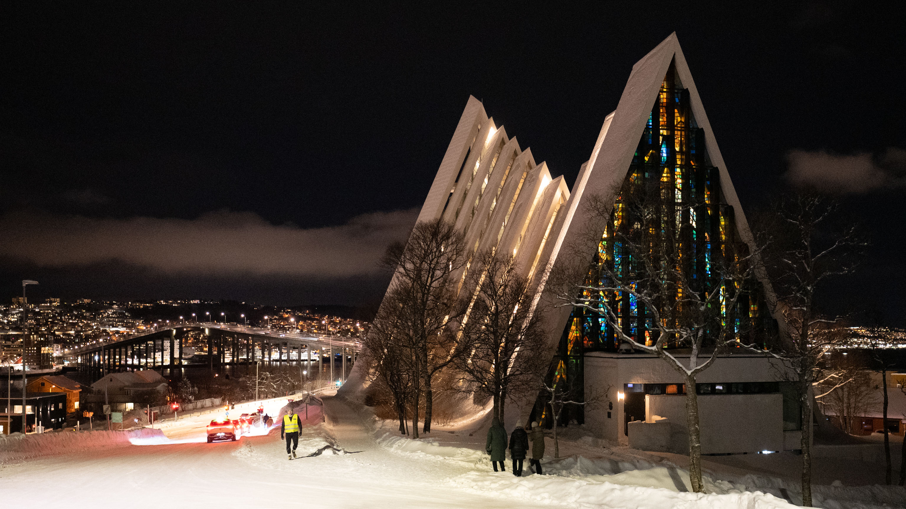 Nach dem Abendessen im Egon sind wir direkt zu Fuß über die Tromsøbrücke rüber nach Tromsdalen, an der Eismeerkathedrale vorbei und von dort weiter den Hang hinauf Richtung Storsteinen gewandert.