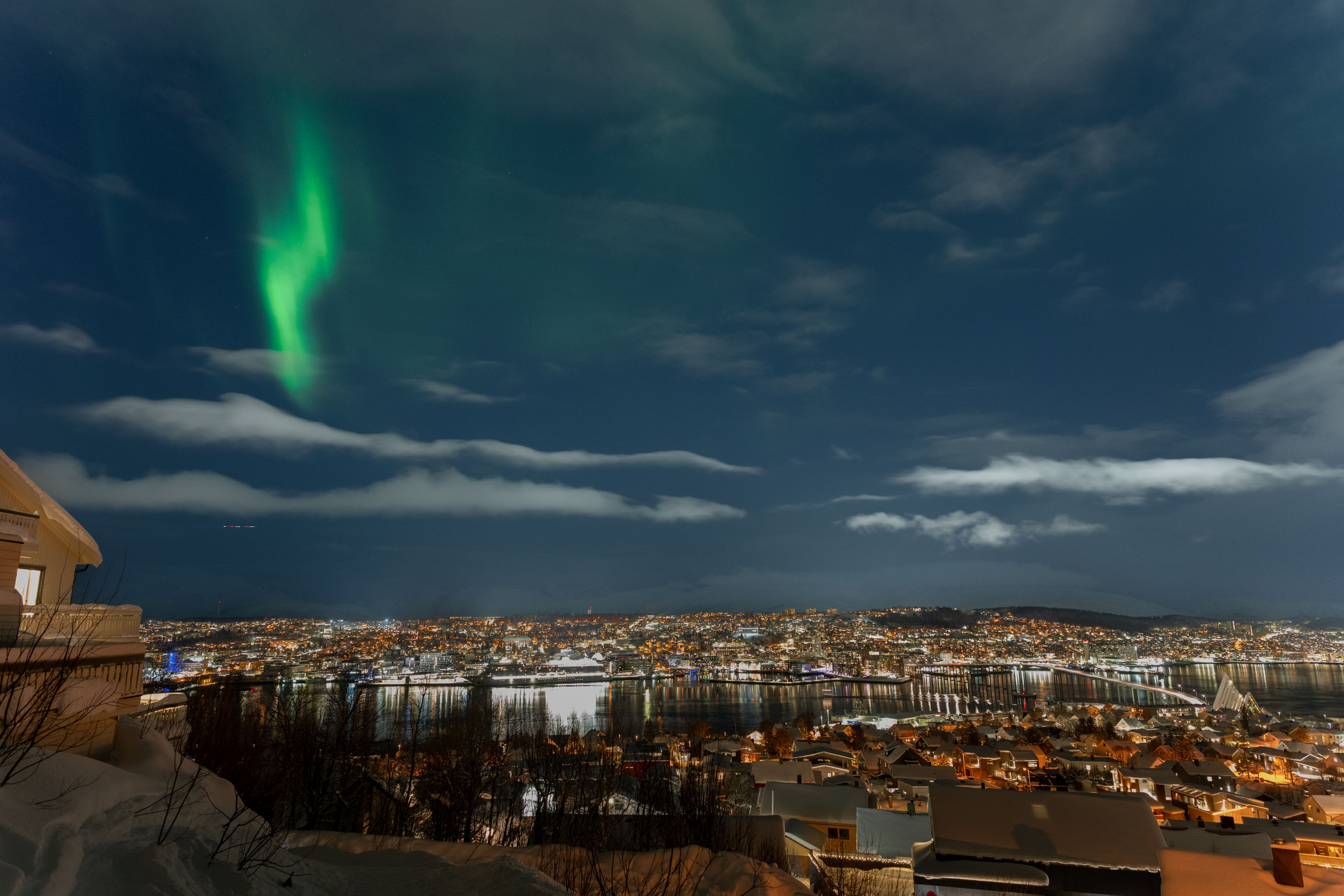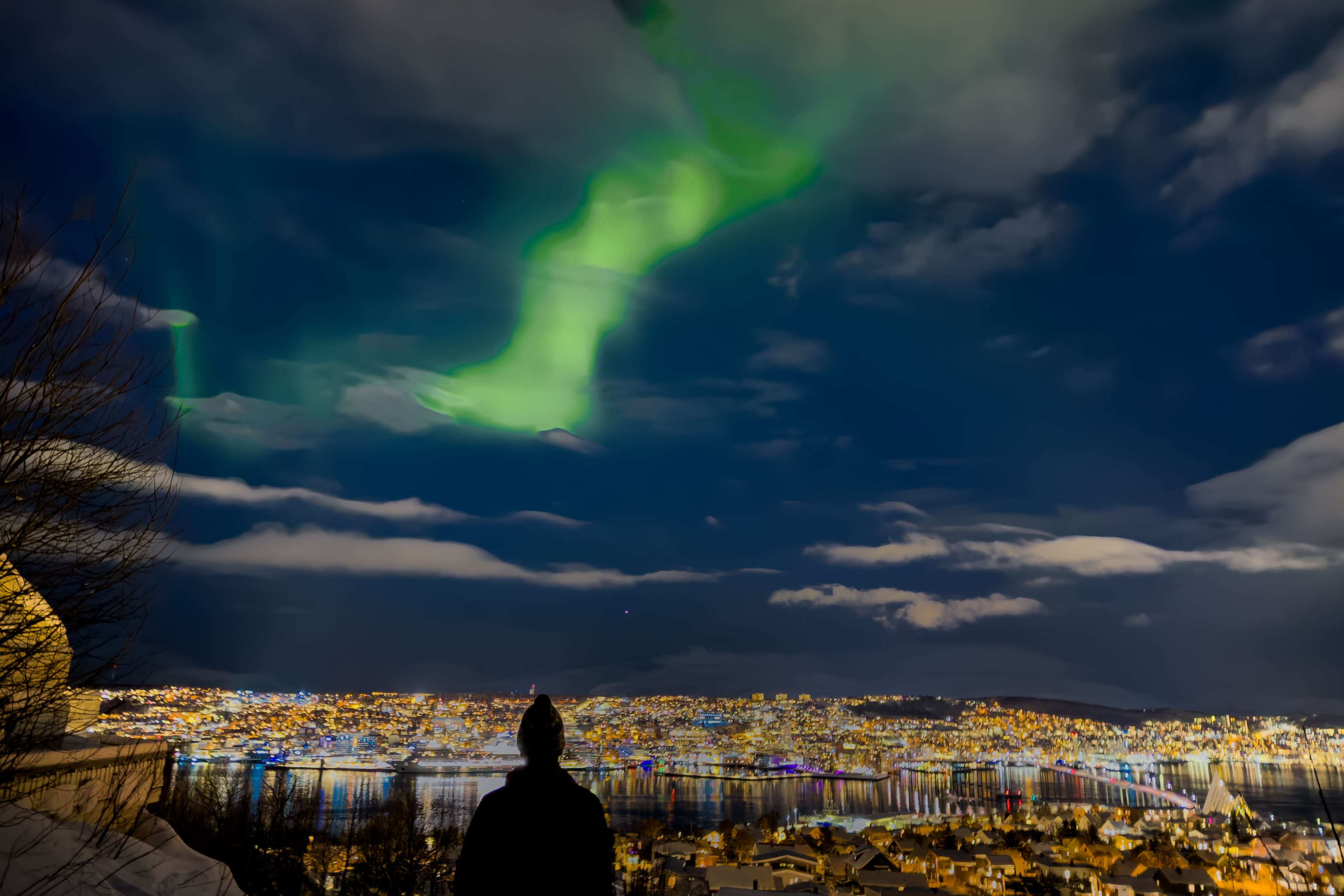 Dort haben wir zunächst das obligatorische Nachtfoto von Tromsø gemacht und dann hieß es warten, ob vielleicht Polarlichter kommen.