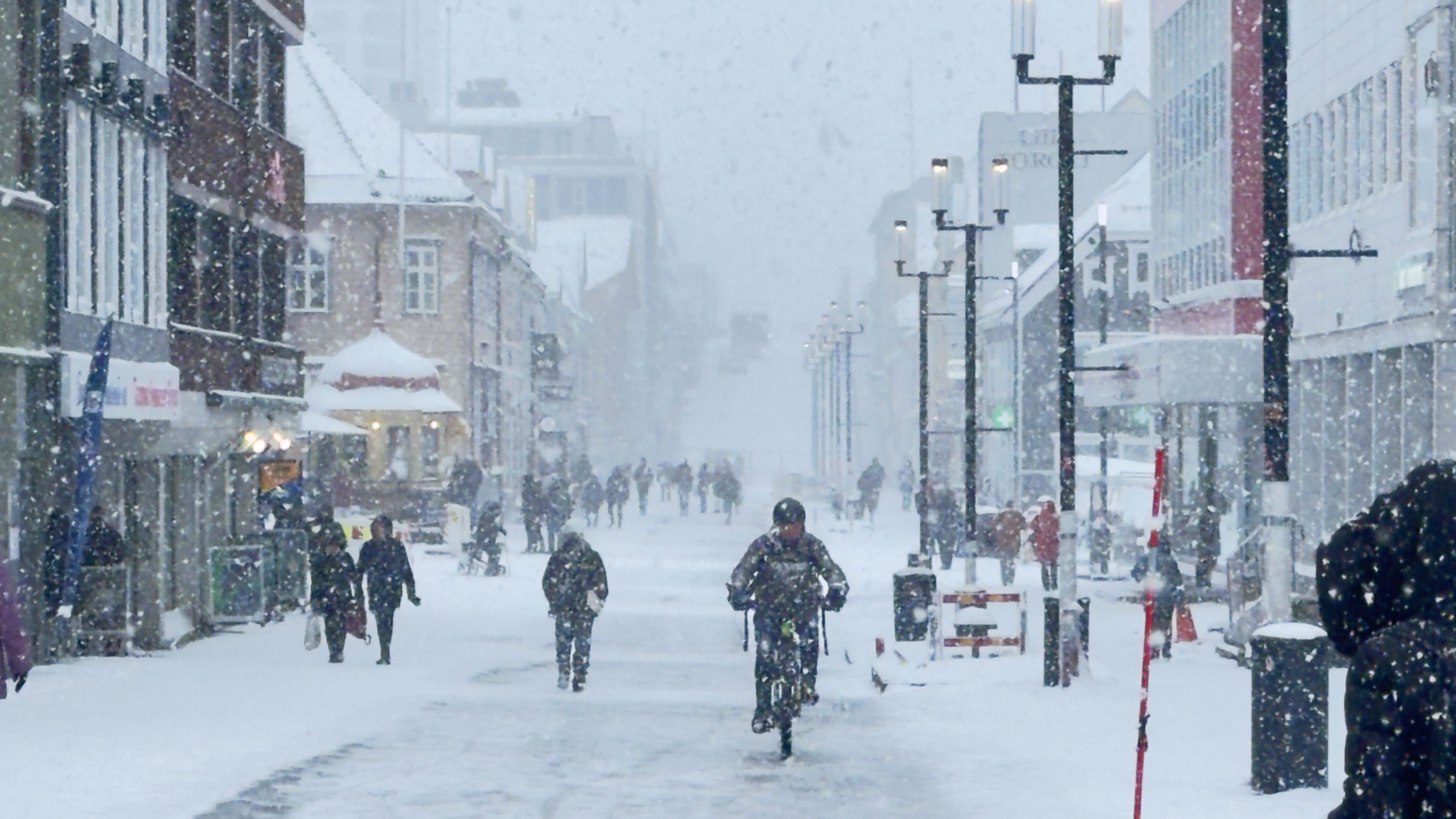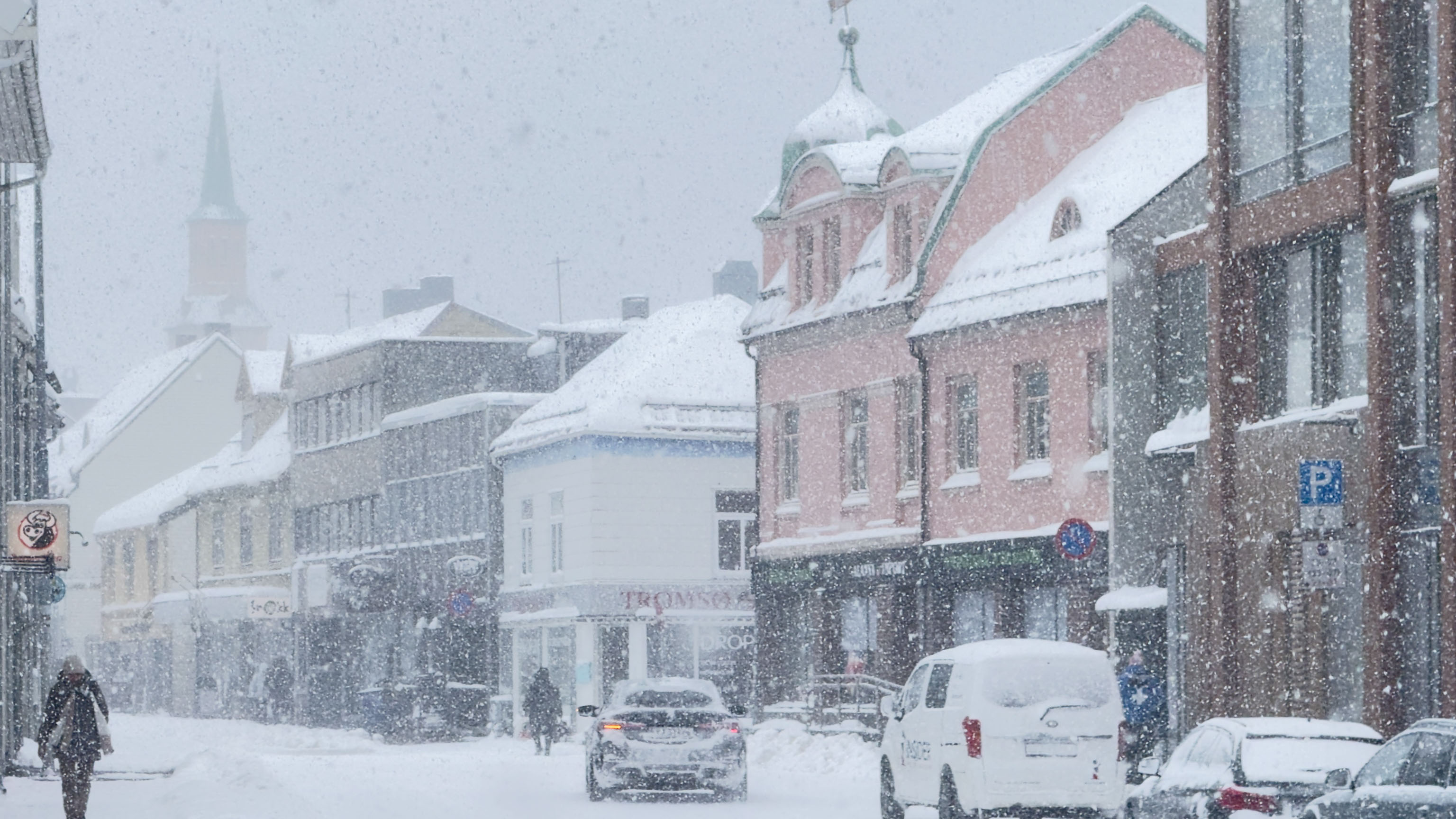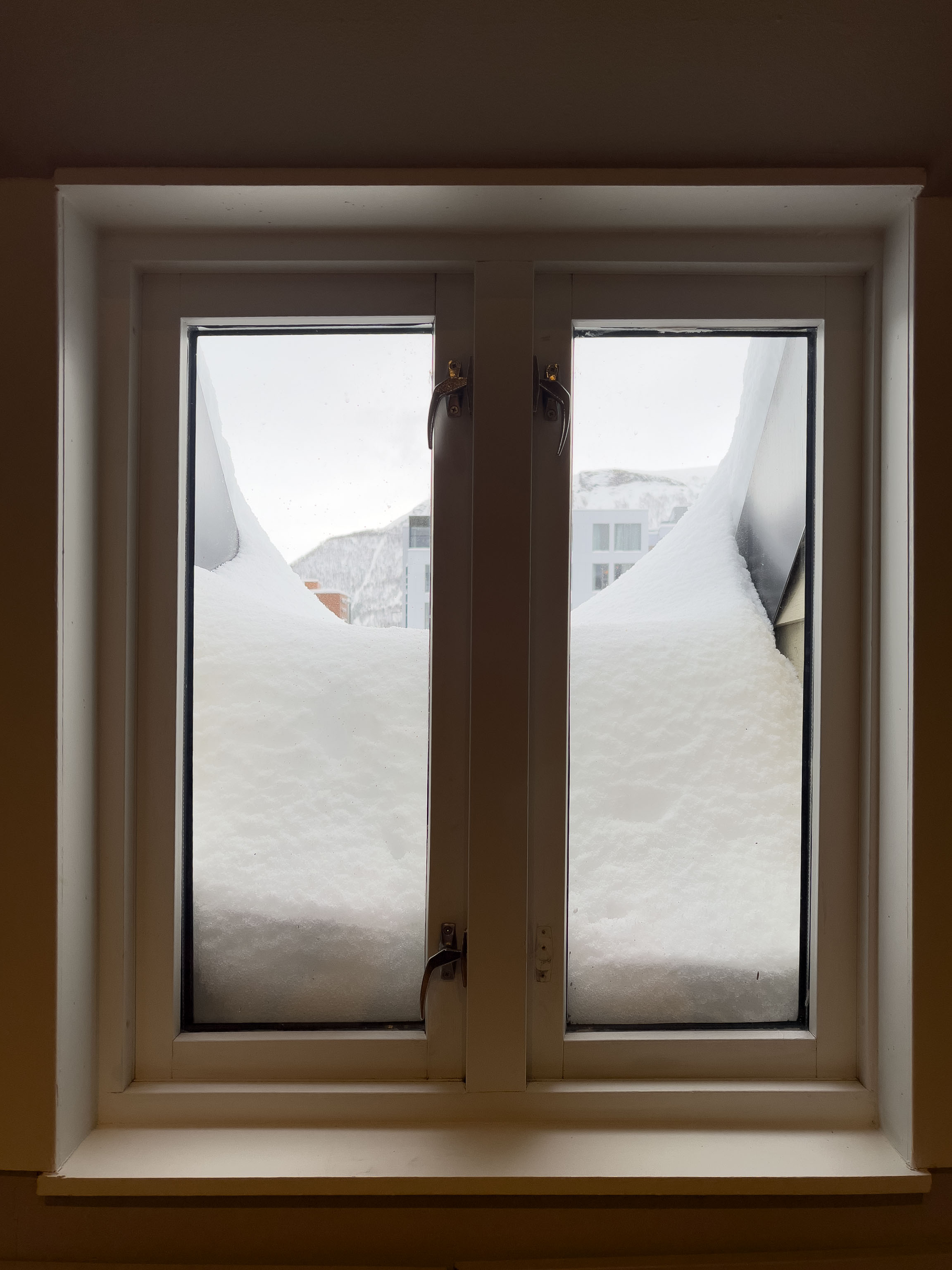 Das erste Foto zeigt den Blick aus dem zweiten Stock unserer Ferienwohnung hier in Tromsø, das zweite zeigt unsere erste Tätigkeit jeden Morgen – nachdem wir die Tür gegen den Druck des nächtlichen Neuschnees aufbekommen haben. Auf vier der Fotos seht ihr, dass sich die Nordnorweger von ein bisschen Schnee nicht vom Radfahren abhalten lassen und dort, wo das vorletzte Foto aufgenommen wurde, standen wenige Tage vorher tatsächlich noch ein paar Autos. 😉