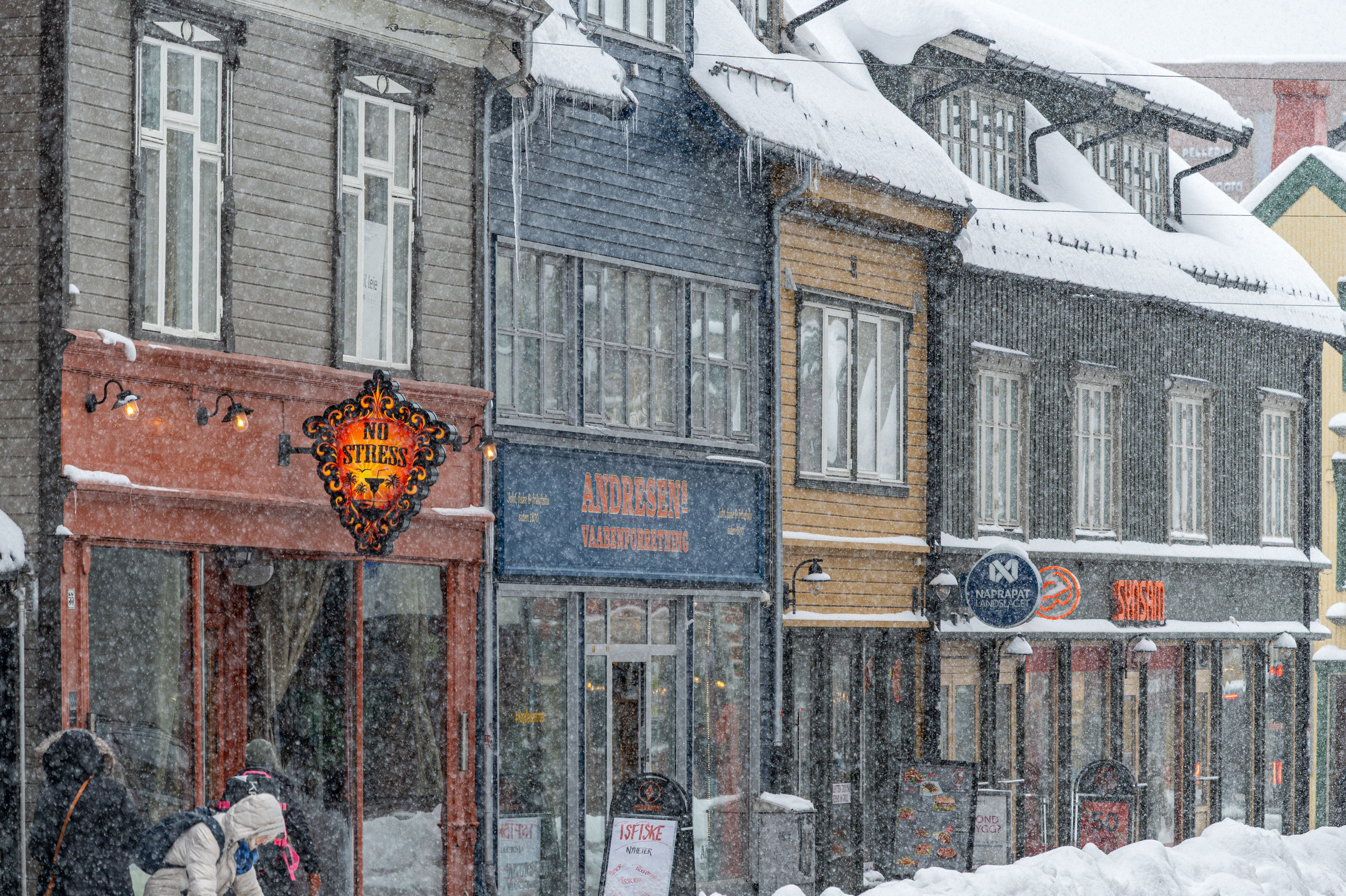 Wir sind ja insbes. wegen des heftigen Schneefalls früher als ursprünglich geplant von Senja nach Tromsø zurückgekommen. Und es hat auch hier fast durchgehend geschneit. Die Fotos, die wir in den vergangenen Tagen zwischendurch immer mal wieder in der Stadt gemacht haben, sehen daher etwas anders aus, als die, die es vom Beginn unseres Urlaubs gab.