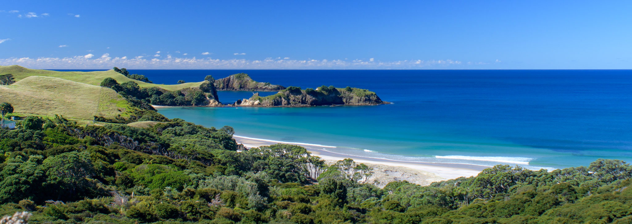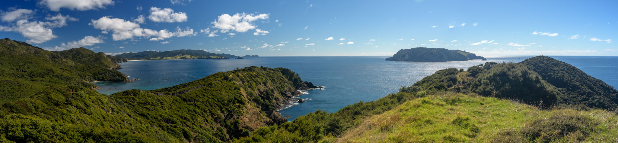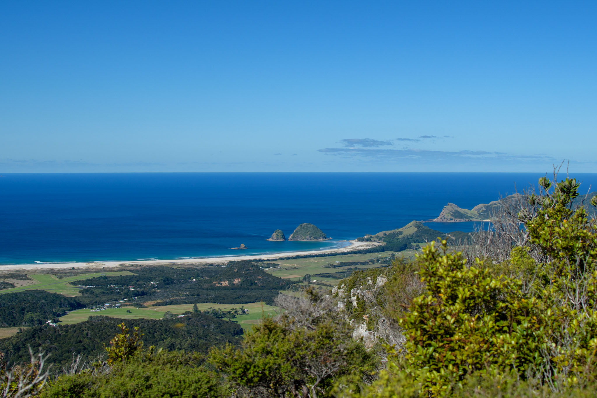 Das Great Barrier Island ist gerade einmal 18 km breit und 35 km lang. Die höchste Erhebung ist 621 m hoch, die Insel ist also sehr hügelig und lädt damit herrlich zum Wandern ein und bietet dabei wunderschöne Aussichten. Vorgestern haben wir eine ganztägige Wanderung absolviert, den Aotea Track (s. eigenen Blogeintrag), doch auch an den anderen Tagen gab es kleinere Wanderungen und heute haben wir gleich mehrere etwa 2-stündige Wanderungen absolviert.