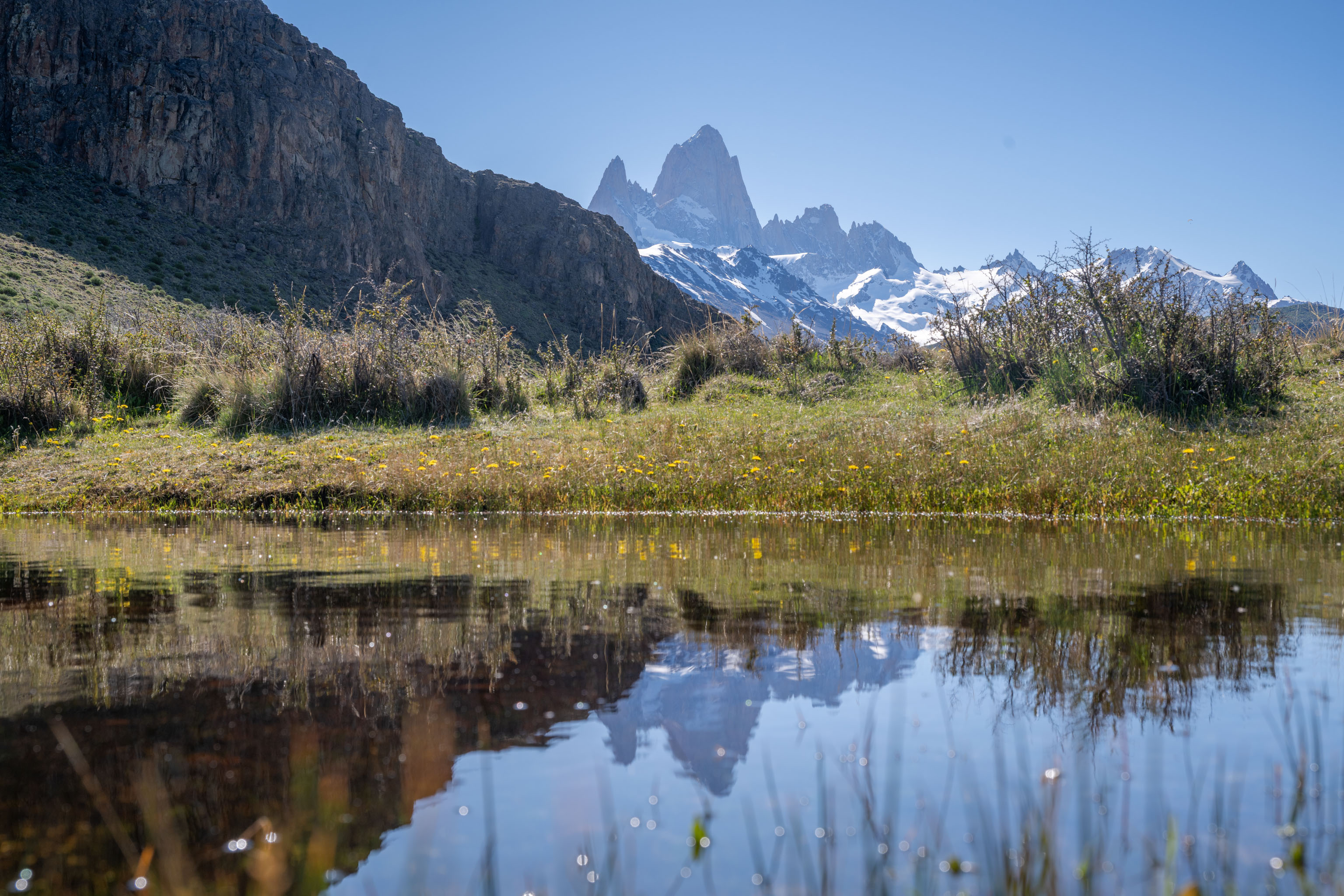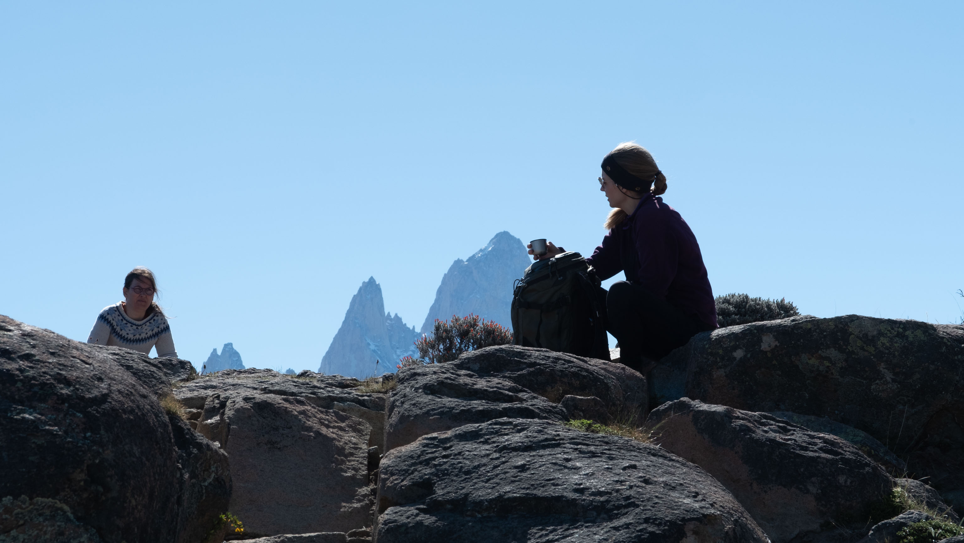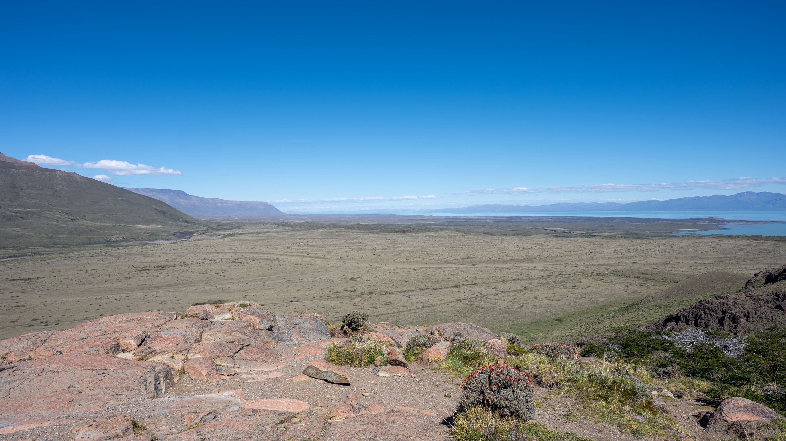 Unser Plan ist es nämlich, übermorgen früh zum Sonnenaufgang hier hoch zu kommen, denn man hat von hier einen sehr schönen Blick in die richtige Richtung auf Fitz Roy und Cerro Torre und es ist natürlich sehr hilfreich, wenn man den Hochweg und den Standort, an dem man in völliger Dunkelheit sein Stativ aufbauen wird, schon einmal bei Tageslicht gesehen hat.