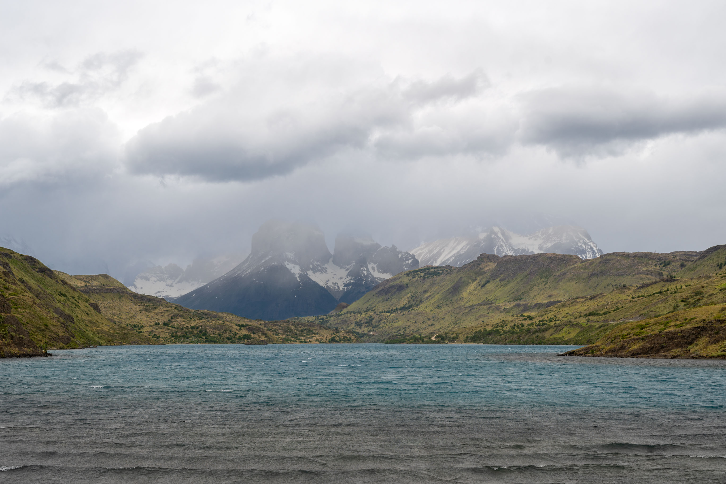 Normalerweise hätten wir unterwegs mehrere Fotostopps eingelegt, doch alle Berge waren grau in grau in Wolken, so dass wir (abgesehen vom Check-in in den Nationalpark) erst kurz vor unserem Hotel zweimal angehalten haben.