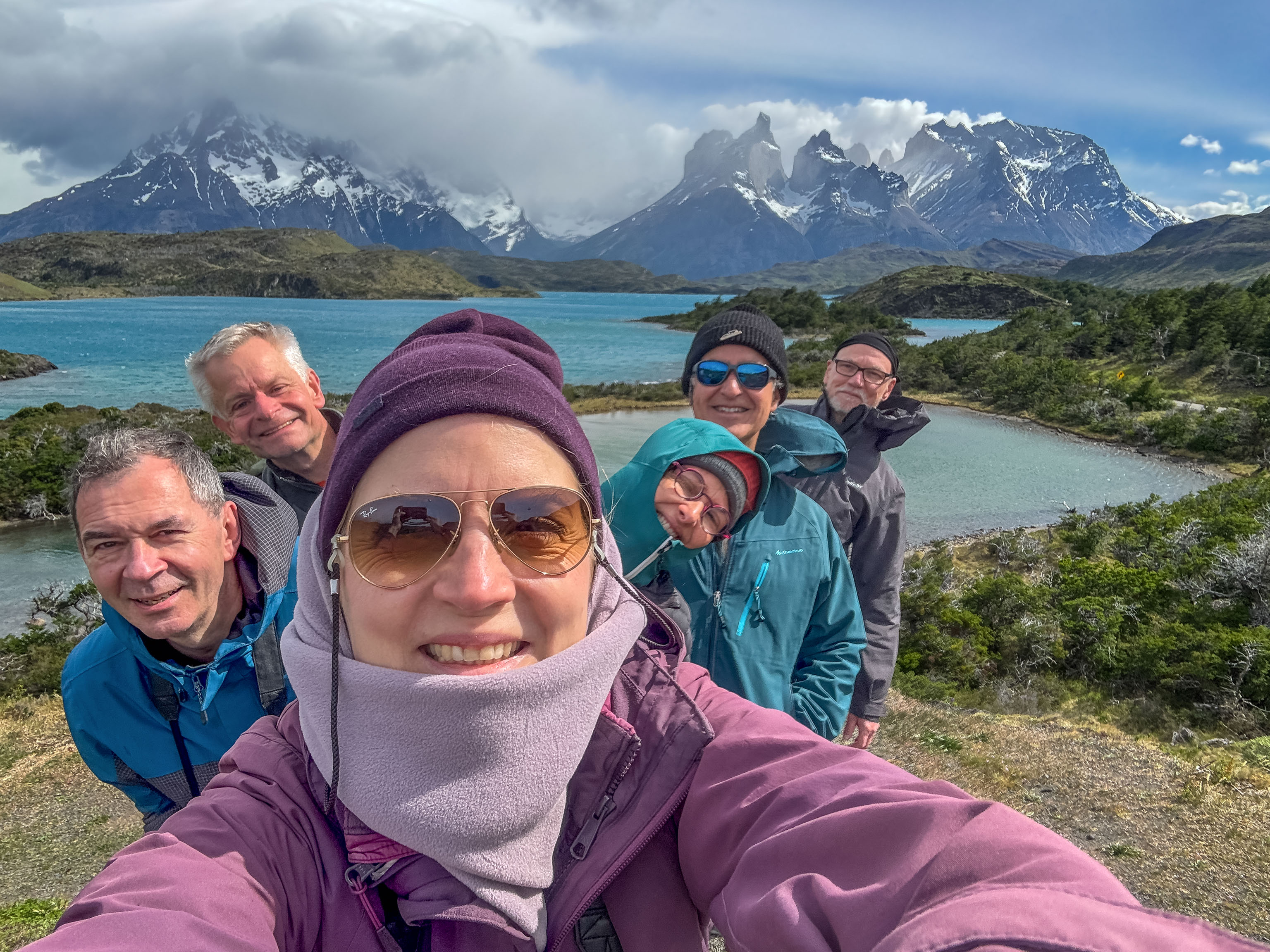 Als wir kurz vor 5:53 Uhr zu unserem Aussichtspunkt marschiert sind, hatten wir keine wirkliche Hoffnung, doch irgendwann schien dann die aufgehende Sonne doch seitlich den Cuernos del Paine an. Es war nicht so toll wie die beiden Sonnenaufgänge in Argentinien, aber gelohnt hat es sich trotzdem – wir mussten ja von unserem Zimmer aus nur ein paar Meter gehen.