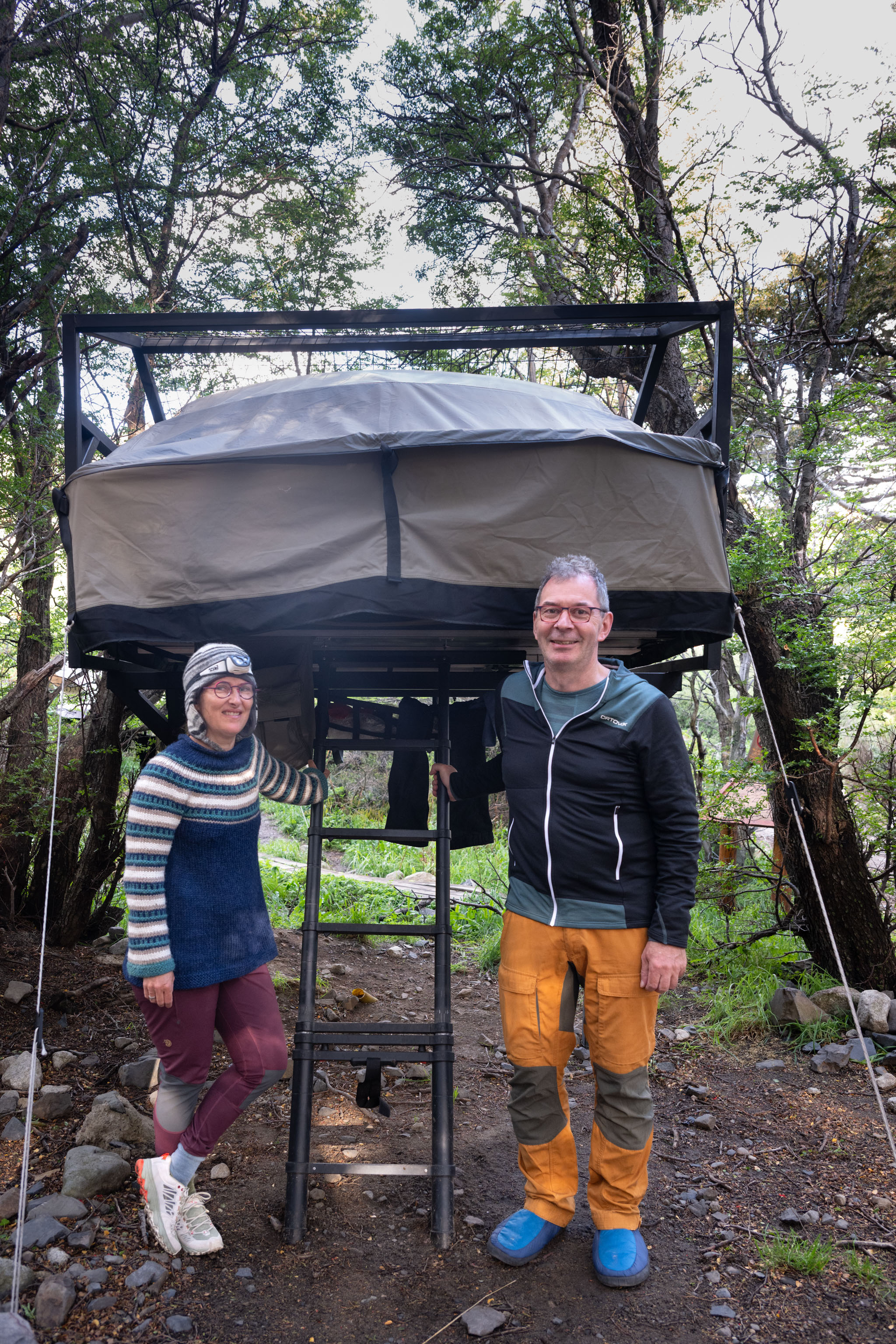Die erste Nacht auf dem W-Trek schliefen wir vier mit unseren beiden Guides in einem Sechsbettzimmer, ab heute geht es in Zelte. Wir haben uns im Vorfeld schon gefragt, wie sie es bei dem Wetter hier schaffen, dass die fest montierten Zelte trocken bleiben. Vorhin haben wir es gesehen: sie sind in knapp zwei Meter Höhe auf einem Gestell montiert.