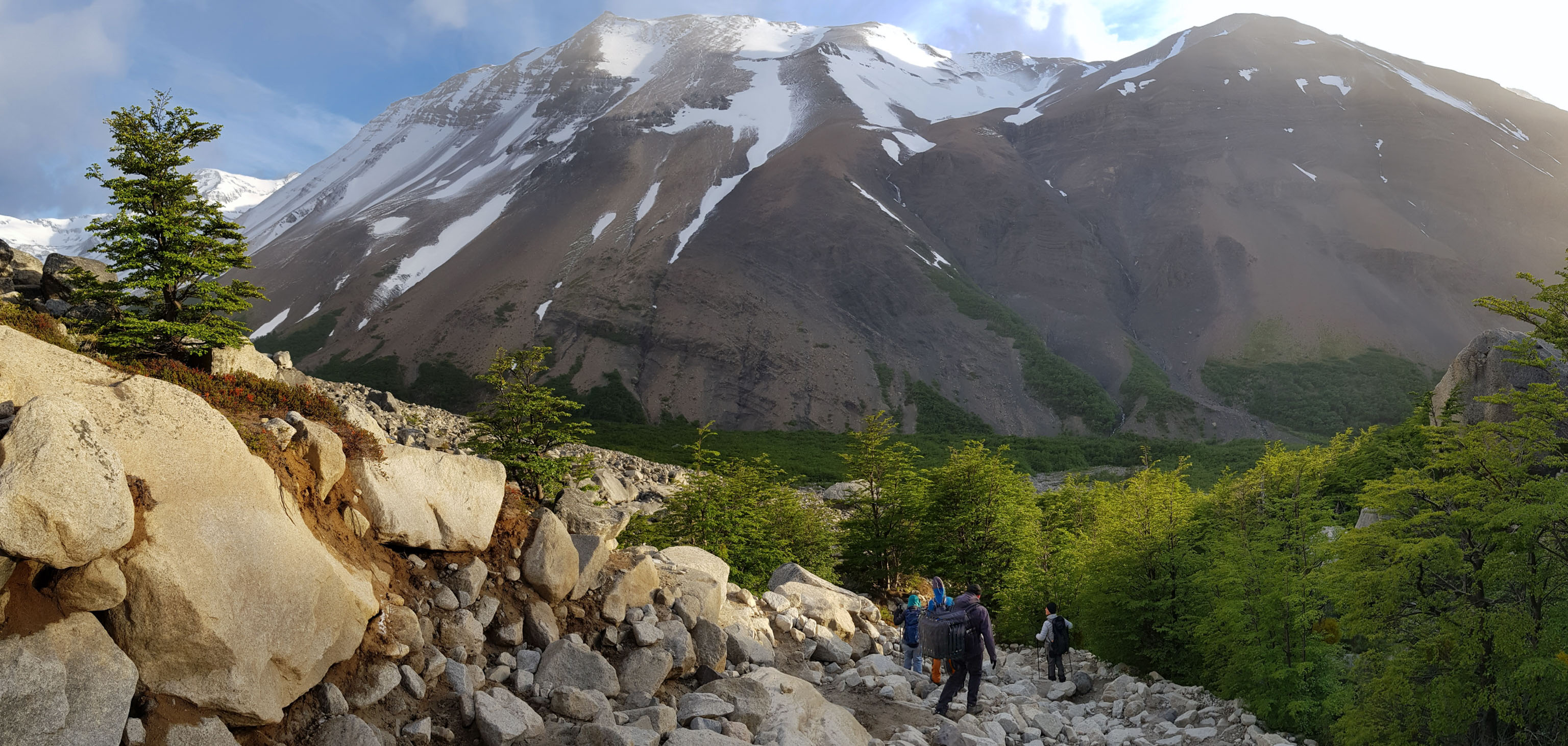 Nach dem Abstieg zurück ins Camp haben wir gepackt, unsere Zelte geräumt und noch ein zweites Frühstück zu uns genommen. Gegen halb zehn sind wir zu dem rund zweistündigen Abstieg ins Tal aufgebrochen und kurz nach zwölf wurden wir von einem Fahrer mit dem Shuttlebus abgeholt, der uns nach Puerto Natales zurückbringen sollte.
