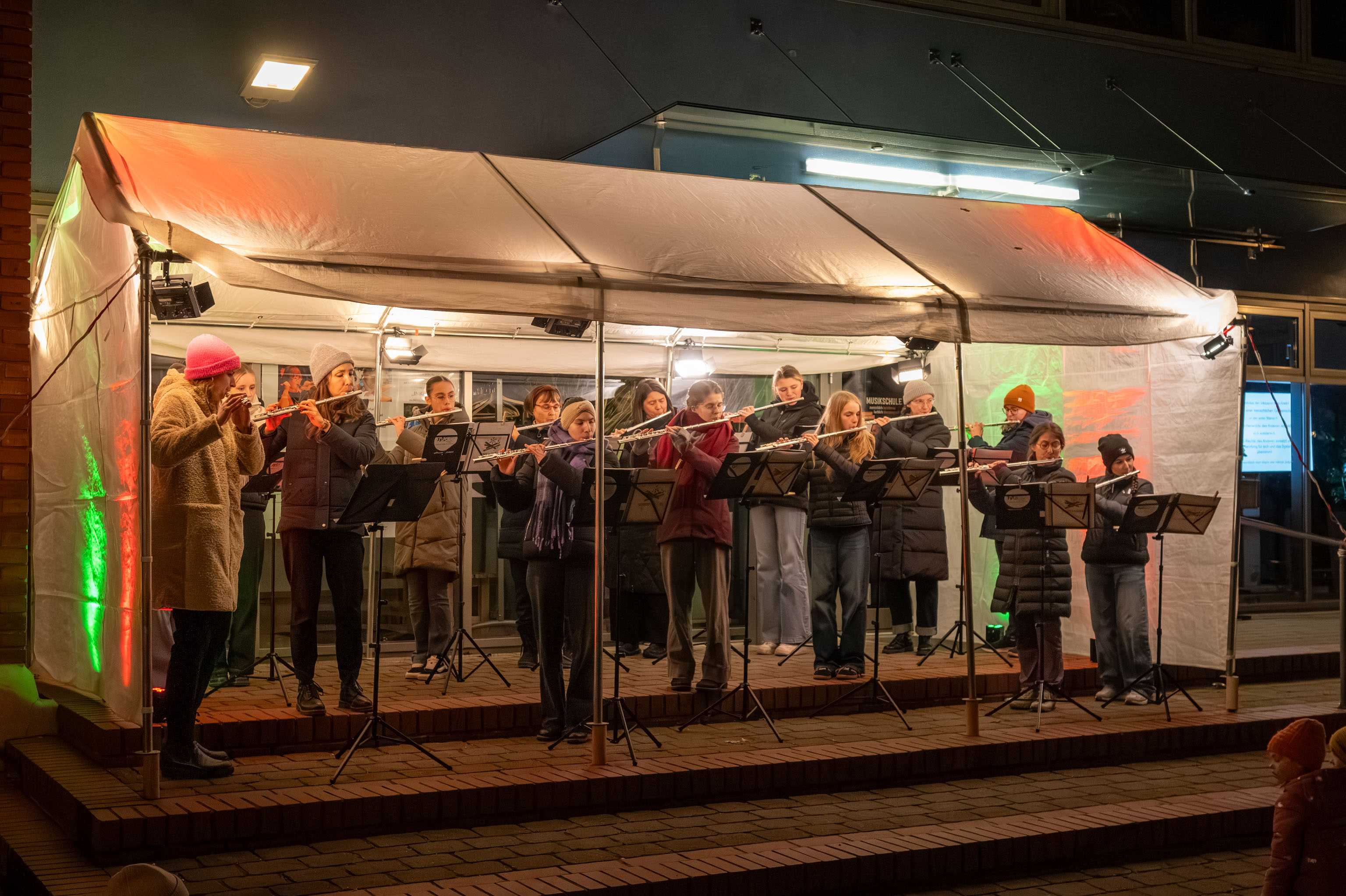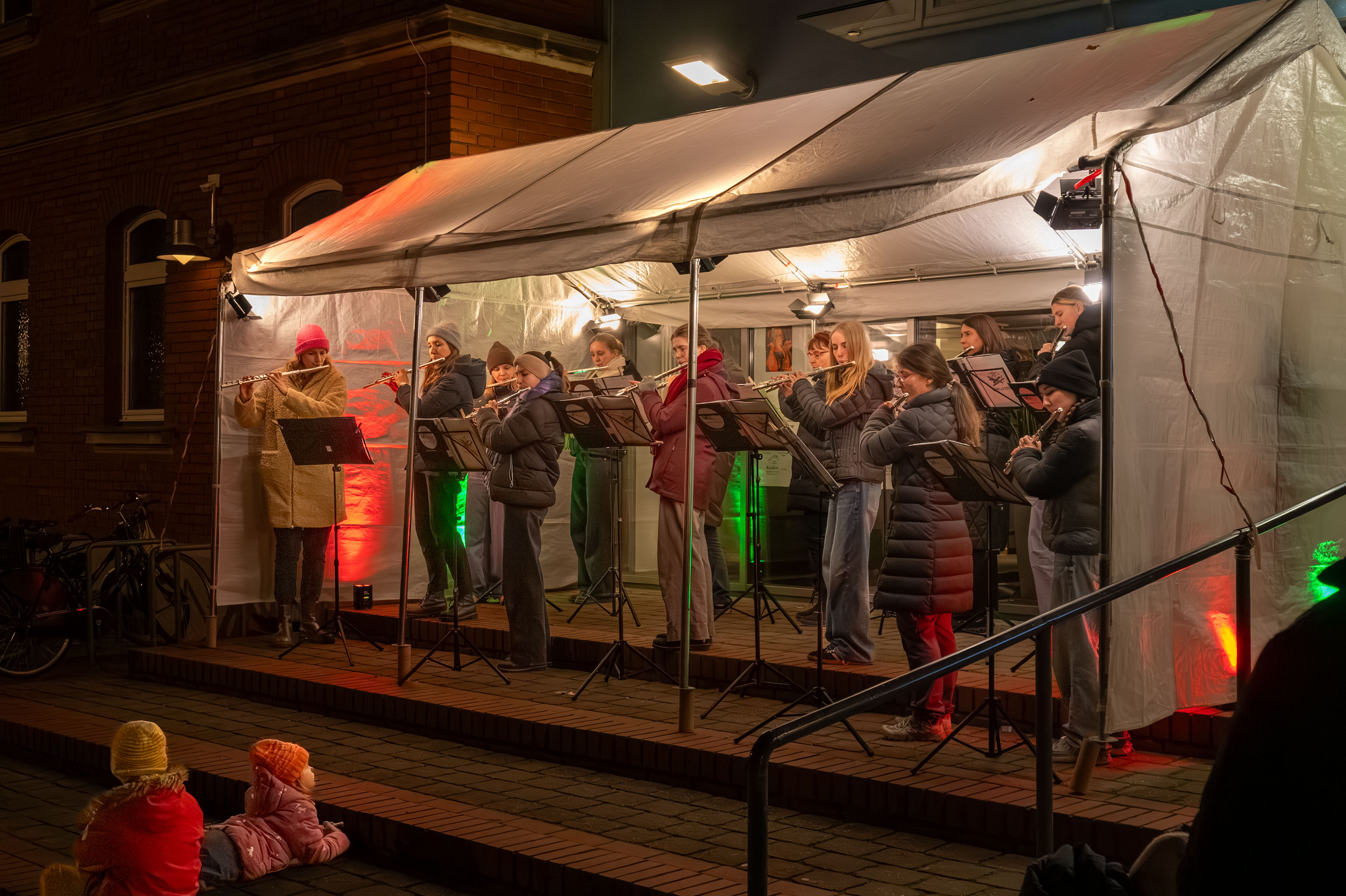 Wie jedes Jahr spielte auch heuer wieder jeden Abend vom 1. bis zum 24. Dezember ein anderes Ensemble vor der Musikschule im Fürther Südstadtpark.