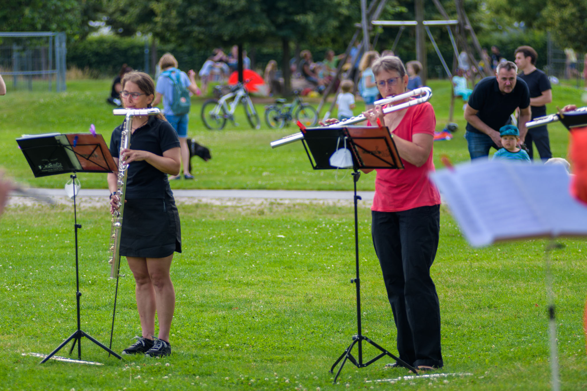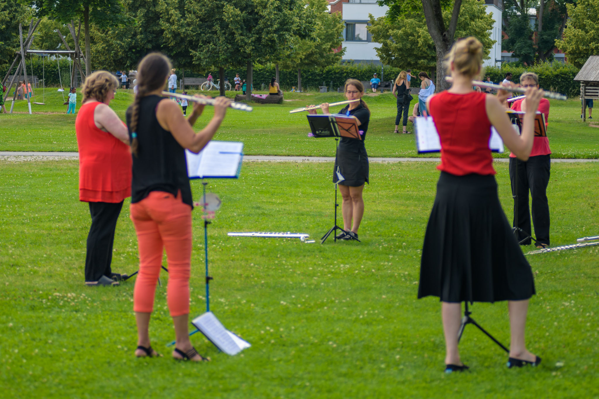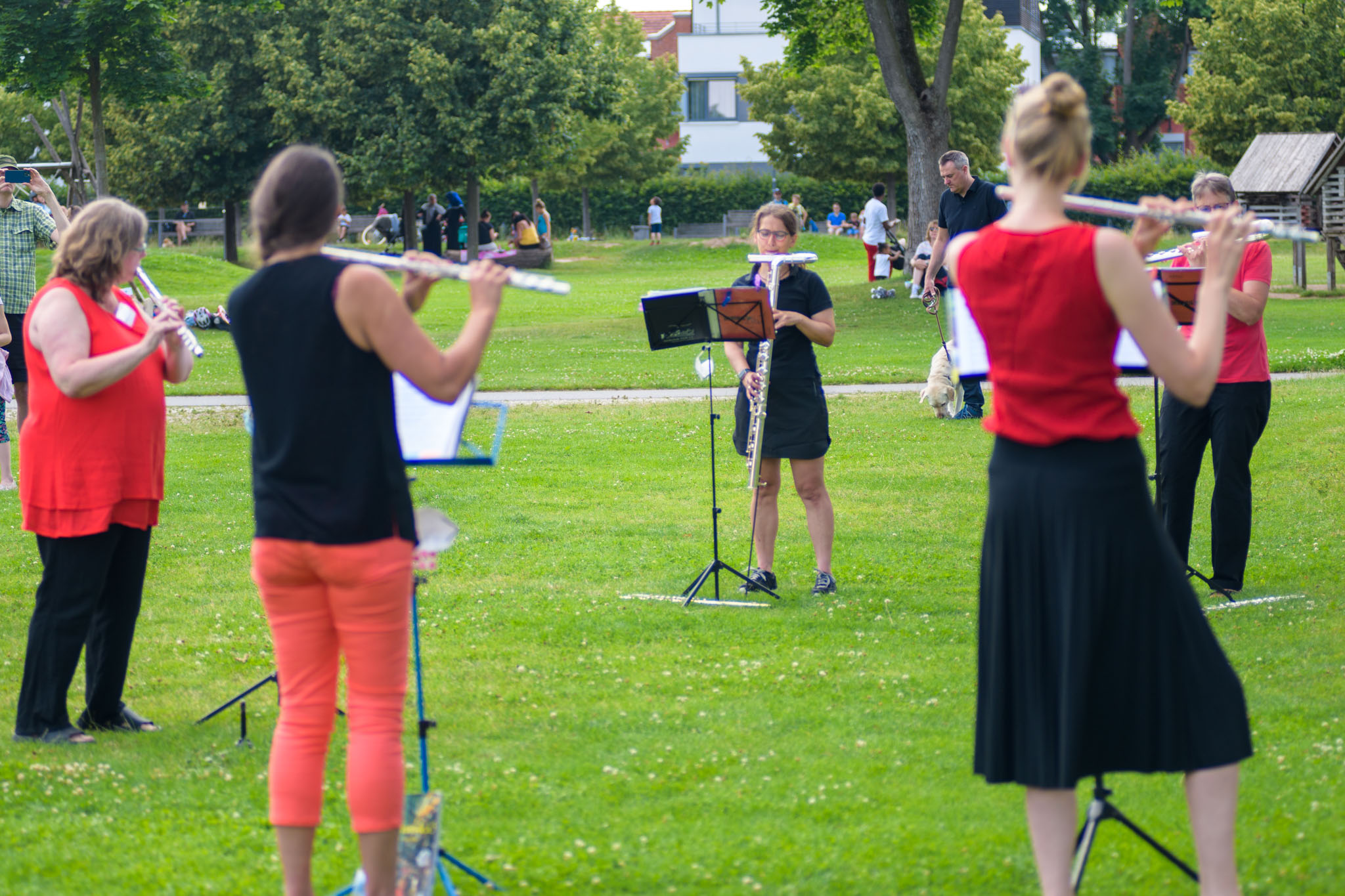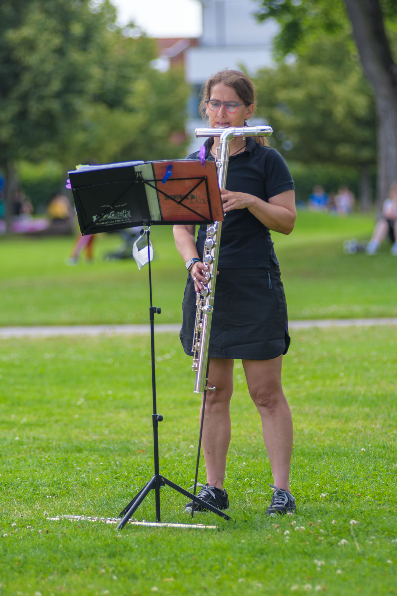 Gestern war Tag der offenen Tür in der Musikschule Fürth (bzw. im Südstadtpark an der Musikschule) und Maria spielte dort mit ihrem Ensemble Querplay.