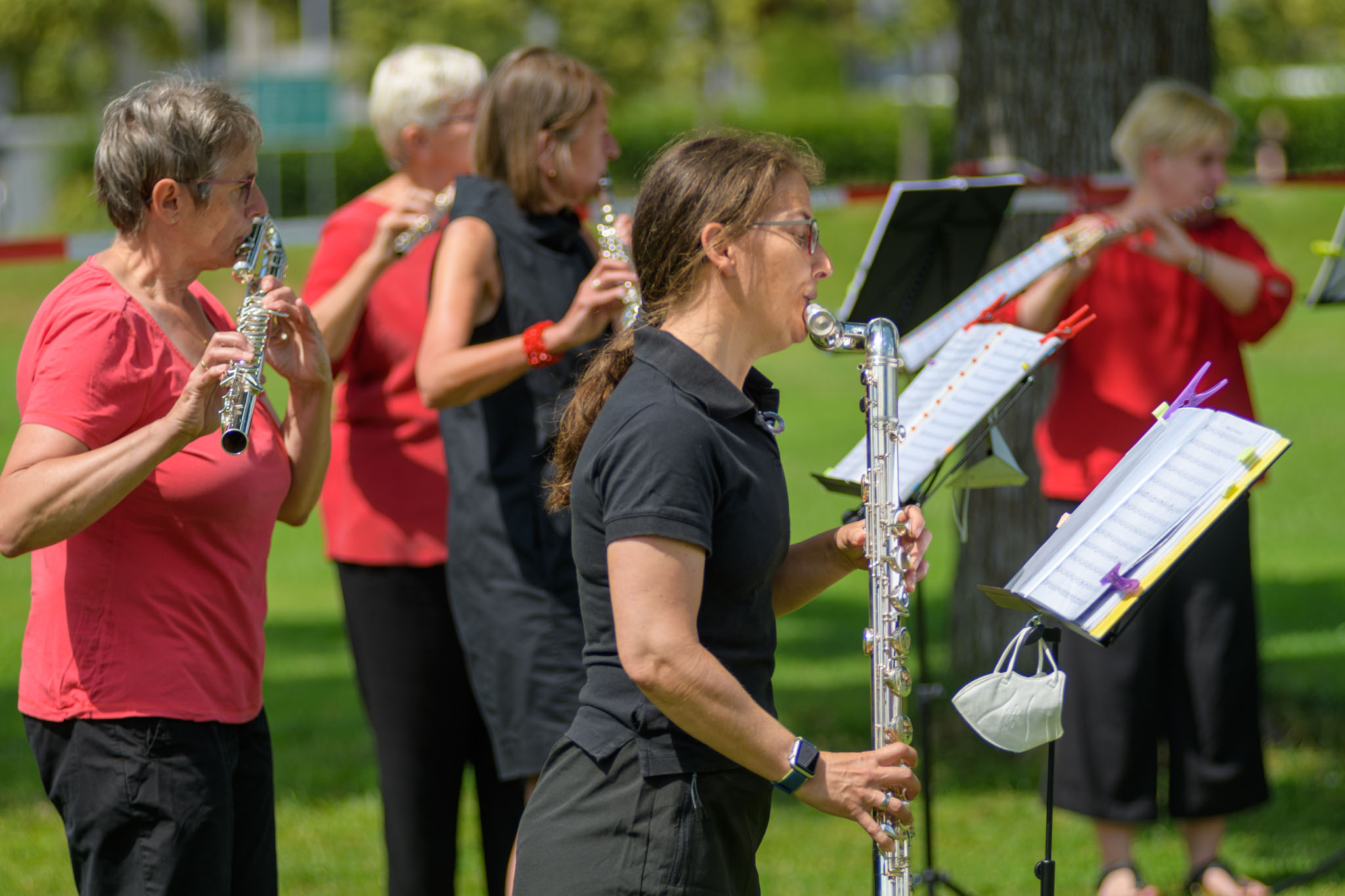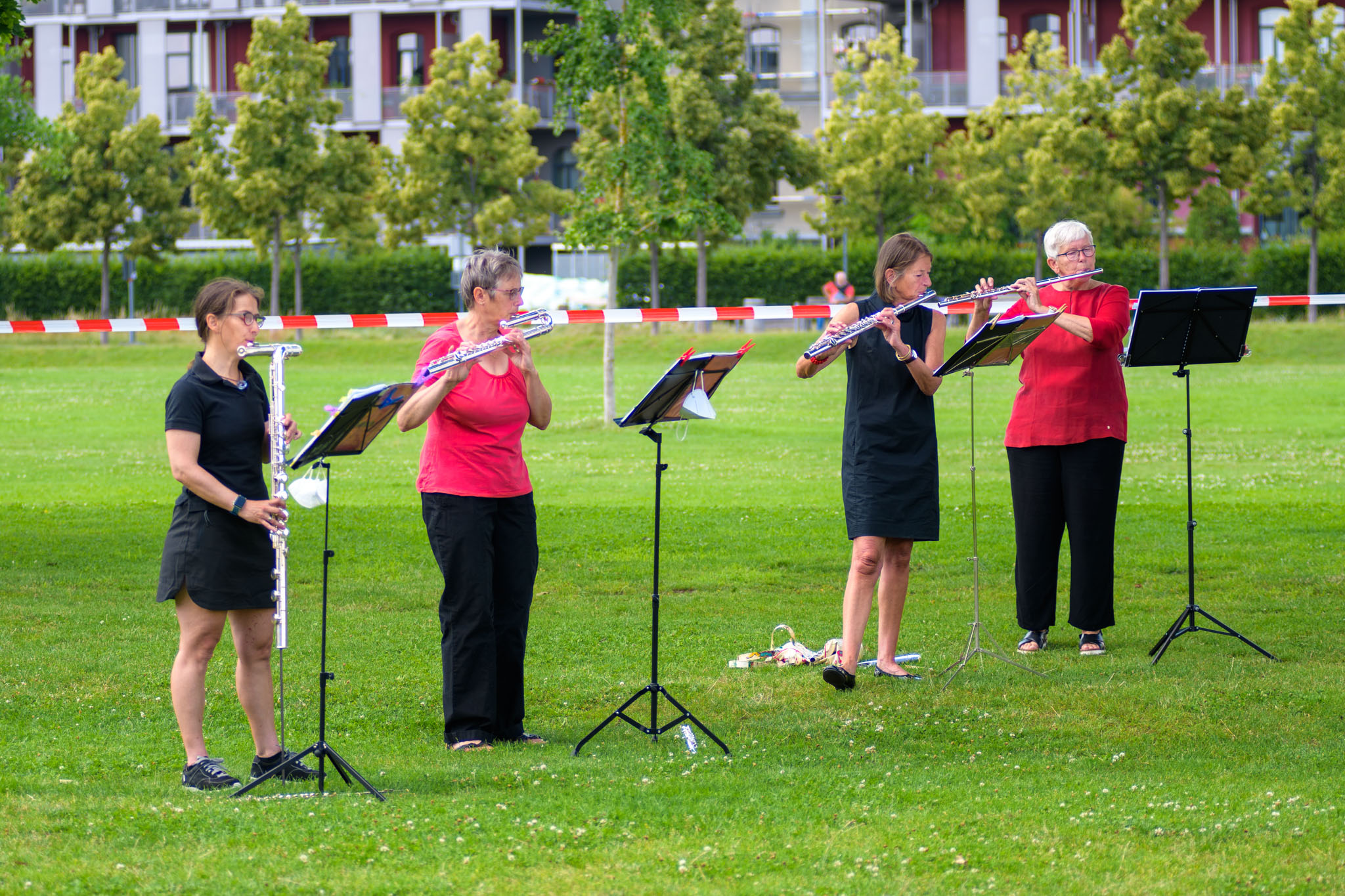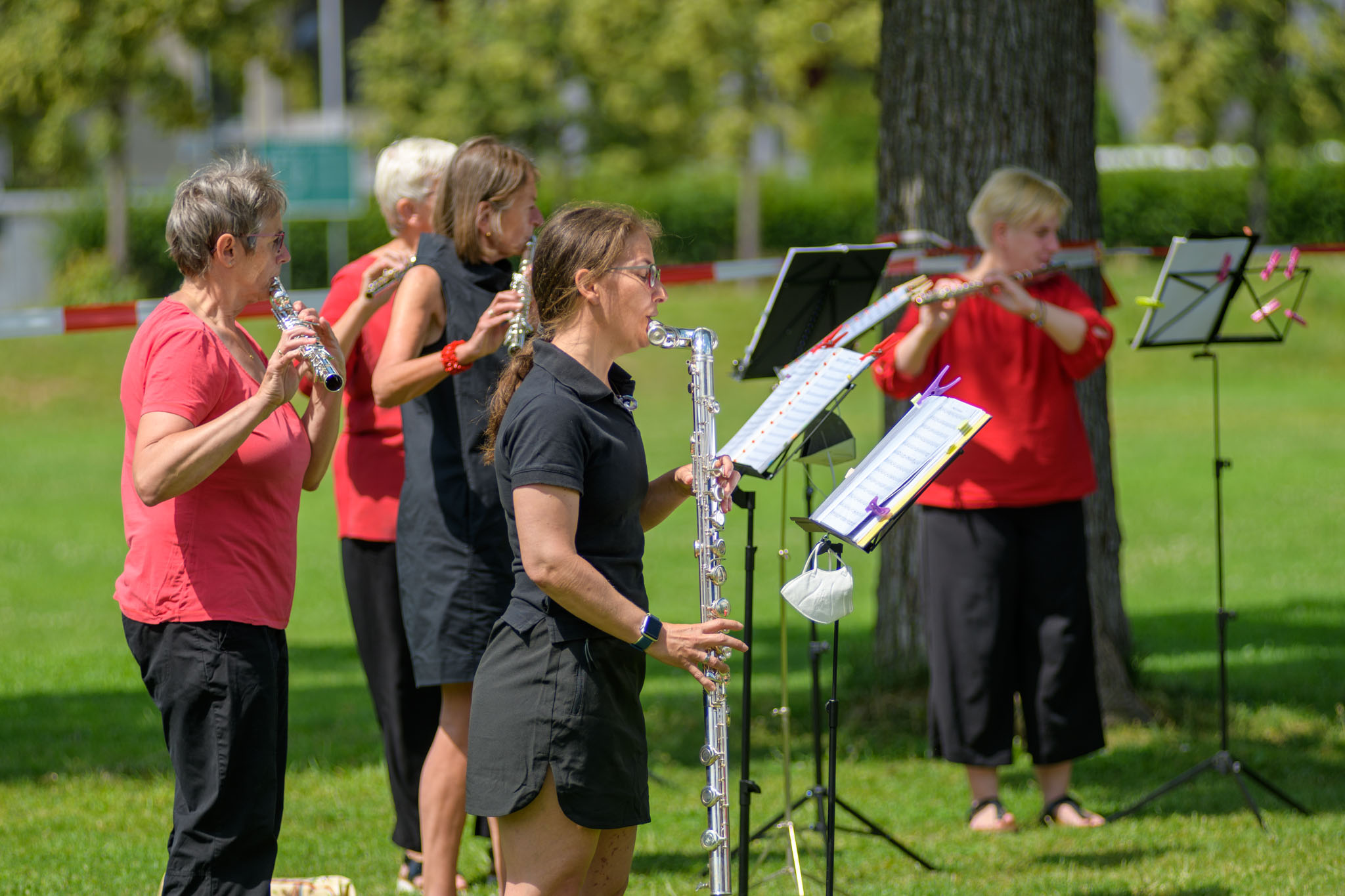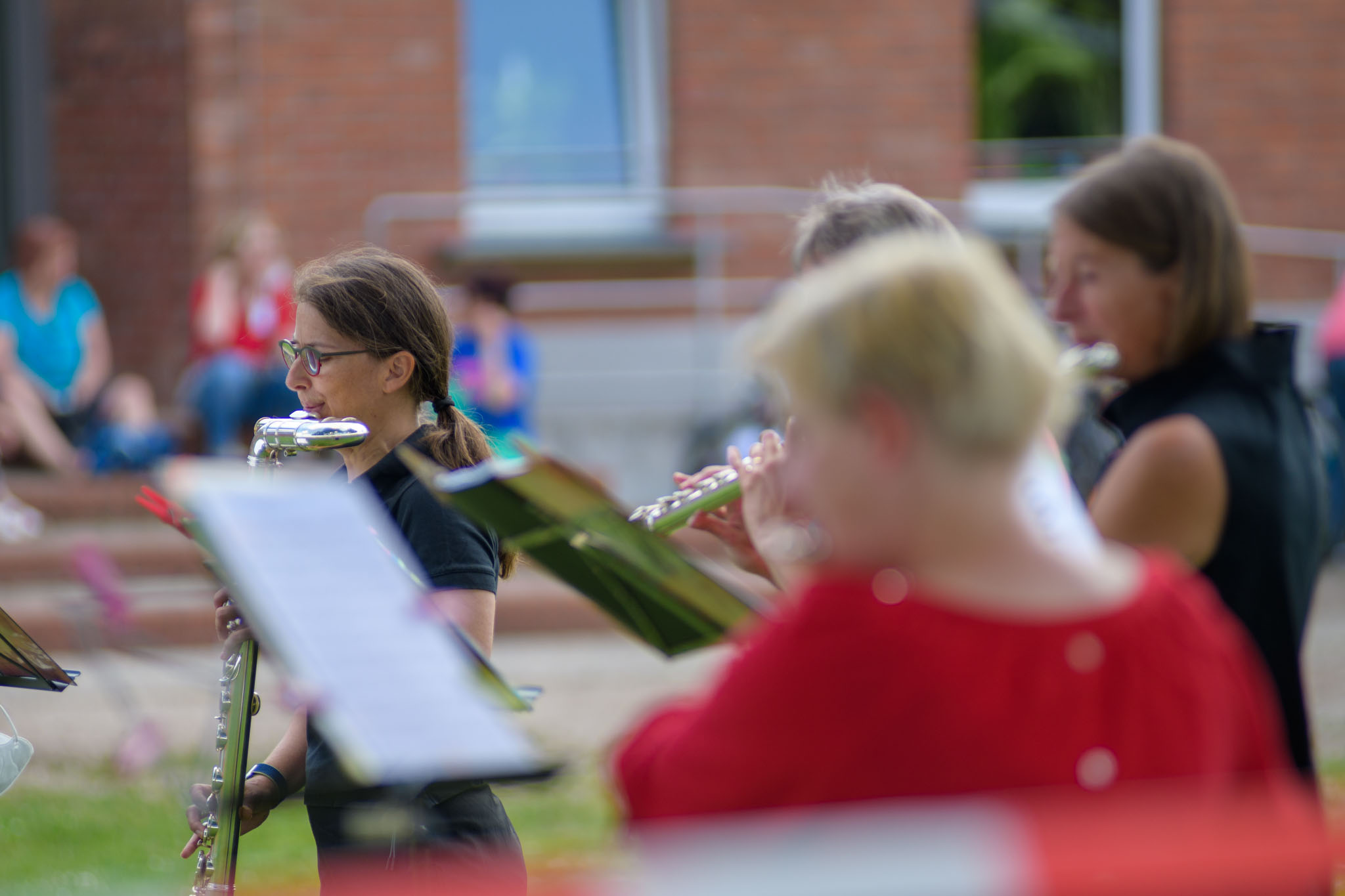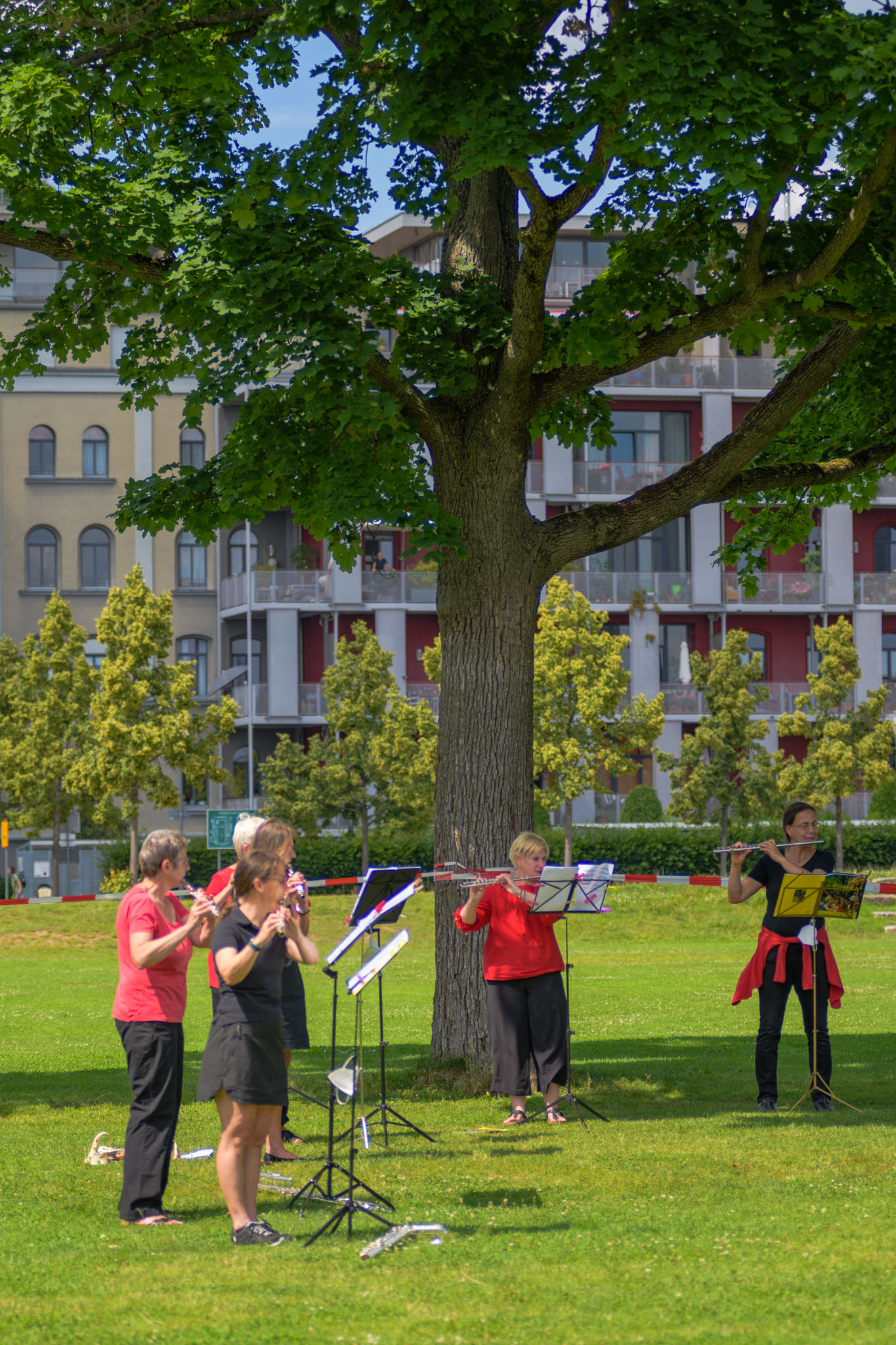 Gestern war Tag der offenen Tür in der Musikschule Fürth (bzw. im Südstadtpark an der Musikschule) und Maria spielte dort mit ihrem Ensemble Querplay.