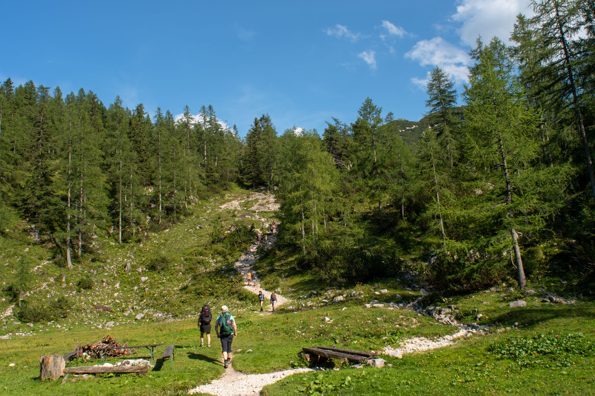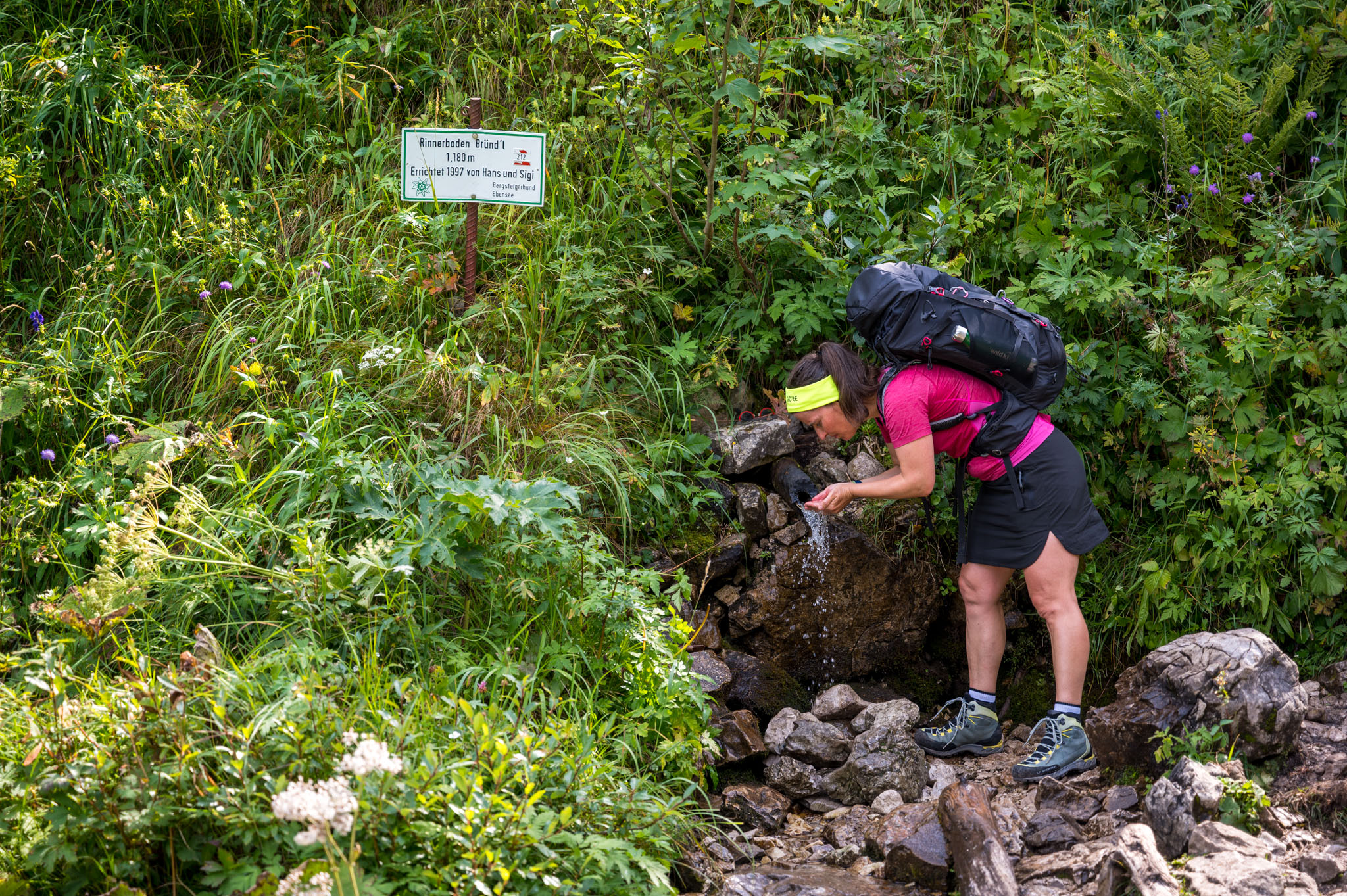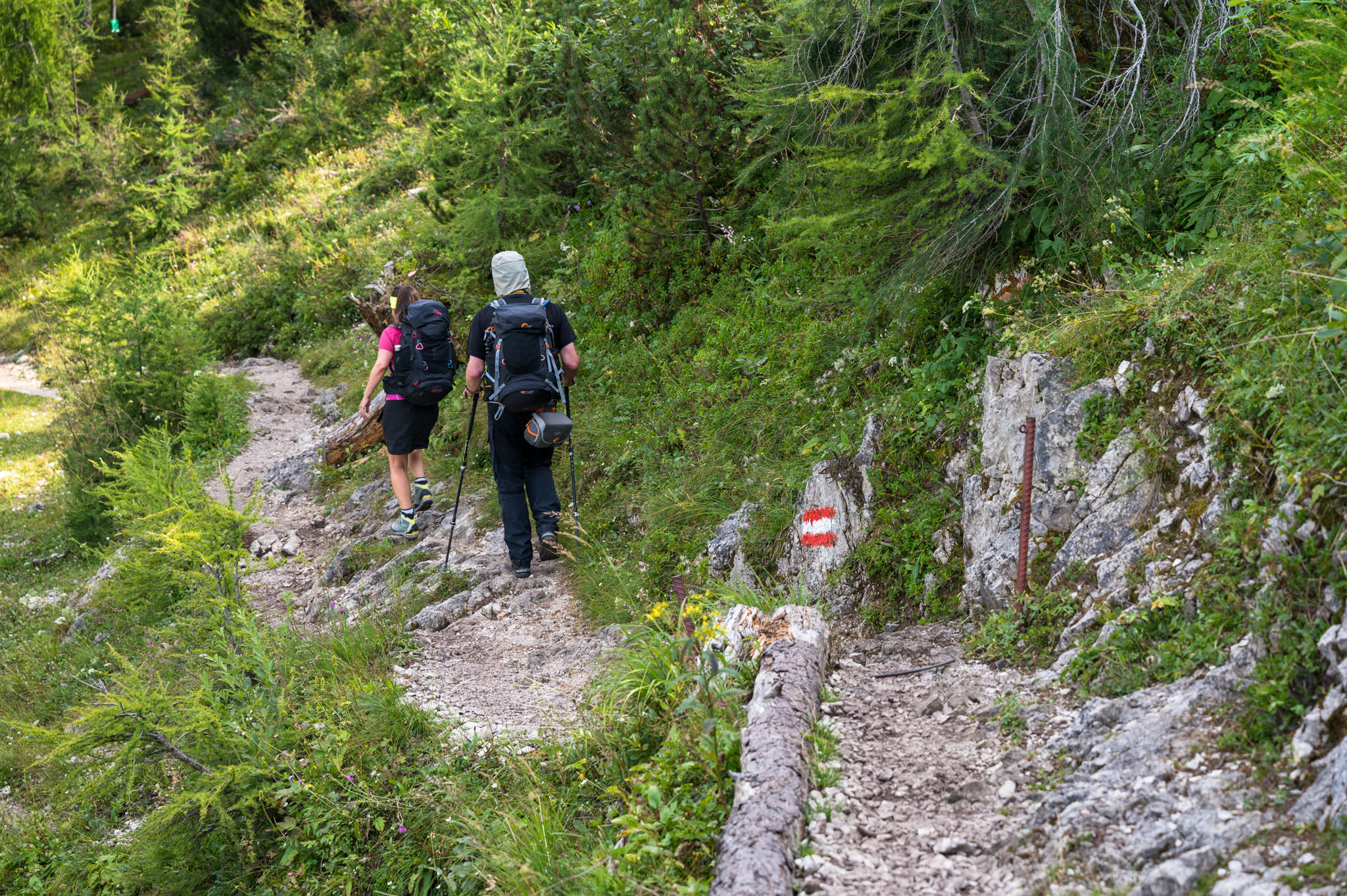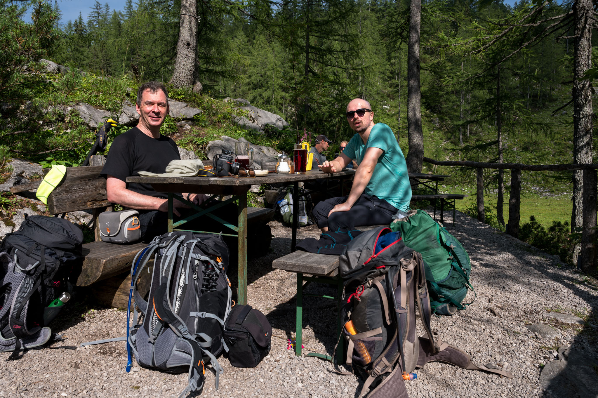 Während das Wetter beim Aufstieg und in der Nacht recht schön war, wollten wir beim Abstieg nicht unnötig trödeln, denn ab mittags war Regen angesagt. Daher haben wir auch auf den Abstecher zum Wildensee verzichtet, zumal die Berge inzwischen eh in Wolken gehüllt waren. Unmittelbar als wir auf der Rinnerhütte angekommen sind, hat es zu regnen begonnen, so dass wir dort mit Spiegelei und Speck ein ordentliches Frühstück zu uns genommen haben. So konnten wir den Regen gemütlich aussitzen und danach weiter ins Tal absteigen. Unterwegs kam dann sogar immer wieder die Sonne raus.