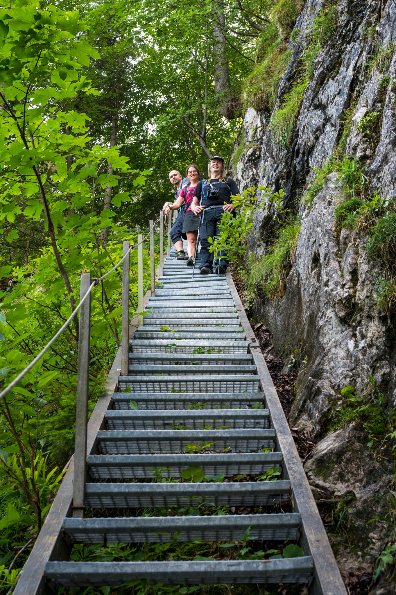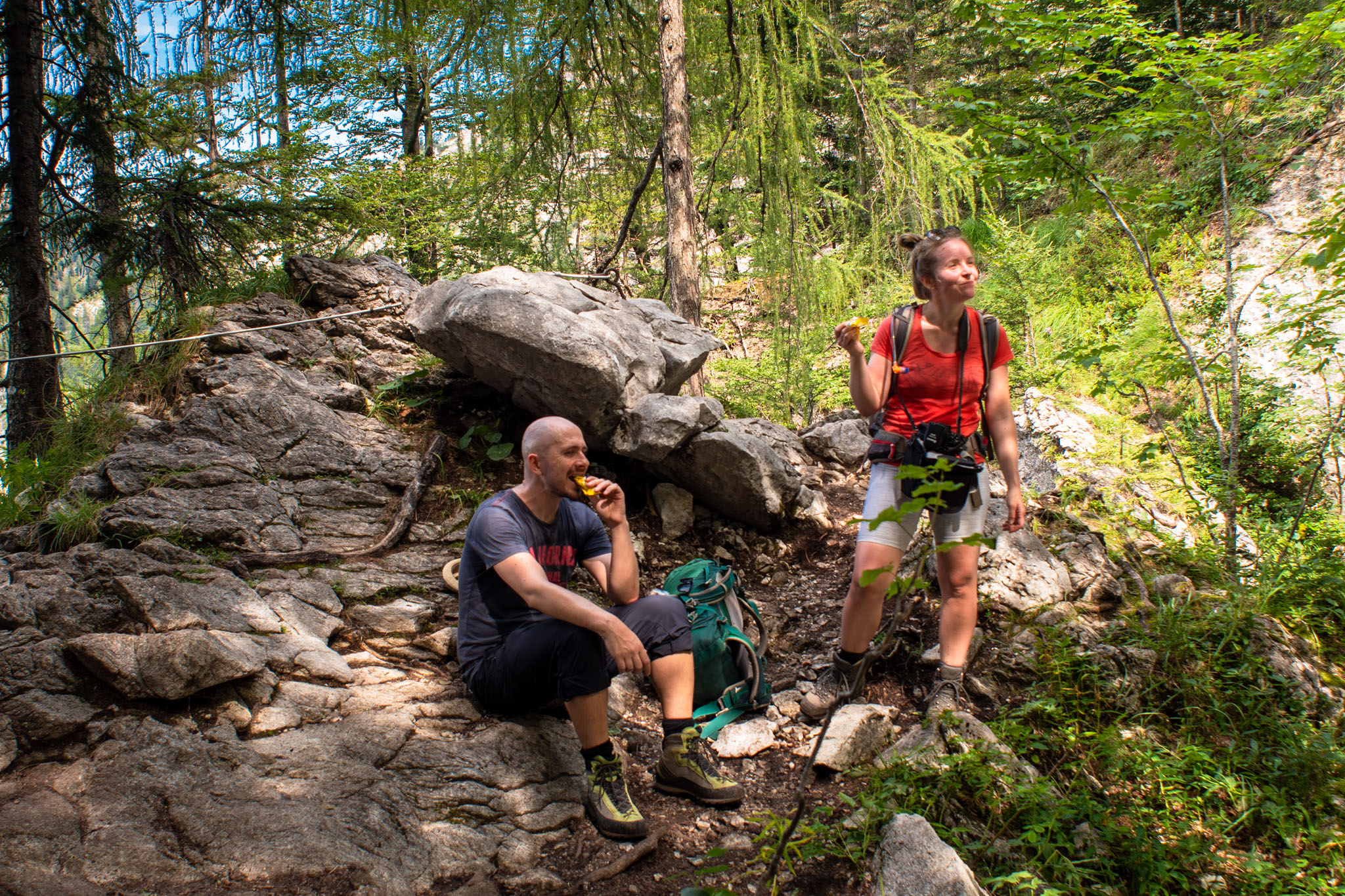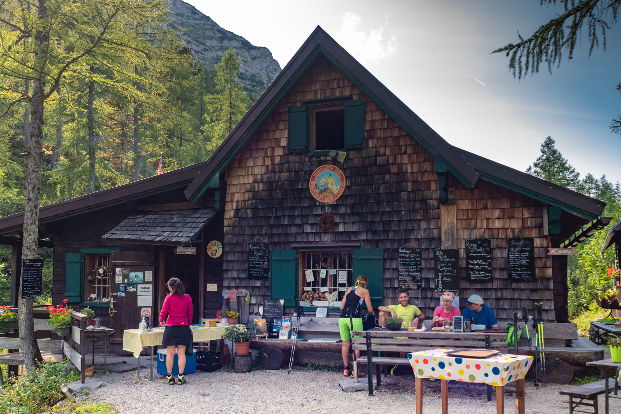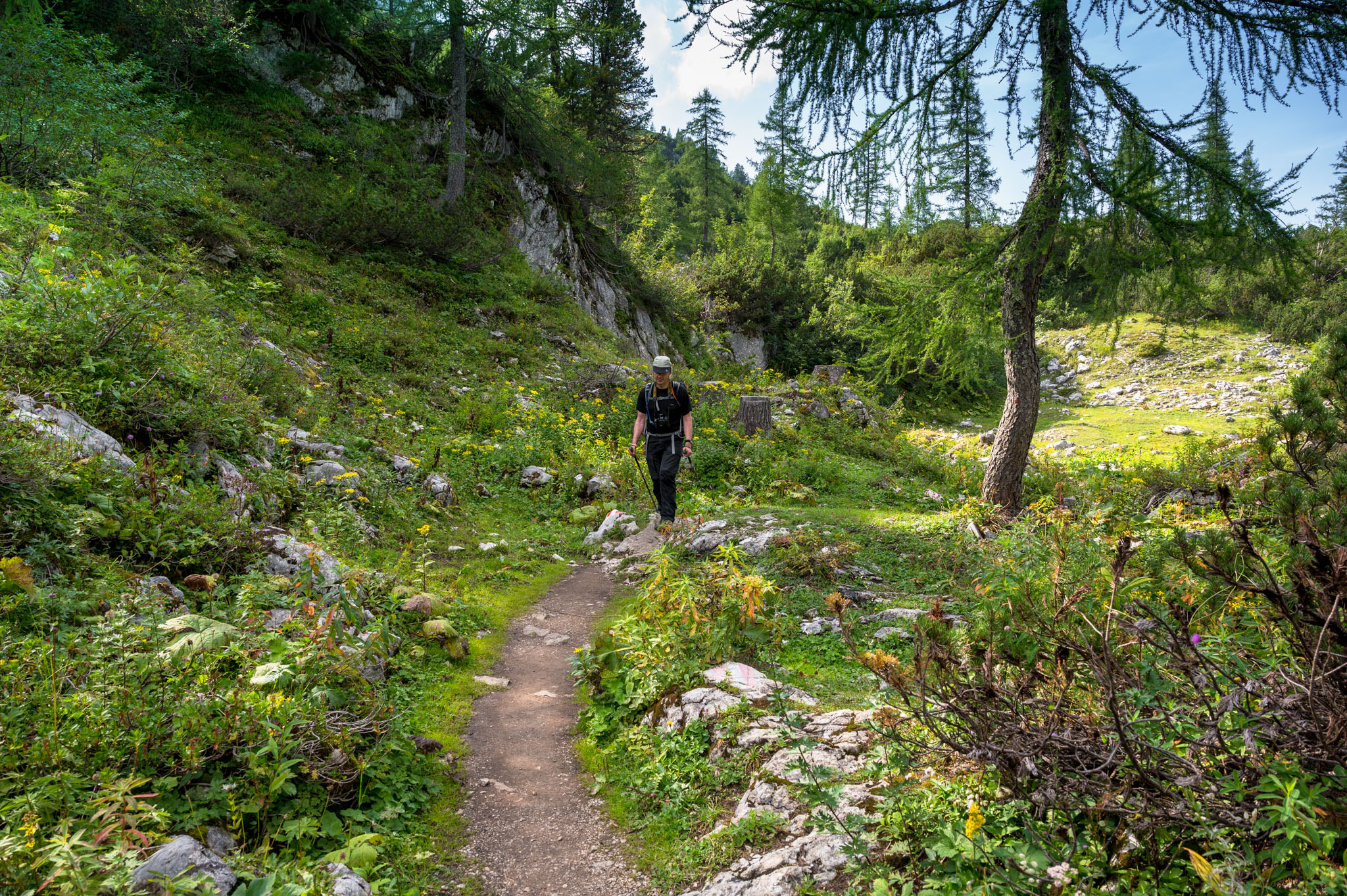 Während das Wetter beim Aufstieg und in der Nacht recht schön war, wollten wir beim Abstieg nicht unnötig trödeln, denn ab mittags war Regen angesagt. Daher haben wir auch auf den Abstecher zum Wildensee verzichtet, zumal die Berge inzwischen eh in Wolken gehüllt waren. Unmittelbar als wir auf der Rinnerhütte angekommen sind, hat es zu regnen begonnen, so dass wir dort mit Spiegelei und Speck ein ordentliches Frühstück zu uns genommen haben. So konnten wir den Regen gemütlich aussitzen und danach weiter ins Tal absteigen. Unterwegs kam dann sogar immer wieder die Sonne raus.