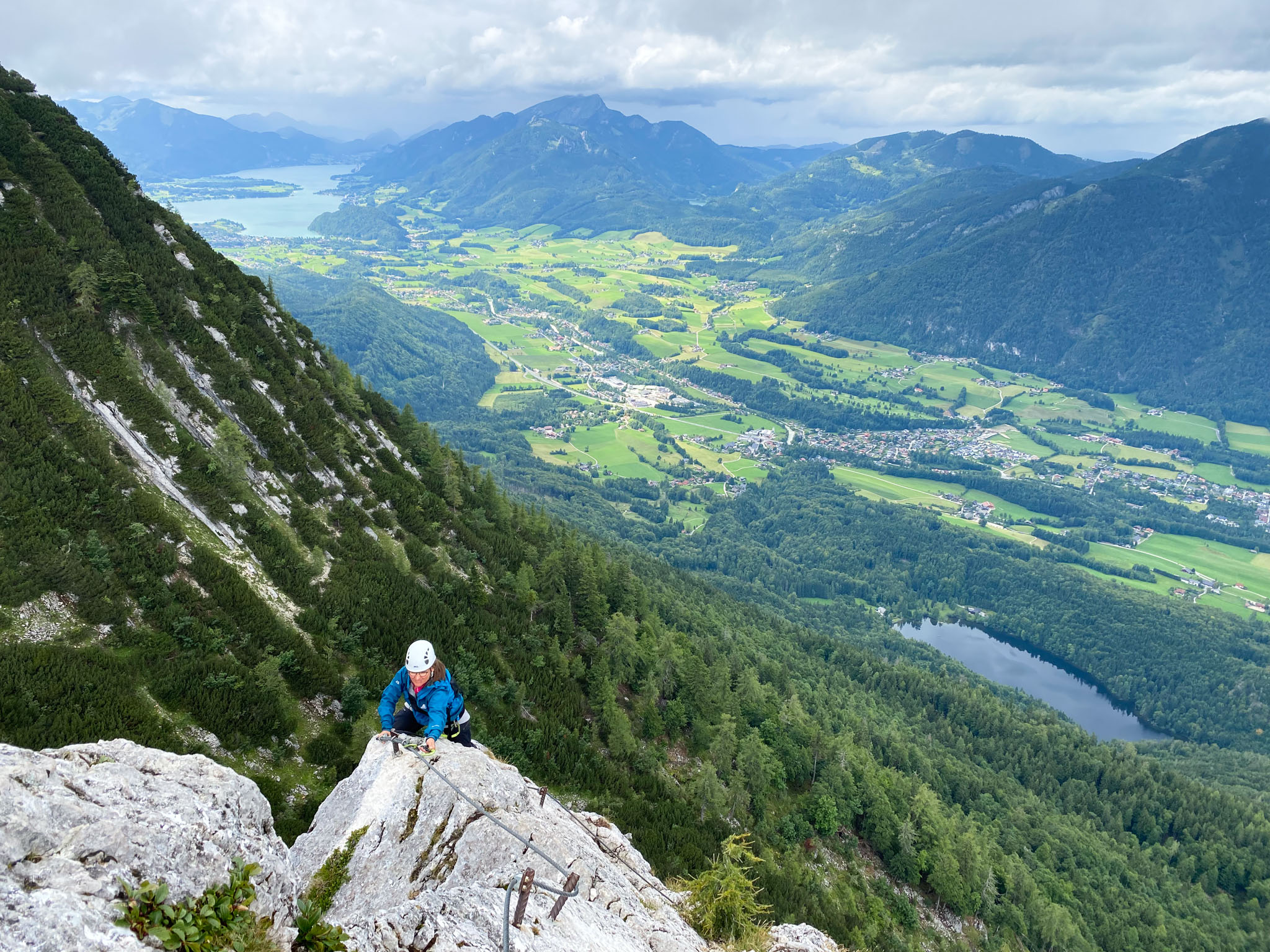 Das Wochenende ist vorbei und Samir musste wieder arbeiten, so dass wir nur mit Julia am Wolfgangsee geblieben sind. Von dort ging es heute nach Bad Ischl, wo es zunächst mit der Katrinbahn nach oben ging und dann Mia und Julia gemeinsam den Katrin-Klettersteig in Angriff genommen haben. Thomas war derweil wandermäßig unterwegs (s. den nächsten Blogeintrag) und am Gipfel haben wir uns wieder getroffen.