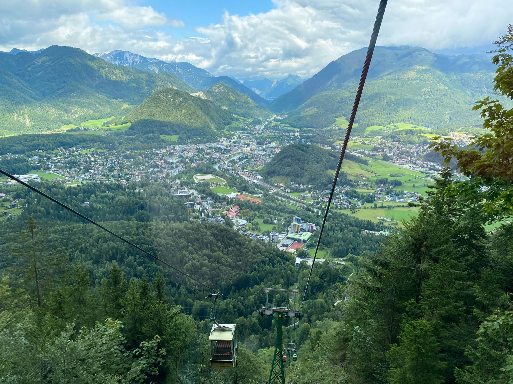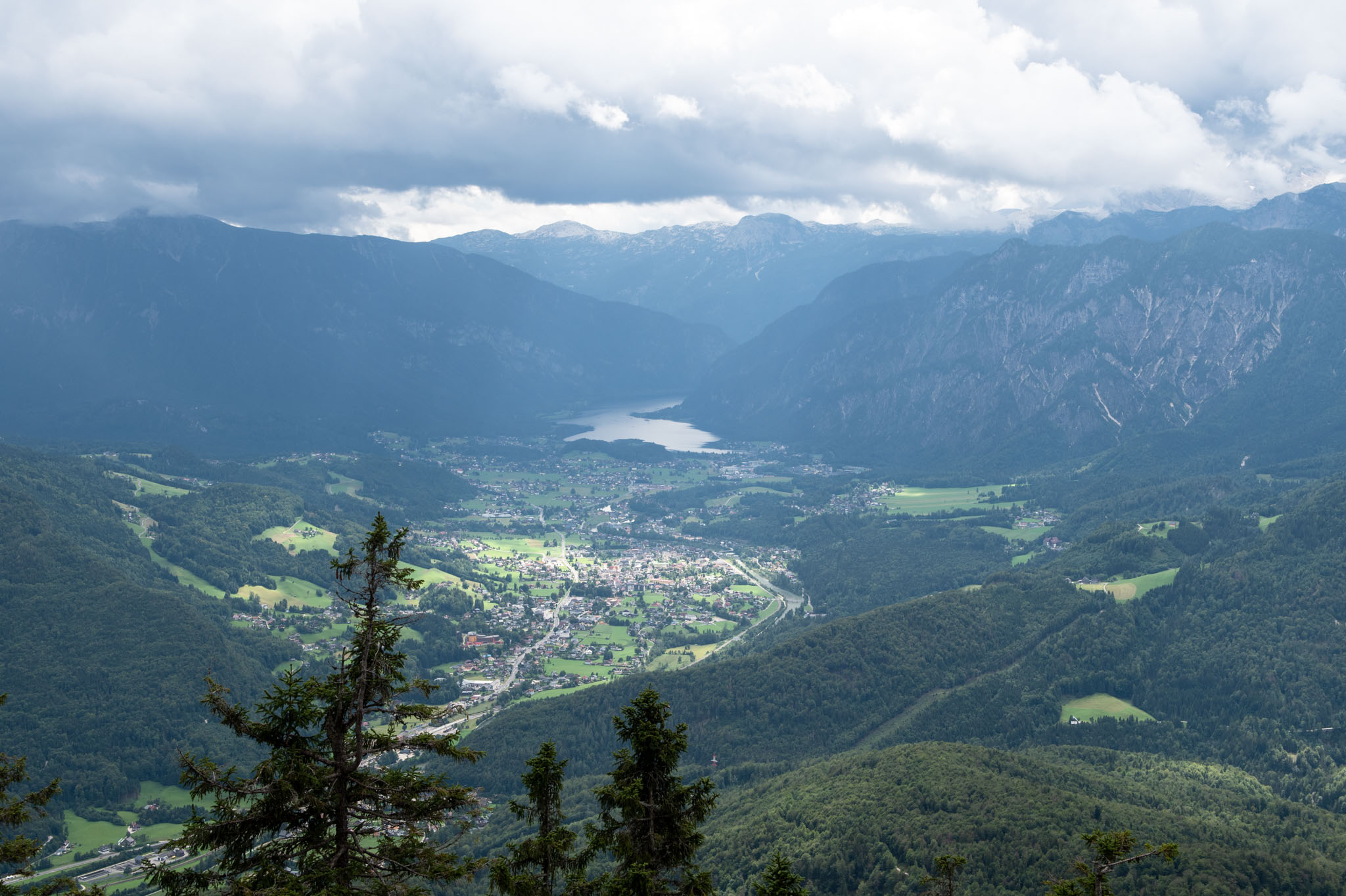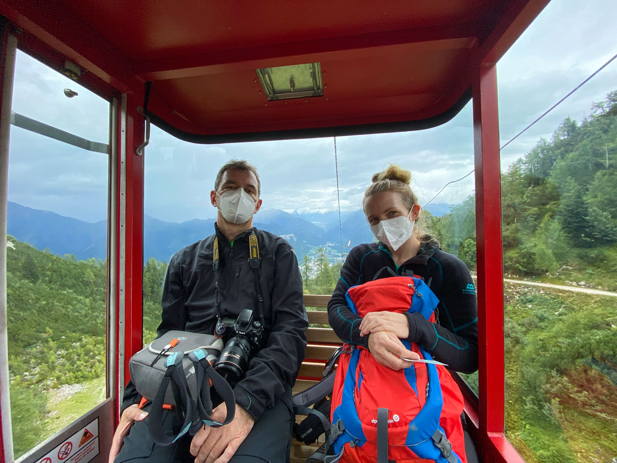 Während Mia und Julia den Katringipfel auf dem Klettersteig in Angriff genommen haben, wollte ich die 7-Seenblick-Wanderung dorthin machen und mich am Gipfel wieder mit den beiden treffen. Bereits wenige Minuten nach dem Start der Tour war klar, dass der Titel eine Mogelpackung werden wird, denn es fing kräftig zu regnen an und von den gegenüberliegenden Bergen und den Seen im Tal war nicht mehr viel zu sehen. Nachdem der erste Teil des Weges auch noch ausgesetzt war und mir nicht klar war, wie lange das noch so weitergehen wird, bin ich irgendwann umgekehrt und bin den Rundweg in umgekehrter Richtung gegangen. Da man wandernd natürlich schneller unterwegs ist als im Klettersteig, konnte ich trotzdem einen ordentlichen Teil des Weges gehen. Von den drei Gipfeln (Katrin, Elferkogel und Hainzen) musste ich nur auf den Hainzen verzichten, bevor ich zurück zum Katrin-Gipfel musste. Dort bin ich dann perfekt gleichzeitig mit Mia und Julia angekommen. Mit der Seilbahn ging es dann gemeinsam wieder zurück ins Tal nach Bad Ischl.