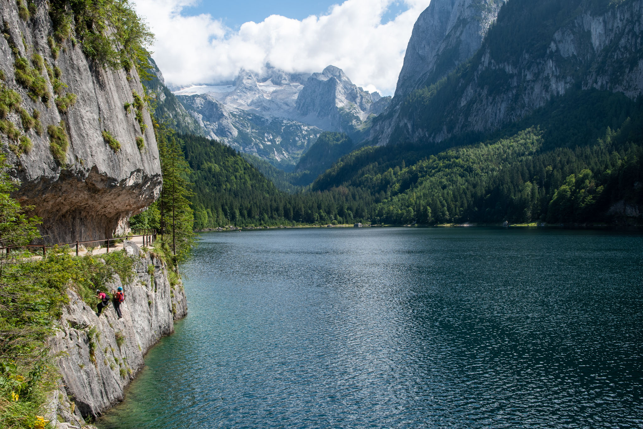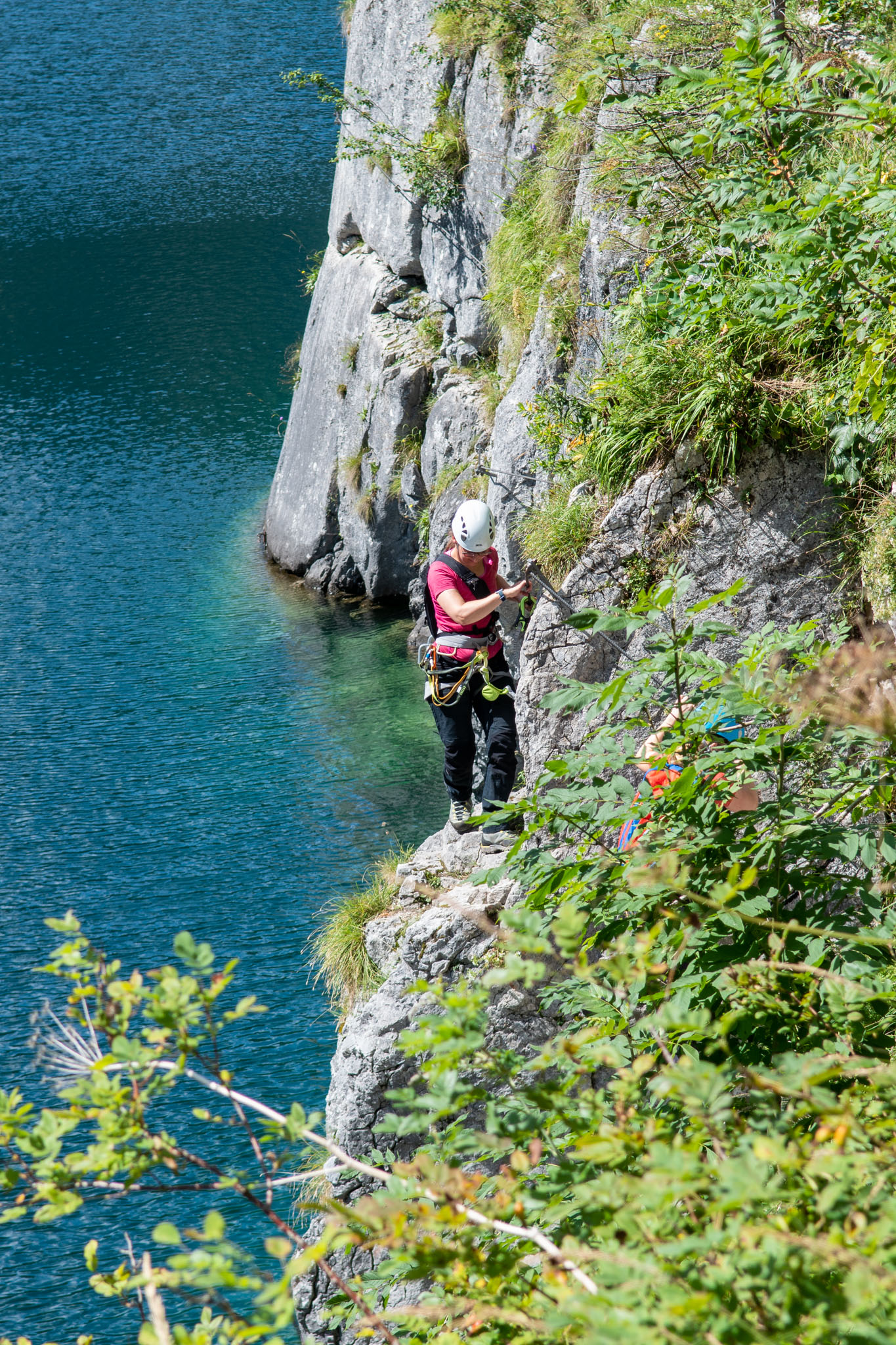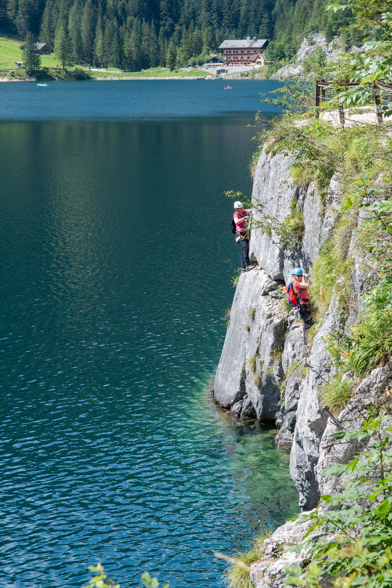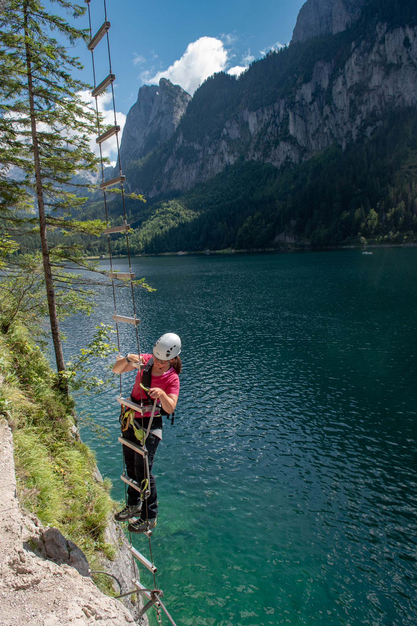 Nach einem Tag Regenpause war das Wetter heute wieder richtig schön, so dass wir zum Gosausee aufgebrochen sind. Mia und Julia wollten dort den ersten Teil des Klettersteiges gehen, der direkt am See liegt und der vom Weg aus schön einsehbar ist, so dass Thomas gut fotografieren konnte. Anschließend sind wir noch um den See herum spaziert, bevor es kurz vor dem Parkplatz in einer kleinen urigen Hütte einen richtig guten Kaiserschmarren gab. Diese Hütte war so viel einladender als das Riesenrestaurant für die Massen an Touristen direkt am Ende des Sees und dem Parkplatz.