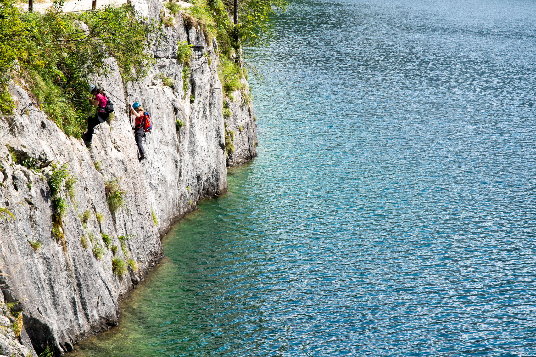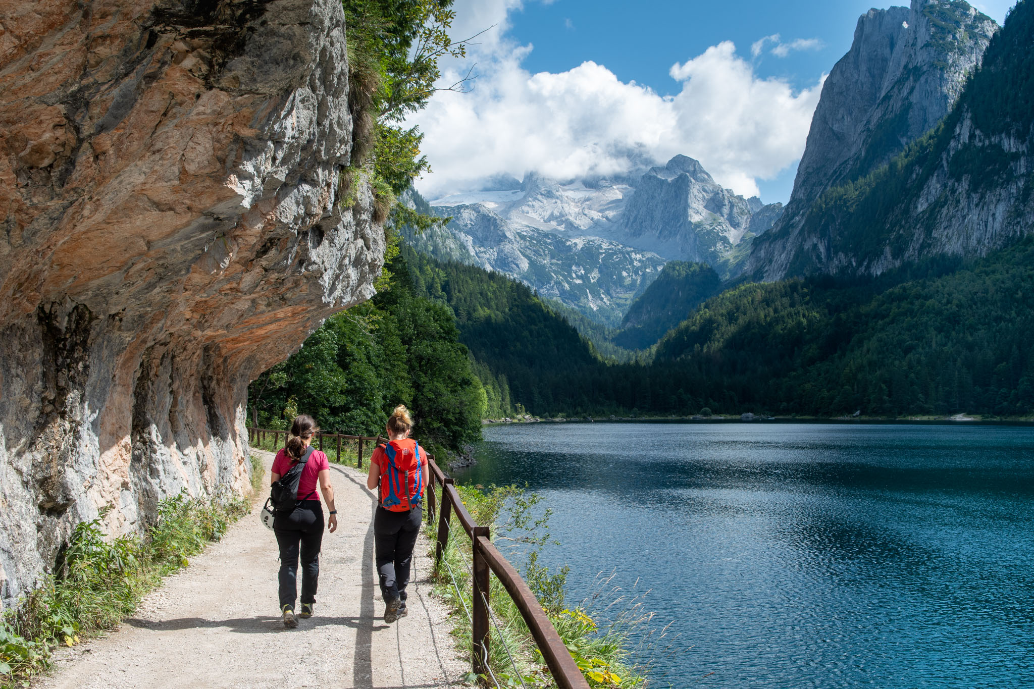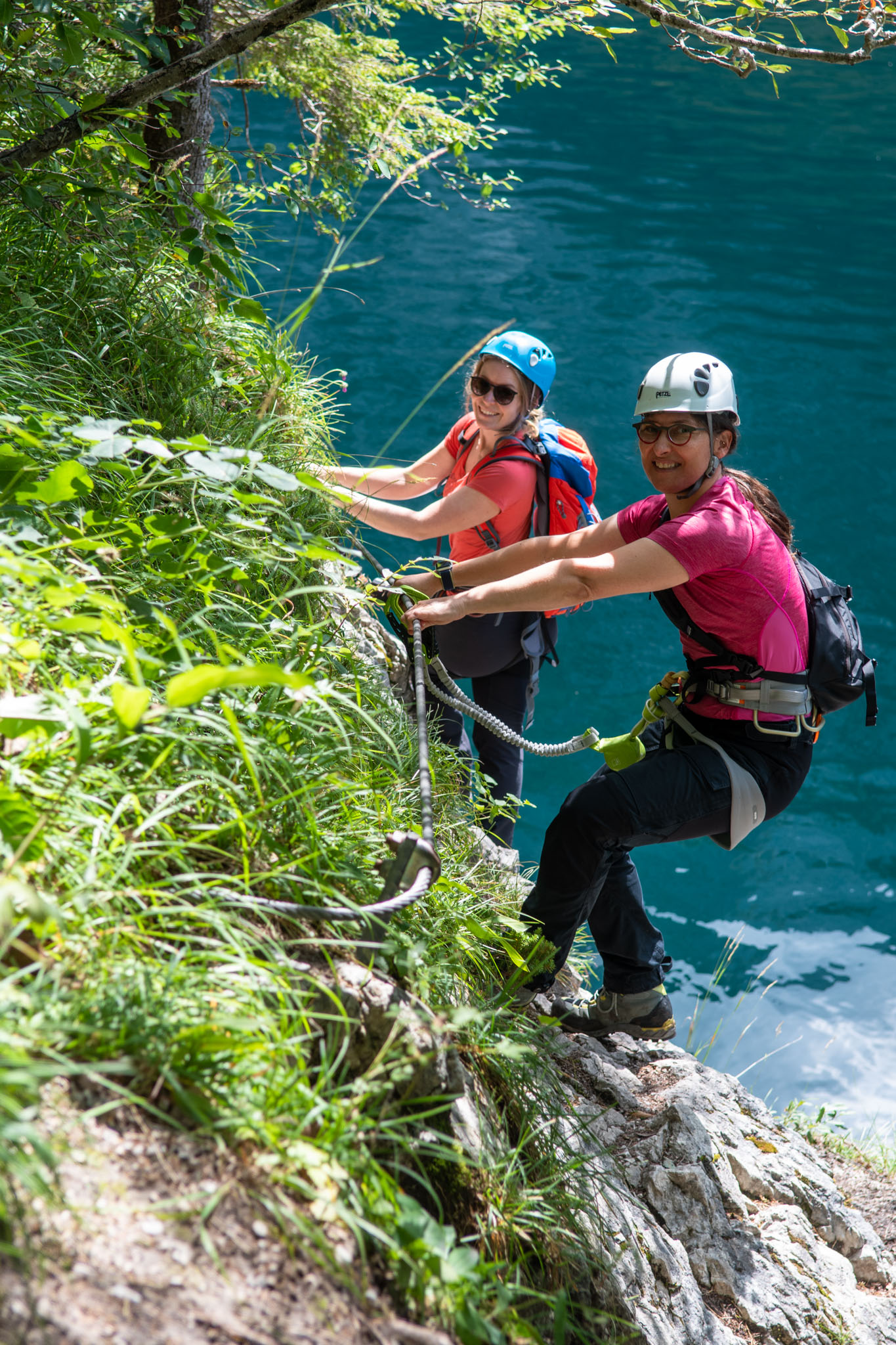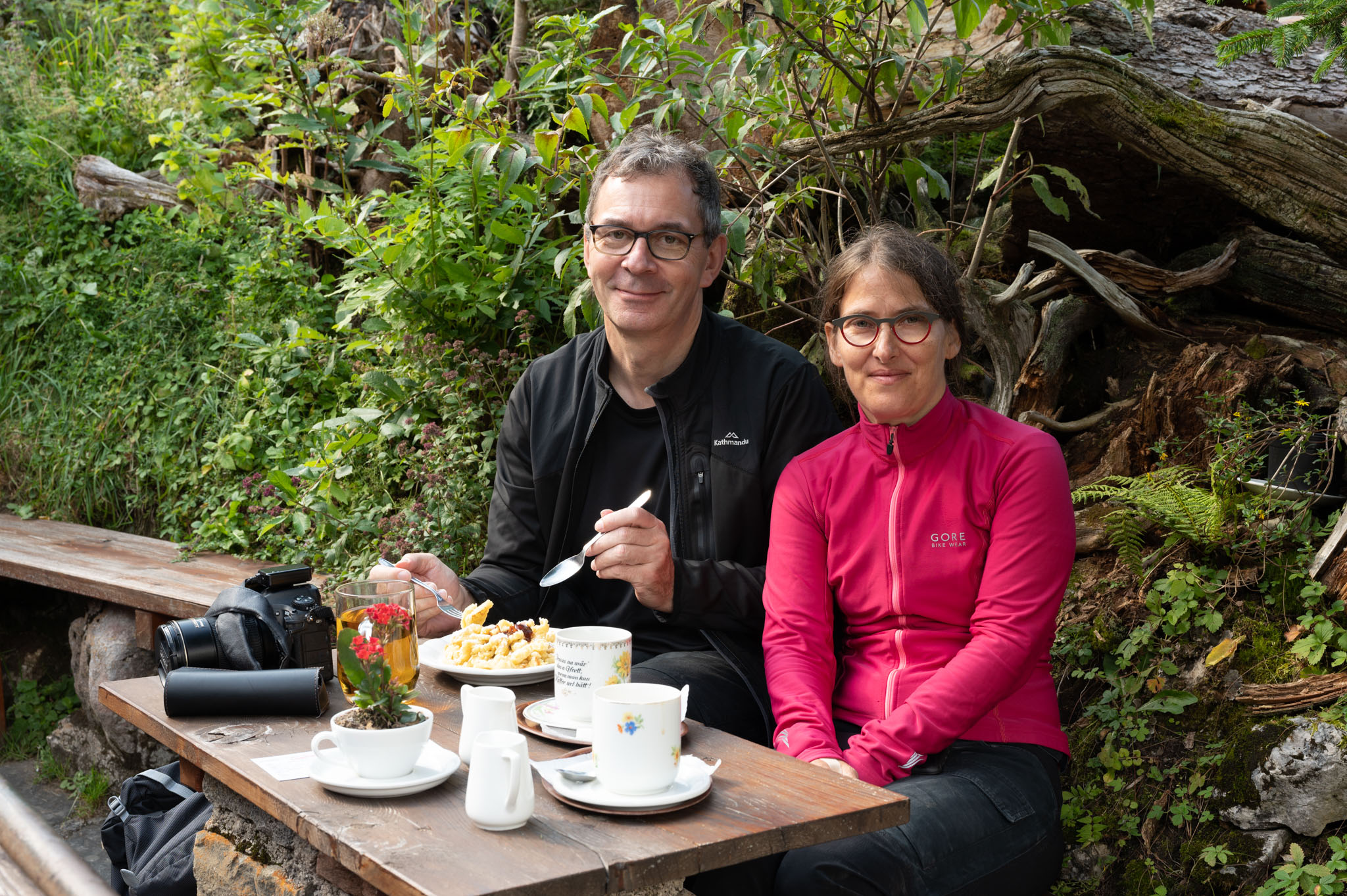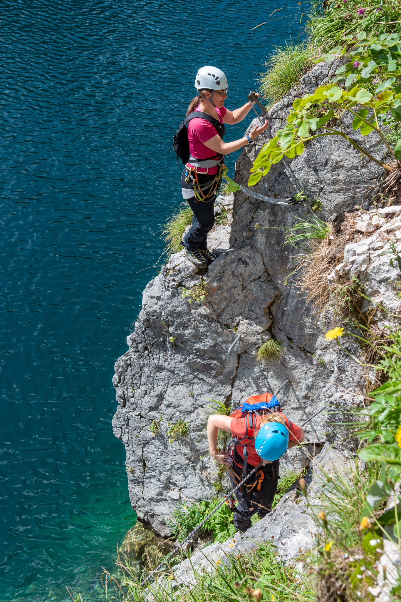 Nach einem Tag Regenpause war das Wetter heute wieder richtig schön, so dass wir zum Gosausee aufgebrochen sind. Mia und Julia wollten dort den ersten Teil des Klettersteiges gehen, der direkt am See liegt und der vom Weg aus schön einsehbar ist, so dass Thomas gut fotografieren konnte. Anschließend sind wir noch um den See herum spaziert, bevor es kurz vor dem Parkplatz in einer kleinen urigen Hütte einen richtig guten Kaiserschmarren gab. Diese Hütte war so viel einladender als das Riesenrestaurant für die Massen an Touristen direkt am Ende des Sees und dem Parkplatz.