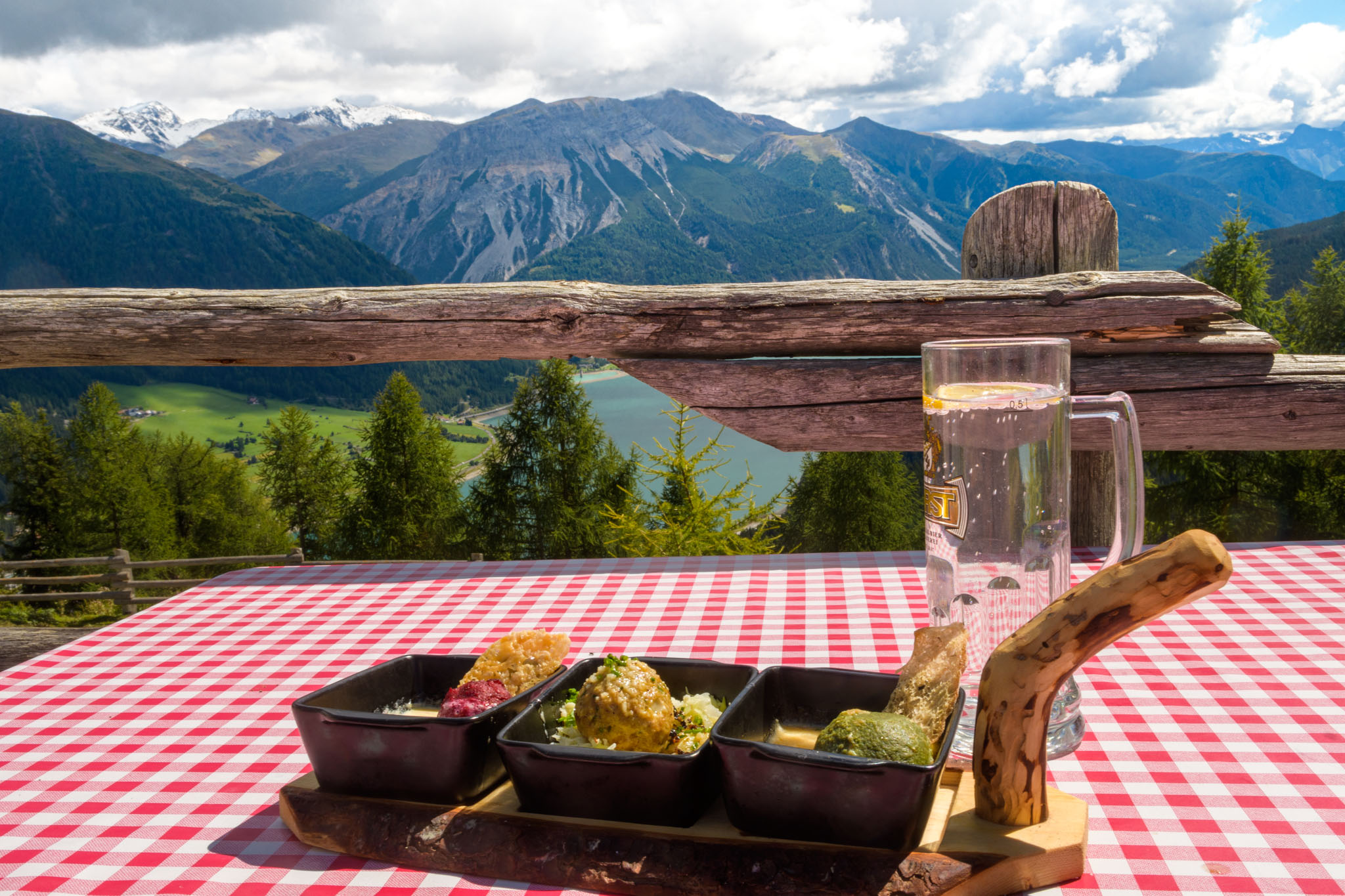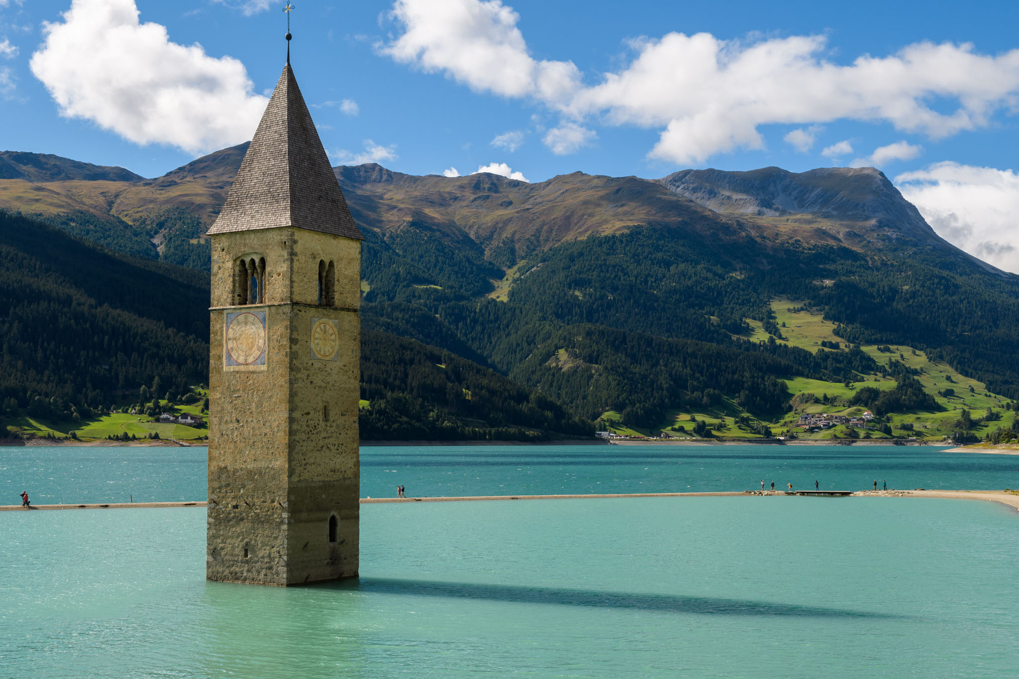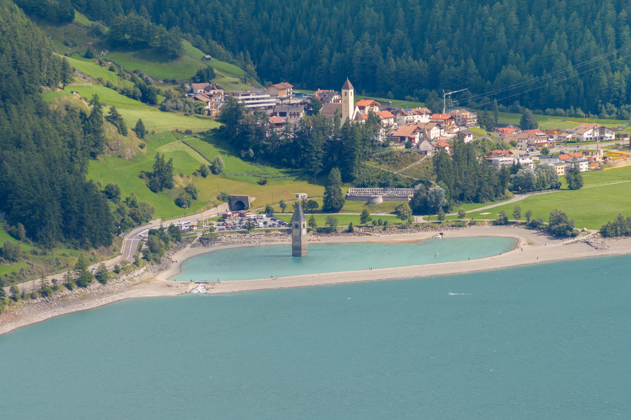 Für Dienstag, unseren ersten vollständigen Tag vor Ort, war für Süddeutschland und Österreich ziemlich viel Regen angekündigt. Also sind wir kurzerhand nach Südtirol gefahren und vom Reschensee mit seiner versunkenen Kirche auf die Reschenalm gewandert.