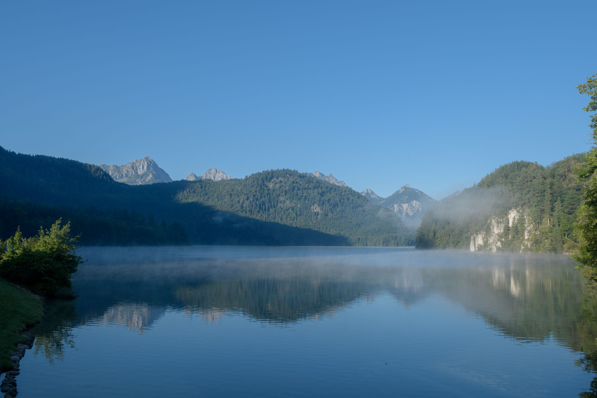 Am Donnerstag haben wir als erstes kurz den Morgennebel über dem Alpsee genossen, sind dann nach dem Frühstück noch einmal zur Sommerrodelbahn gefahren, um unser restliches Ticket abzufahren und sind dann zum Forggensee aufgebrochen und haben dort und auf dem Weg dorthin die Landschaft und den Blick auf Neuschwanstein genossen. Mittags ging es dann wieder nach Hause. Nachdem auf der Straße nach Füssen ordentlich Stau war, hat uns unsere Freundin mit dem Auto mitgenommen und in Ansbach am Bahnhof rausgelassen. Für sie war das wegen des Staus auch nicht mehr Zeitaufwand als zurück zum Bahnhof Füssen und wir alle waren – insbes. wegen des Bahnstreiks – dadurch zeitlich flexibler.