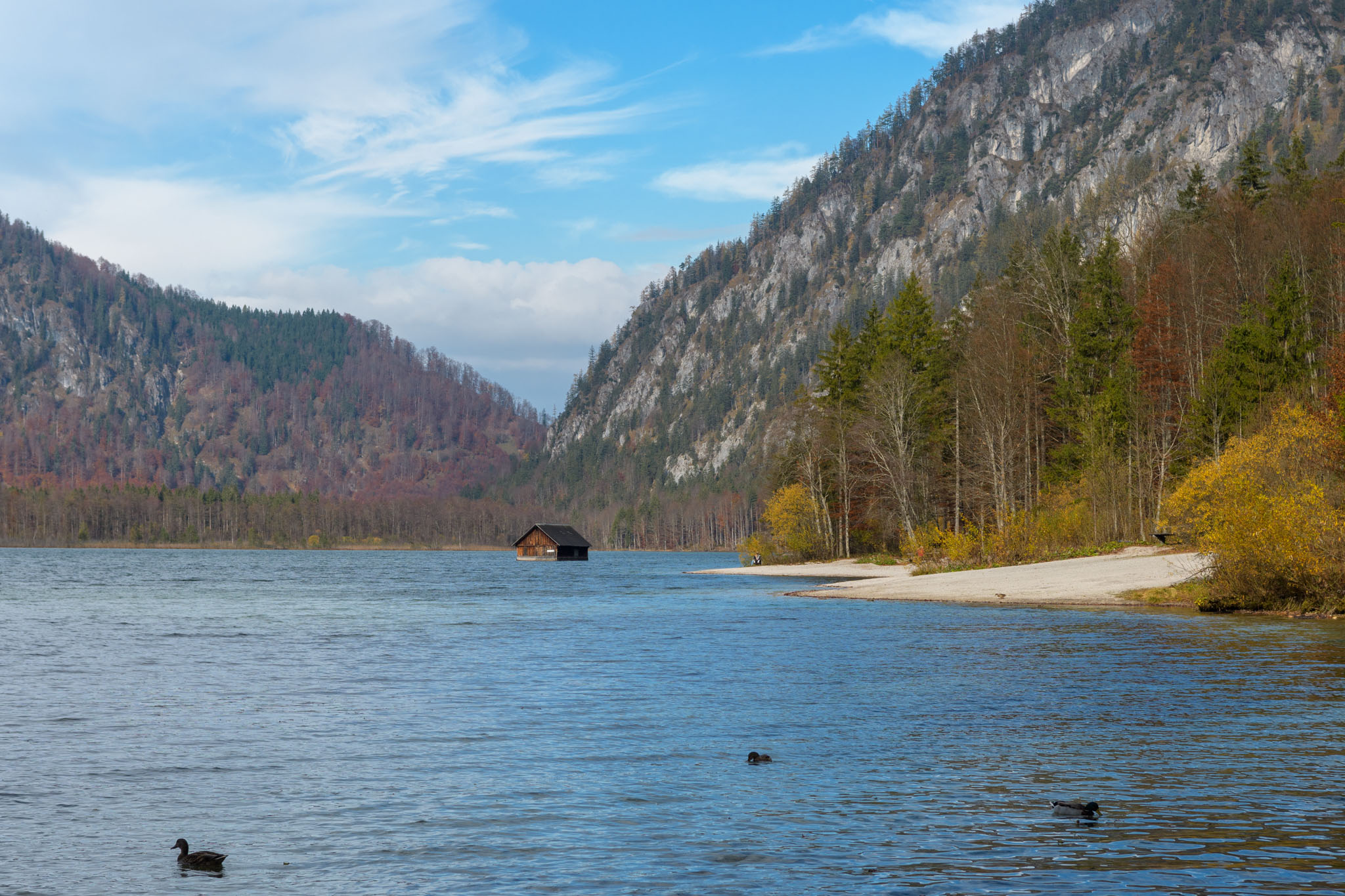 Nachdem heute Feiertag ist, wir also noch nicht wieder arbeiten mussten, und das Wetter noch einmal ganz brauchbar war, sind wir zum nächsten Ausflug aufgebrochen: zum Almsee im oberösterreichischen Teil des Salzkammerguts, am Nordrand des Toten Gebirges.