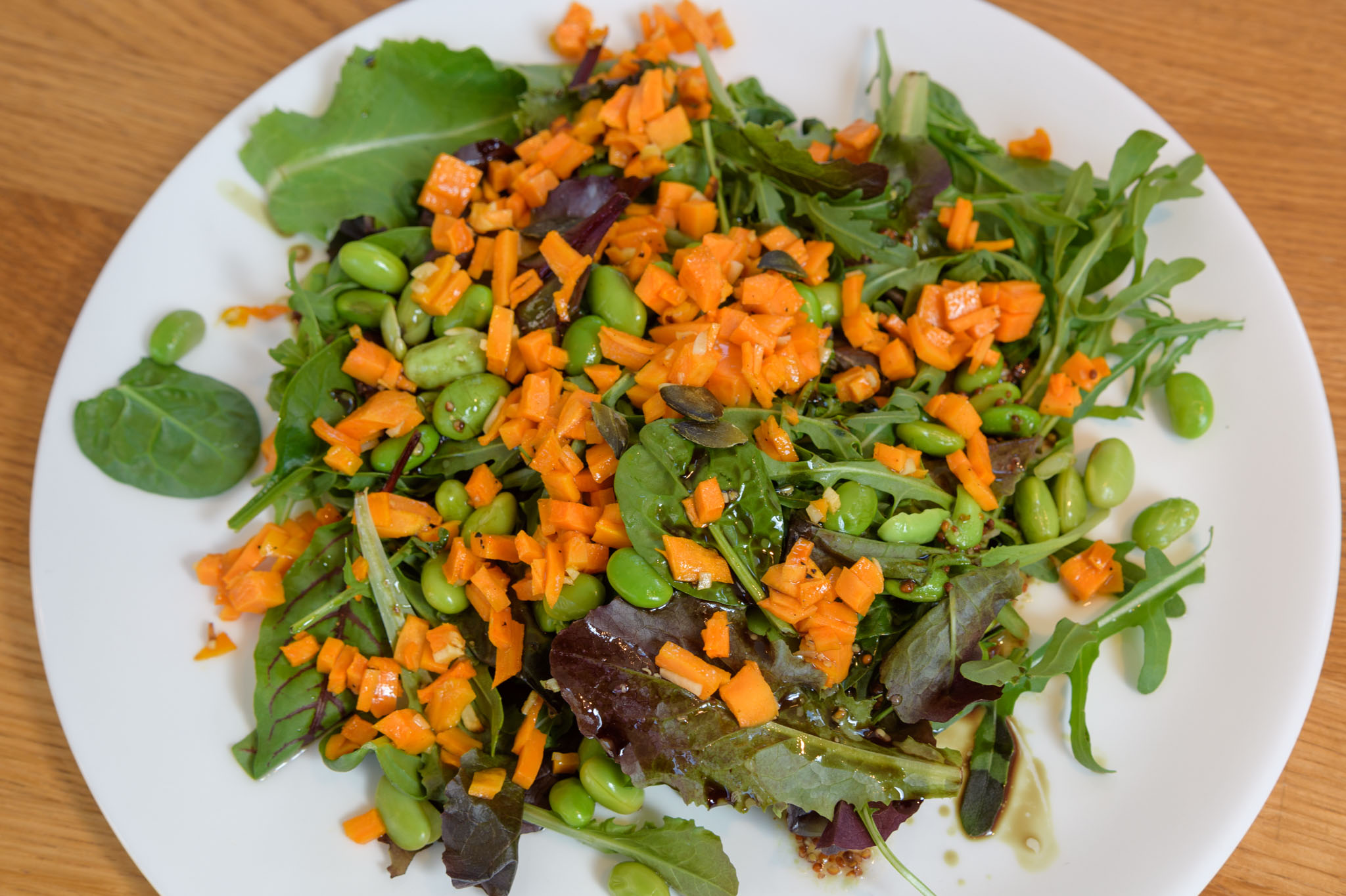- Bunter Salat mit grünen Bohnen und gebratener Süßkartoffel