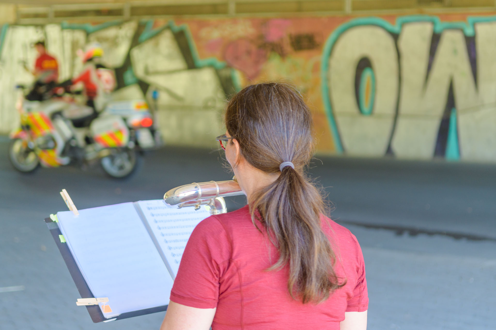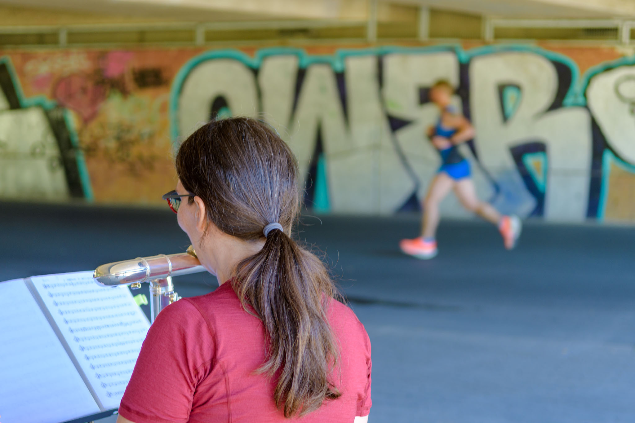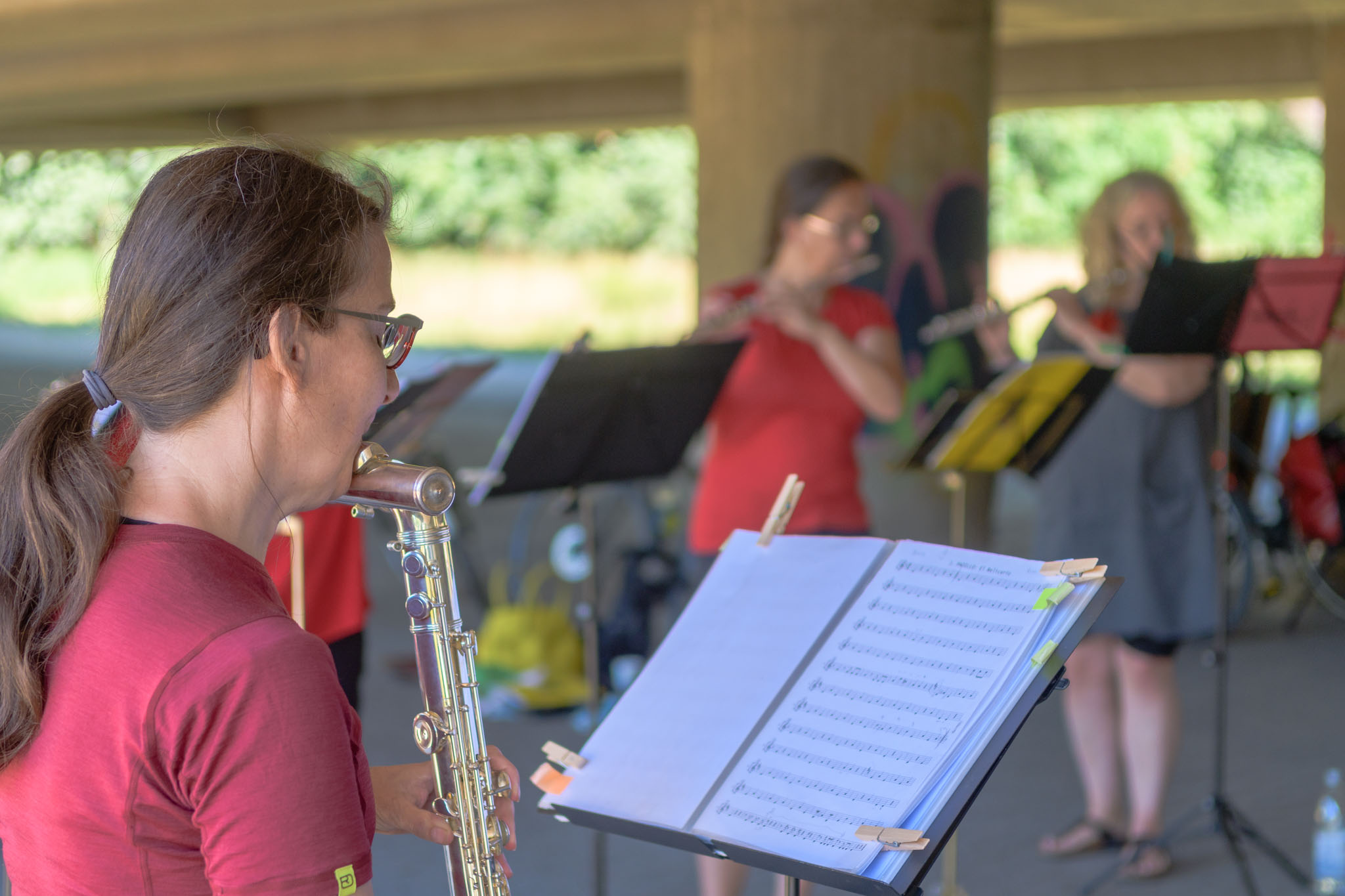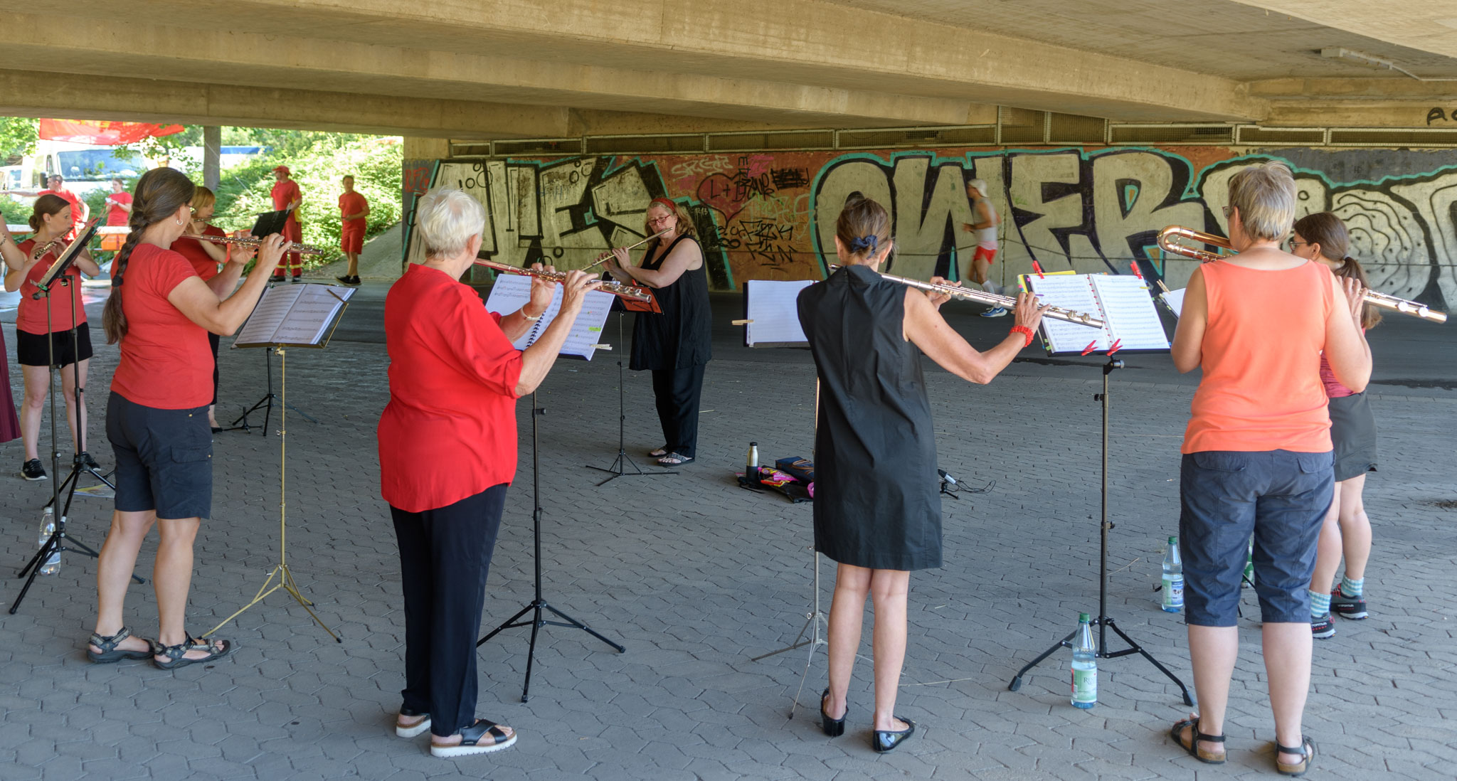 Nach zwei Jahren coronabedingter Pause fand heute wieder der Fürther Metropolmarathon statt. Entlang der Strecke stehen stets in regelmäßigen Abständen verschiedenste Bands, um mit ihrer Musik die Läuferinnen und Läufer anzufeuern. Marias Querflötenensemble Querplay stand auch dieses Jahr wieder unter der Ludwigsbrücke.
