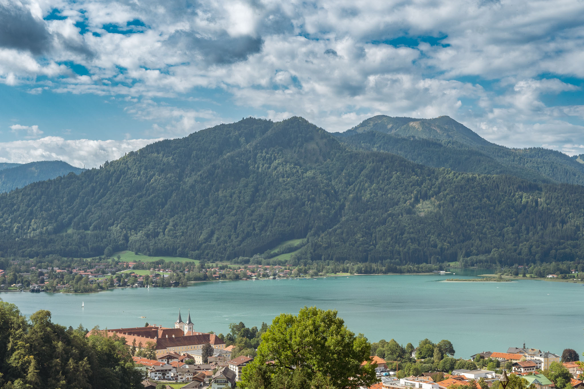 Am Sonntag war es dann wieder maximal sonnig und so ging es mit dem Schiff über den Tegernsee und zu einer kleinen Wanderung ein Stück hoch oberhalb des Ortes Tegernsee, von wo wir einen wunderschönen Blick über den See hatten.