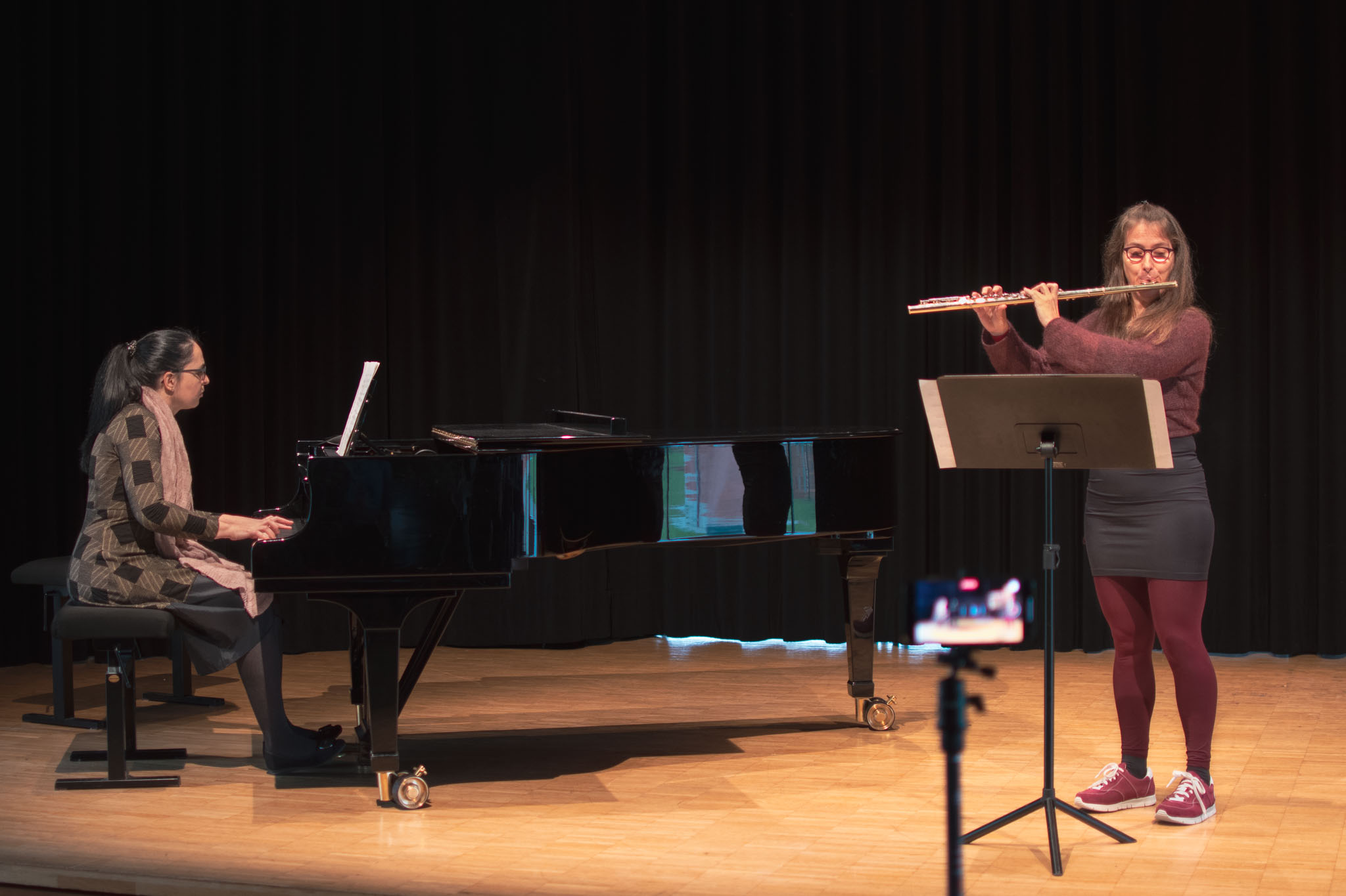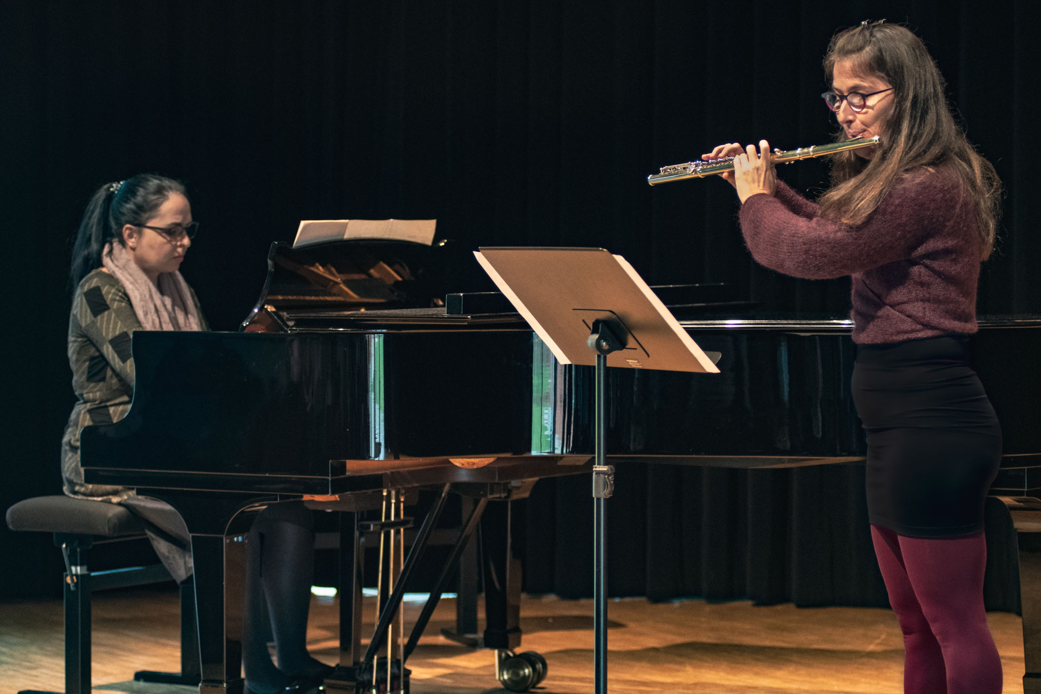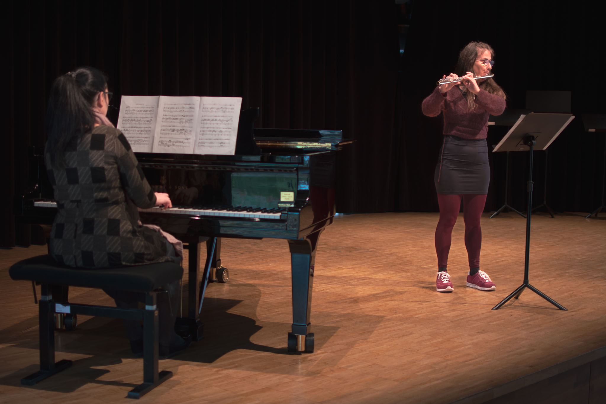 Auf der diesjährigen Klassik-Matinee in der Musikschule Fürth spielten Maria & Maria von Wolfgang Amadeus Mozart das Andante KV 315.