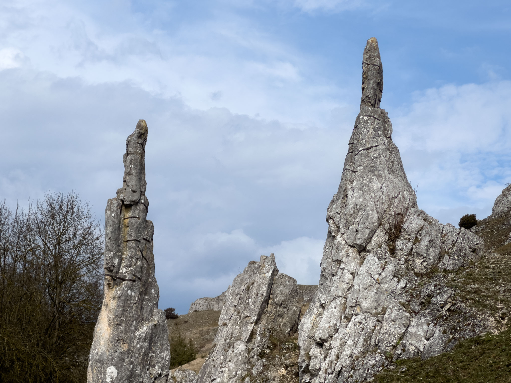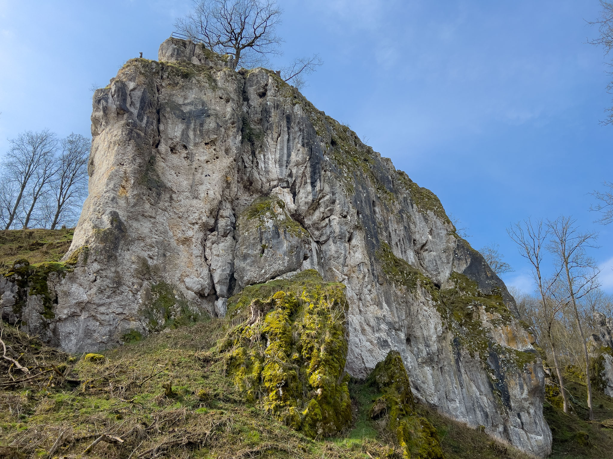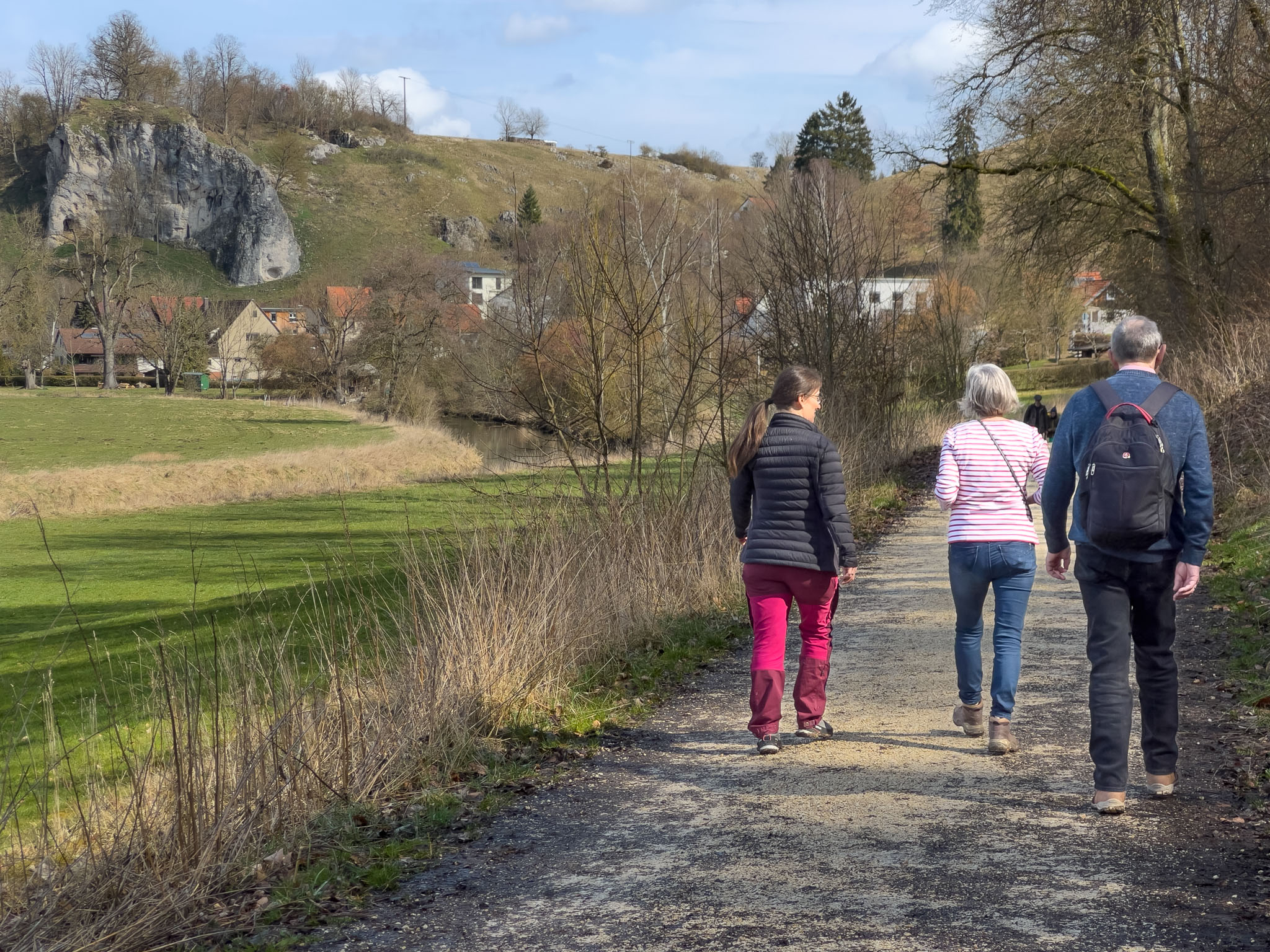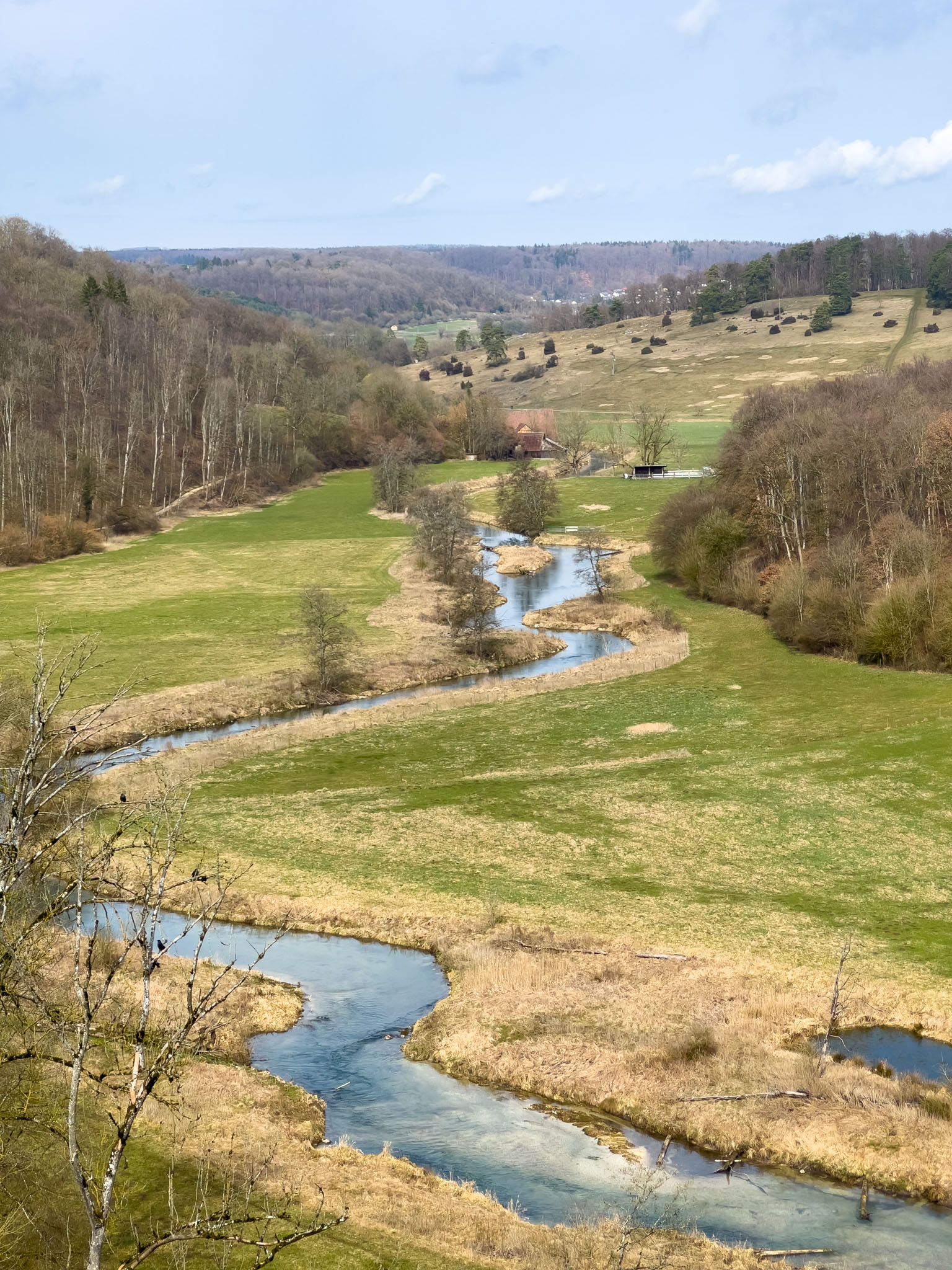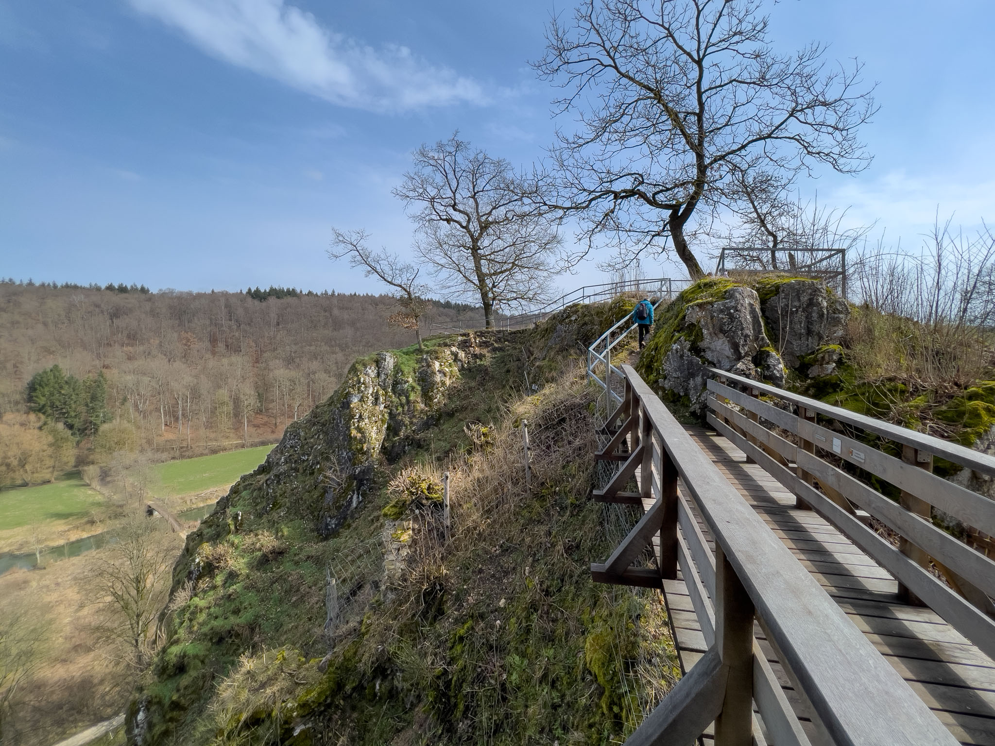 Am Sonntag sind wir dann zu einer Wanderung ab dem Kloster Anhausen durchs Eselsburger Tal entlang der Brenz und unzähliger Märzenbecher aufgebrochen, hoch zur Burg Falkenstein und weiter nach Eselsburg sowie zu den Steinernen Jungfrauen. Zurück ging es – nach einer Rast – über den Buigen, dem Höhenzug, den die Brenz hier in einer Schleife umfließen muss.