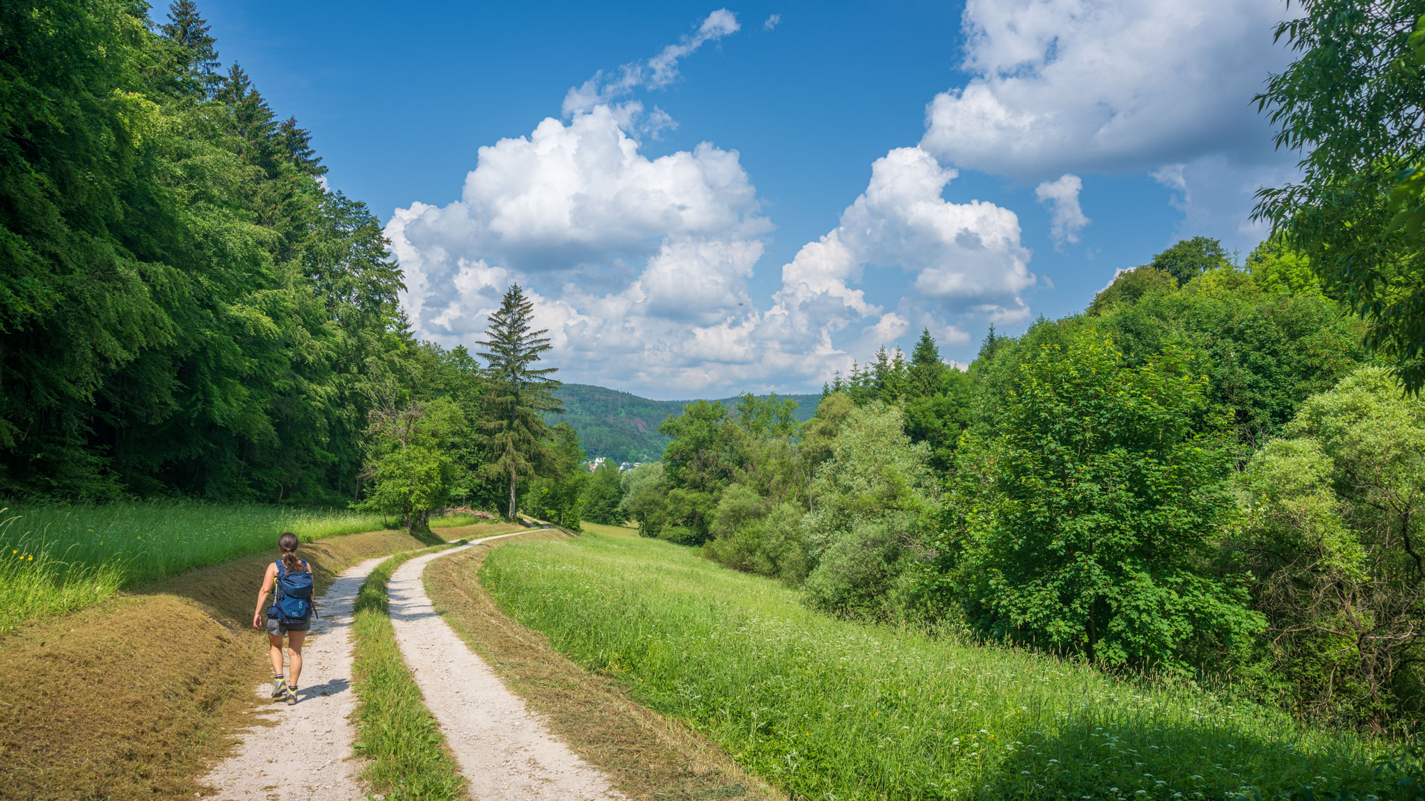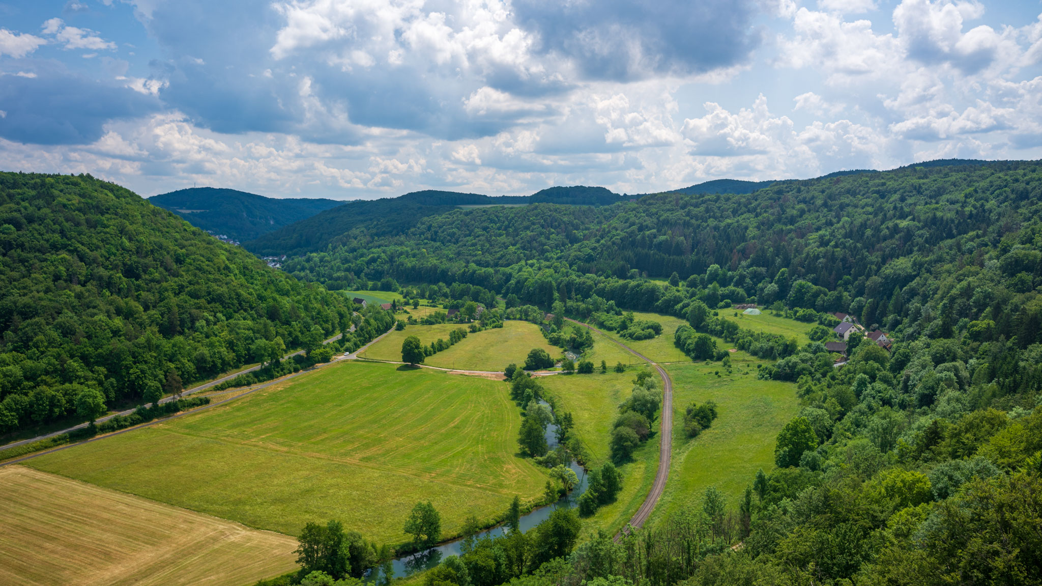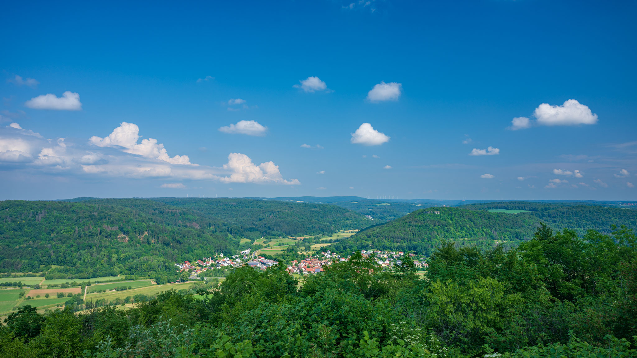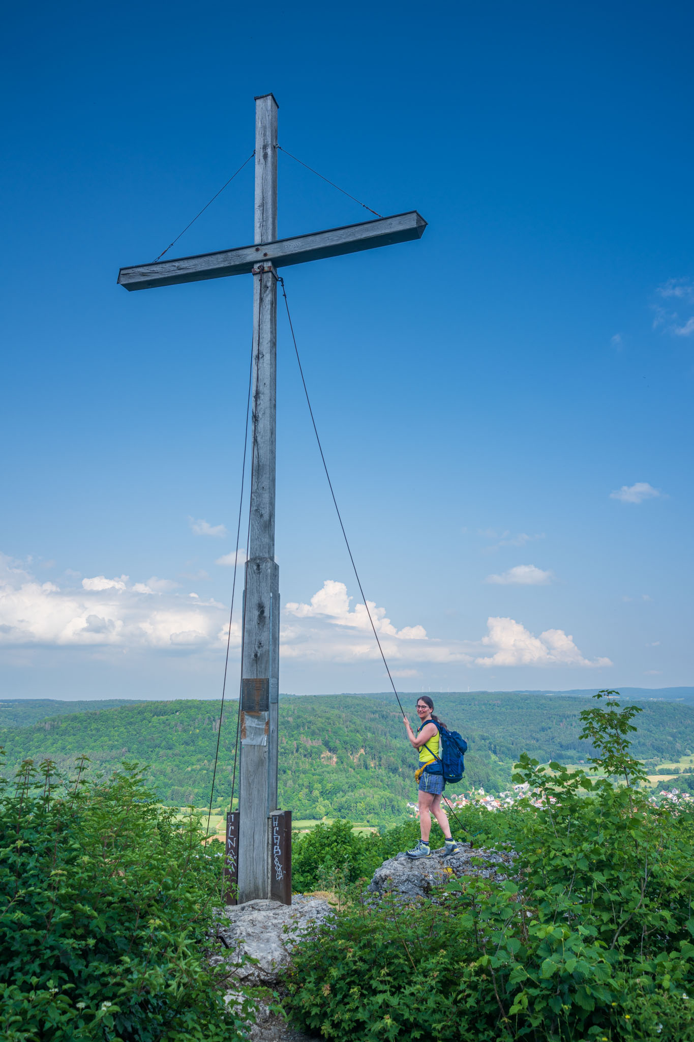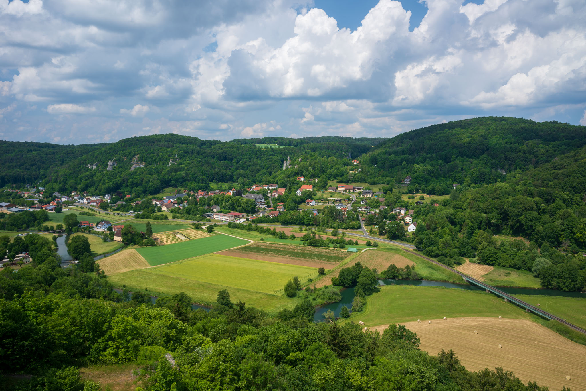 Wenn man von hinten am Zuckerhut ankommt, sieht man den Felsen nicht wirklich, dafür hat man eine tolle Aussicht über das Wiesenttal mit Blick über Ebermannstadt und Gasseldorf. Den Blick auf den Zuckerhut selbst müssen wir also in der Zukunft irgendwann einmal nachholen.