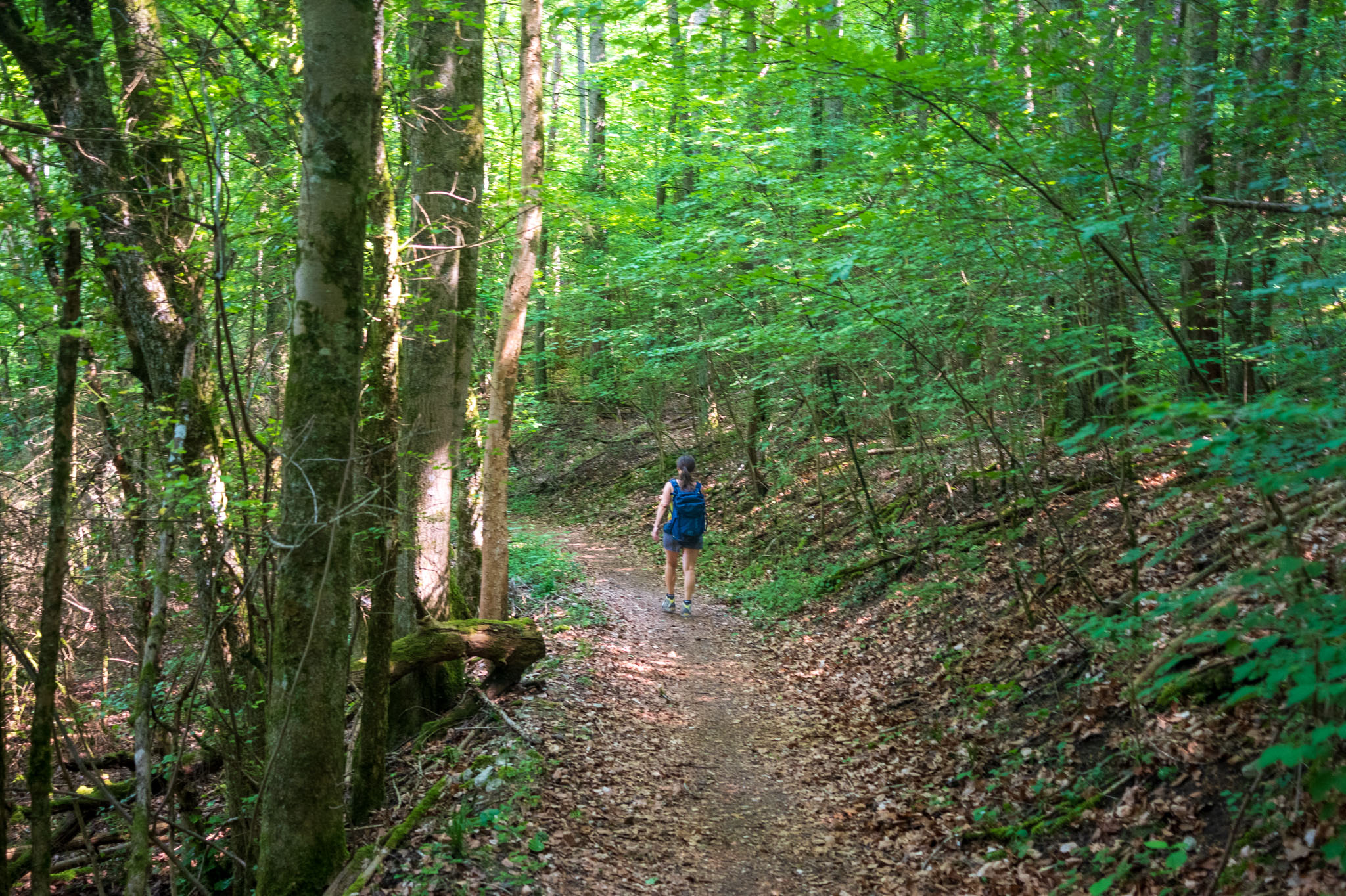 Wir hatten noch kurz überlegt, ob wir wie geplant in die Binghöhle gehen, aber da man dafür ein kurzes Stück zu Fuß gehen musste, haben wir uns sogar gegen den Besuch der an sich regengeschützten Höhle entschieden. Diese und der in der Landkarte eingezeichnete Weg zurück am westlichen Tal-Hang sind also ausgefallen. Unterwegs hat es dann auch teilweise so stark geschüttet, dass unsere Entscheidung definitiv richtig war.