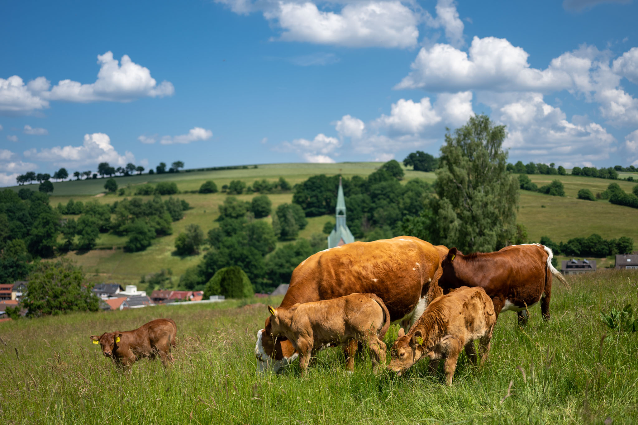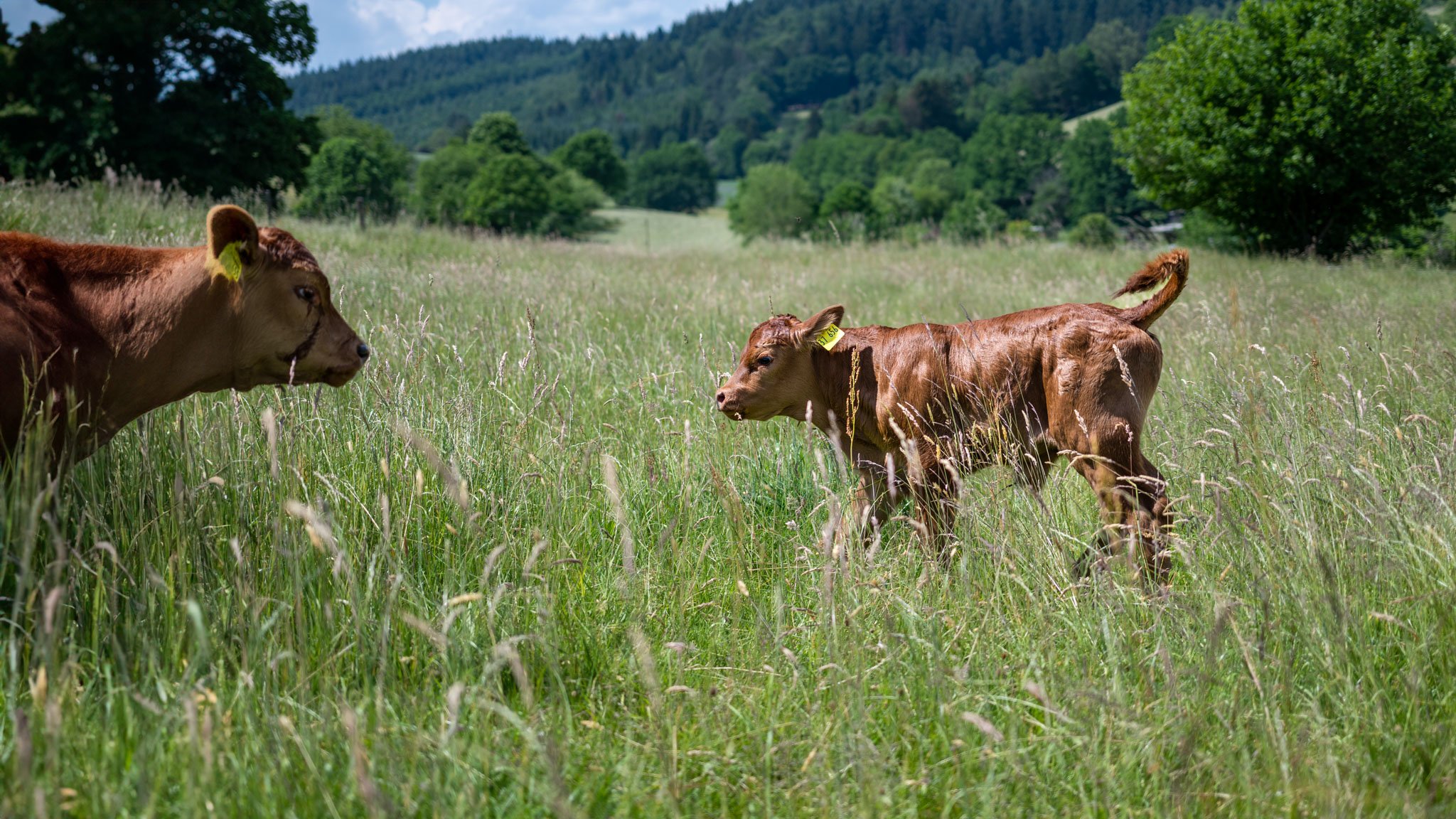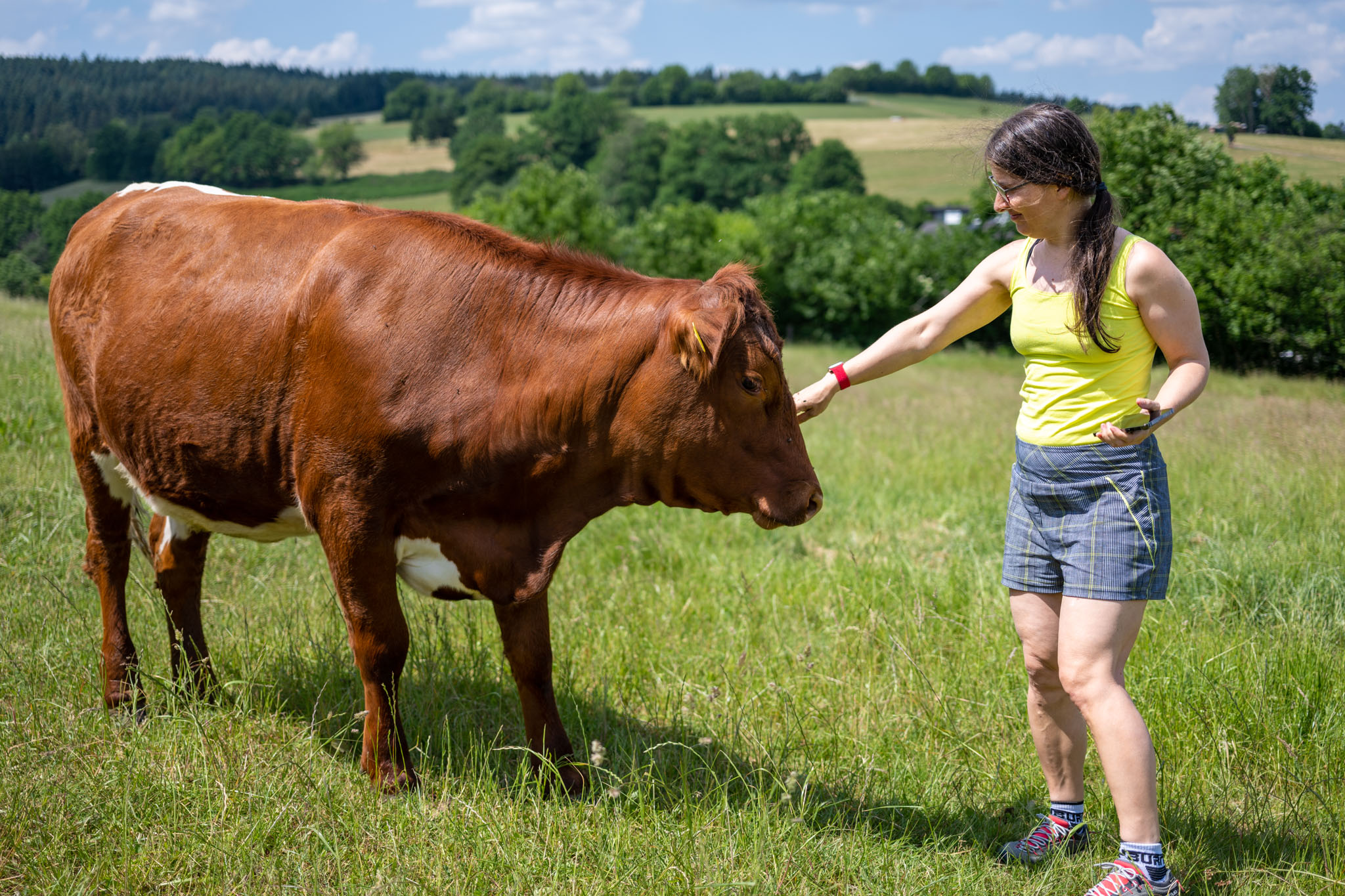 Heute haben wir mal wieder Freunde im Spessart besucht und einen entspannten Tag am, im und um den Pool in deren Garten verbracht. Zwischendurch sind wir mal ein paar Dörfer weiter zur Kuhweide eines Bekannten der beiden gefahren, haben die noch ganz jungen Kälber fotografiert und uns von den Mutterkühen anstupsen lassen. Zum Abendessen gab es dann Wild-Burger (Wildschwein und Reh), bevor wir uns in den Zug zurück nach Hause gesetzt haben.