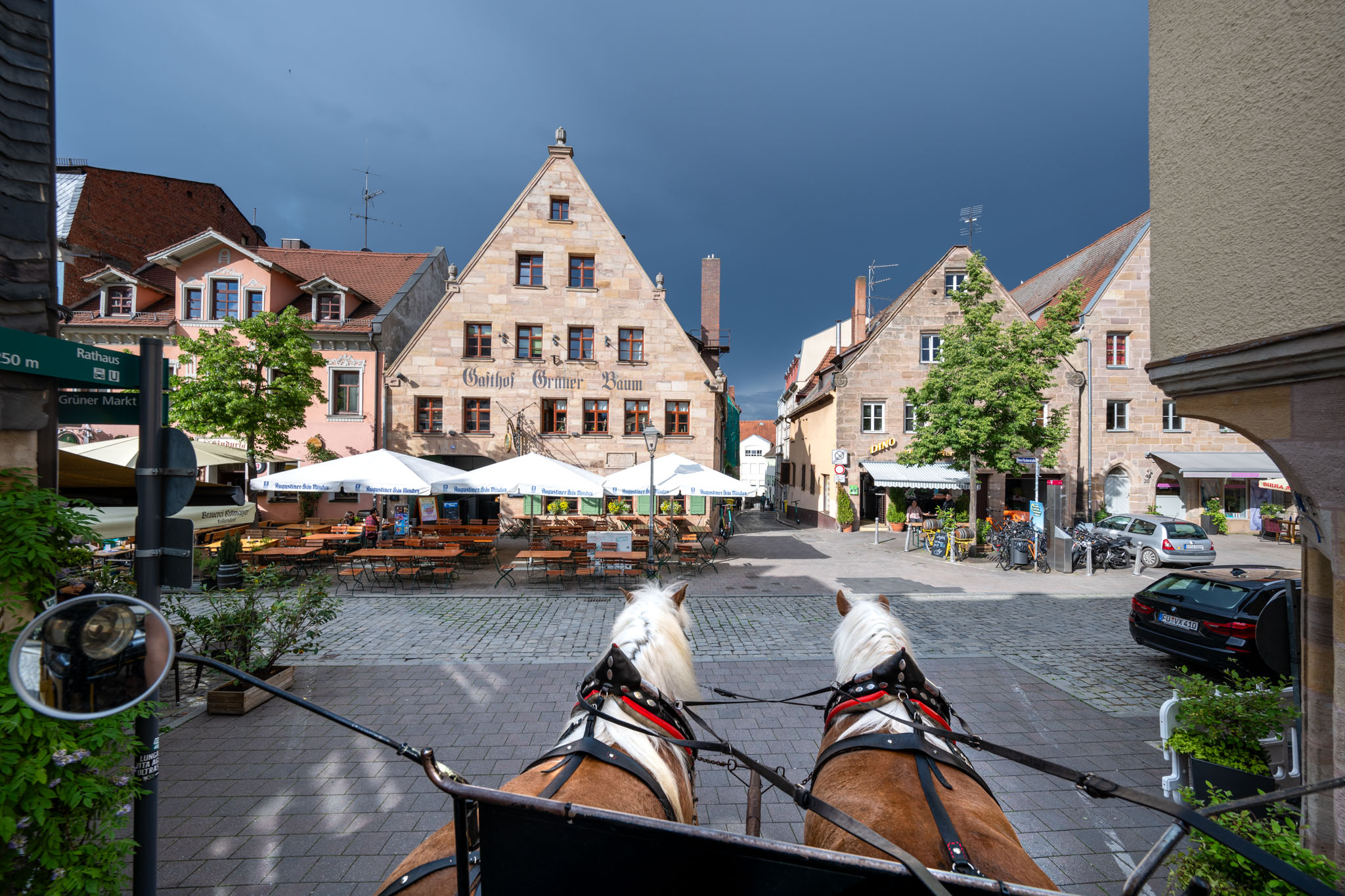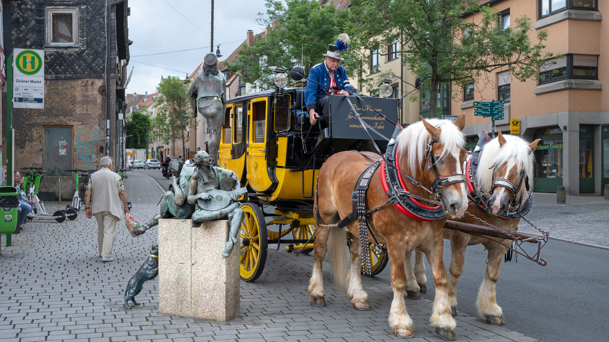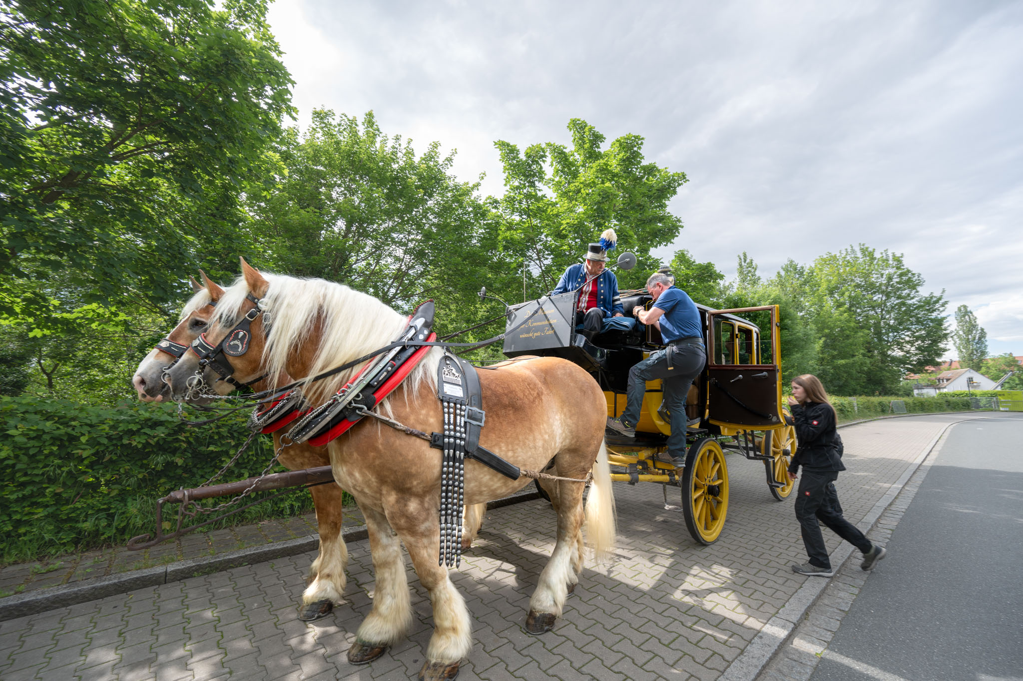 Für den 25. Mai stand da unter der Überschrift „Hoch auf dem gelben Wagen durch Fürth“ eine Rundfahrt mit der Museumspostkutsche entlang einiger Fürther Sehenswürdigkeiten durch die Innenstadt auf dem Programm.