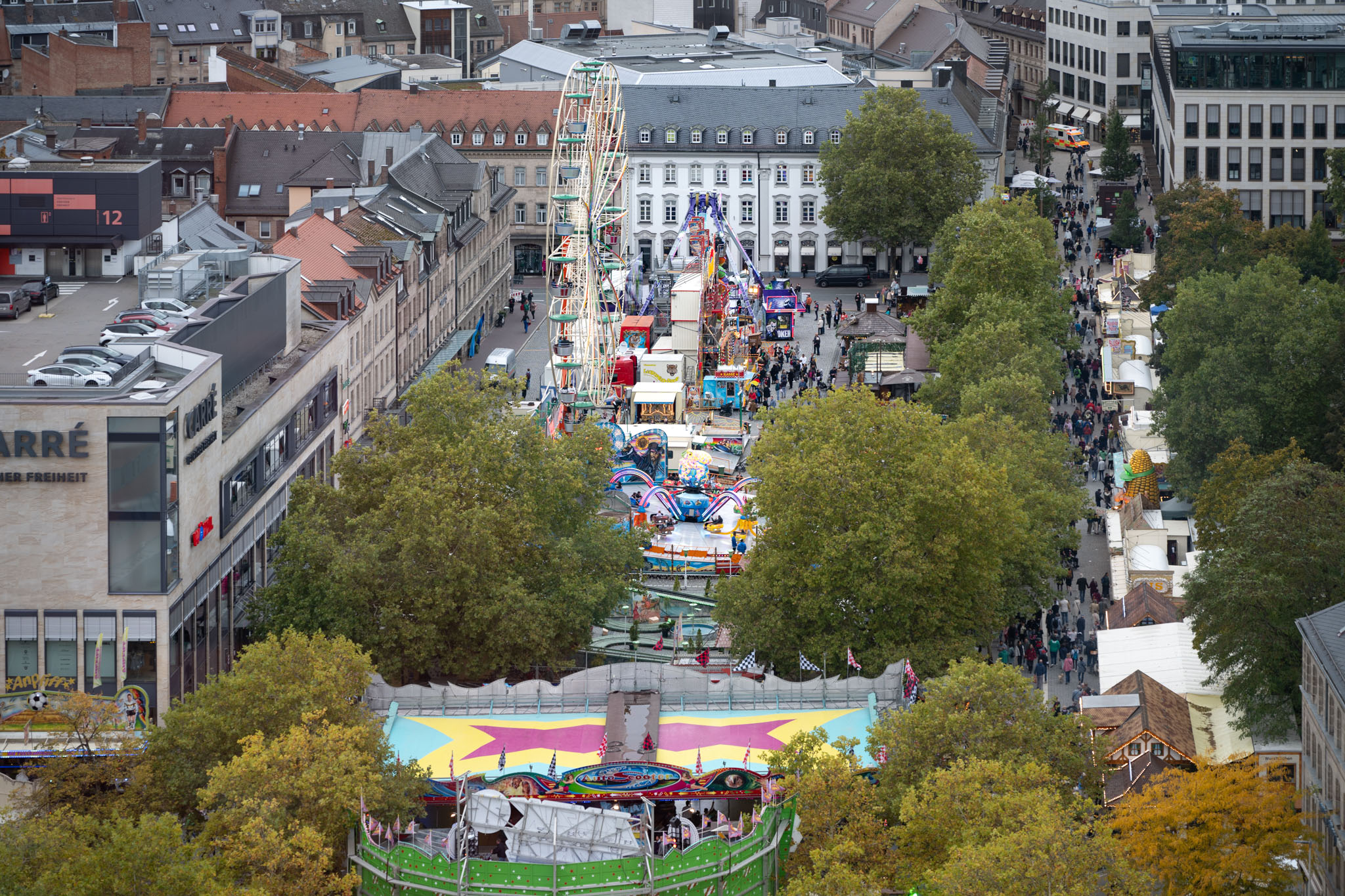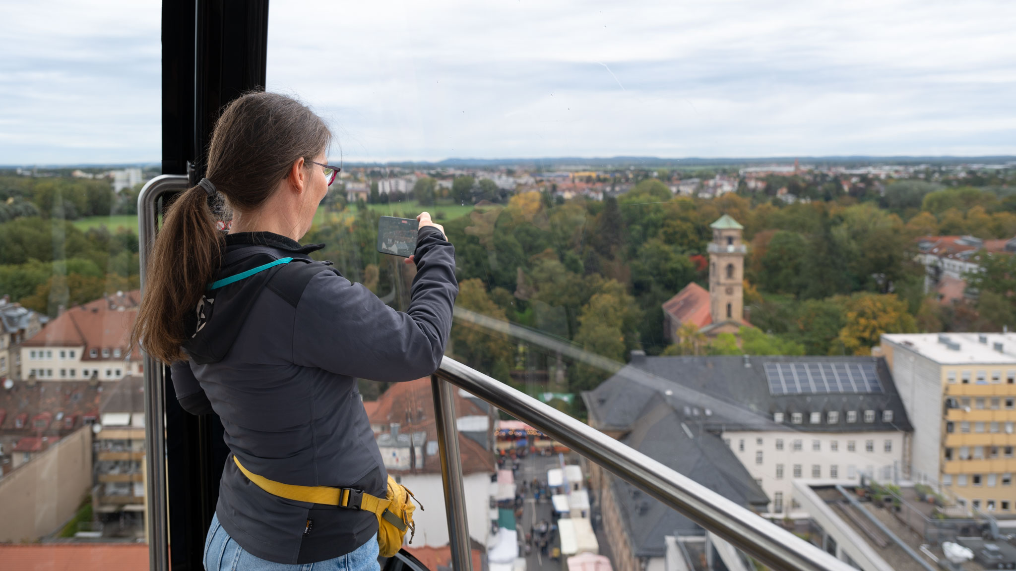 Und diesen wollten wir unbedingt ausprobieren und aus rund 70 m Höhe die Aussicht über Fürth und die Fürther Kirchweih genießen.