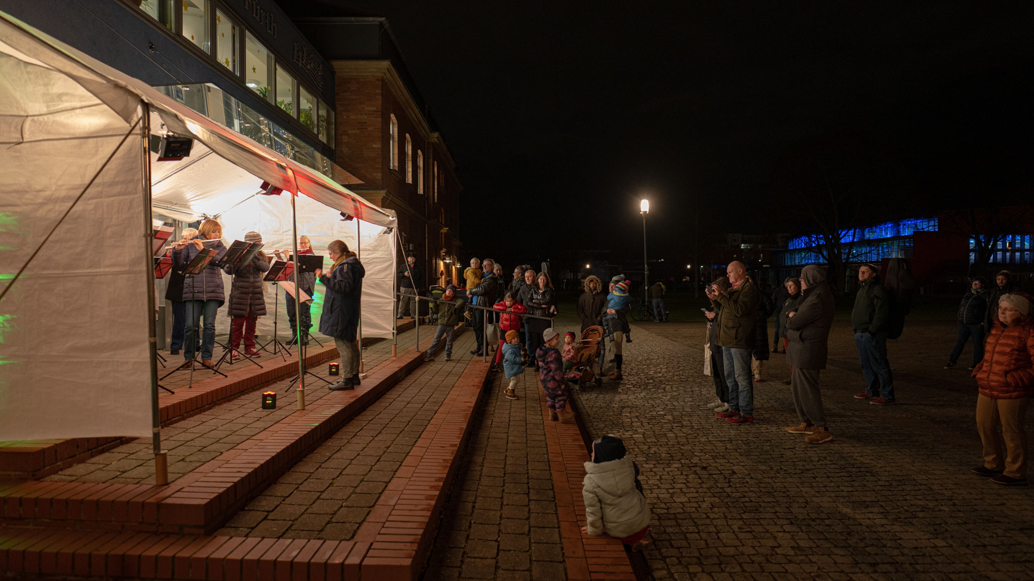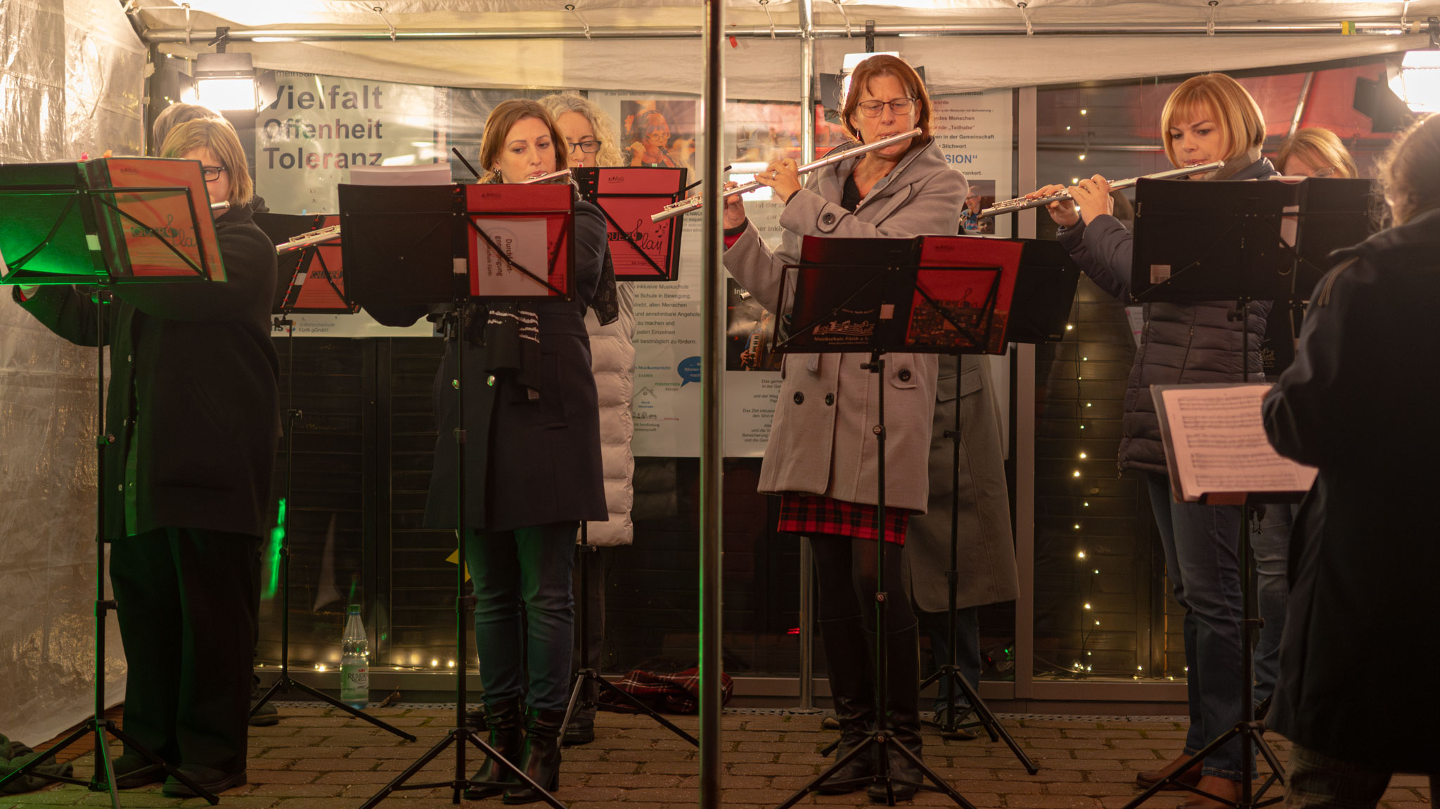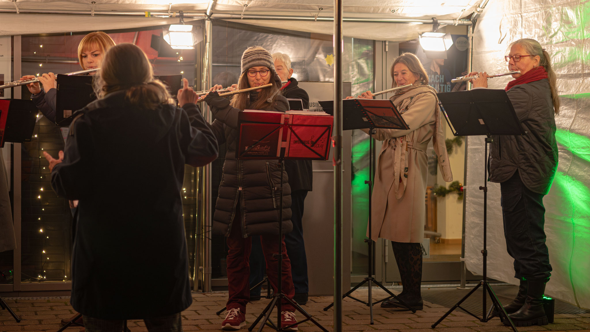 Auch dieses Jahr wieder spielt jeden Abend vom 1. bis zum 24. Dezember um 18 Uhr ein anderes Ensemble vor der Musikschule für die Spaziergängerinnen und Spaziergänger im Südstadtpark. Heute hatten als "18. Türchen" Querplay mit Maria ihren Auftritt.