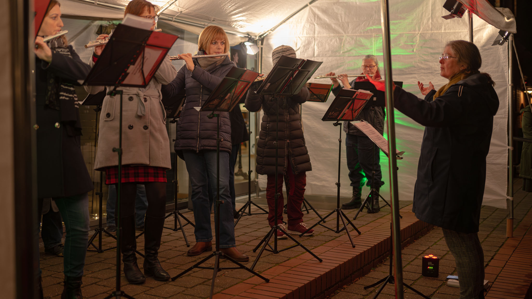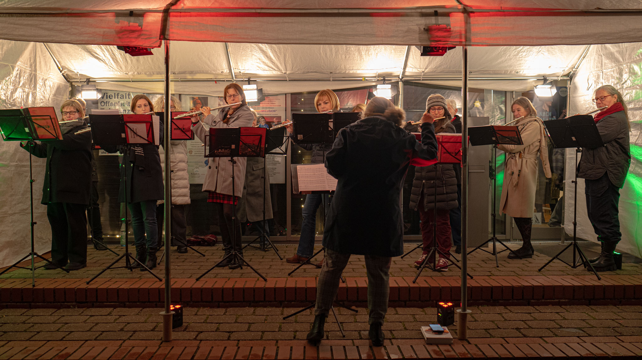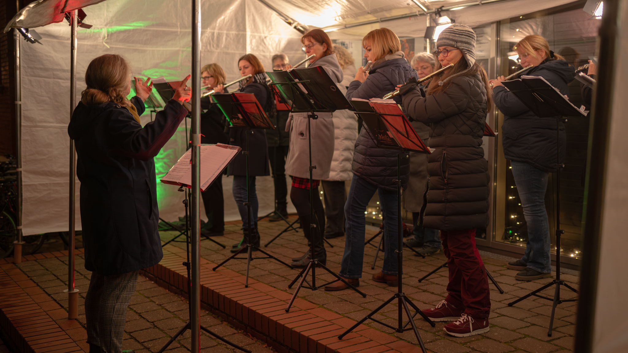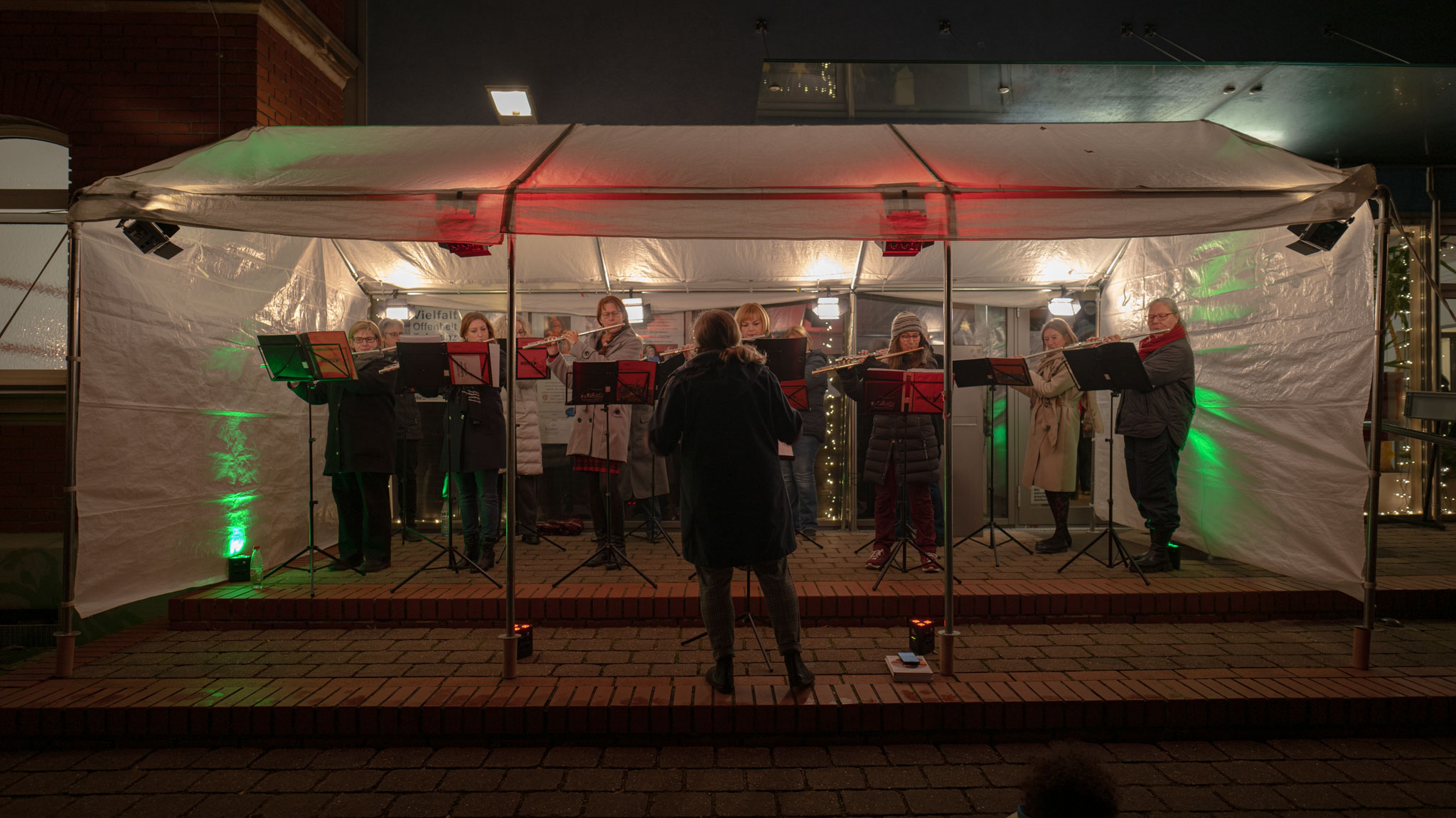 Auch dieses Jahr wieder spielt jeden Abend vom 1. bis zum 24. Dezember um 18 Uhr ein anderes Ensemble vor der Musikschule für die Spaziergängerinnen und Spaziergänger im Südstadtpark. Heute hatten als "18. Türchen" Querplay mit Maria ihren Auftritt.
