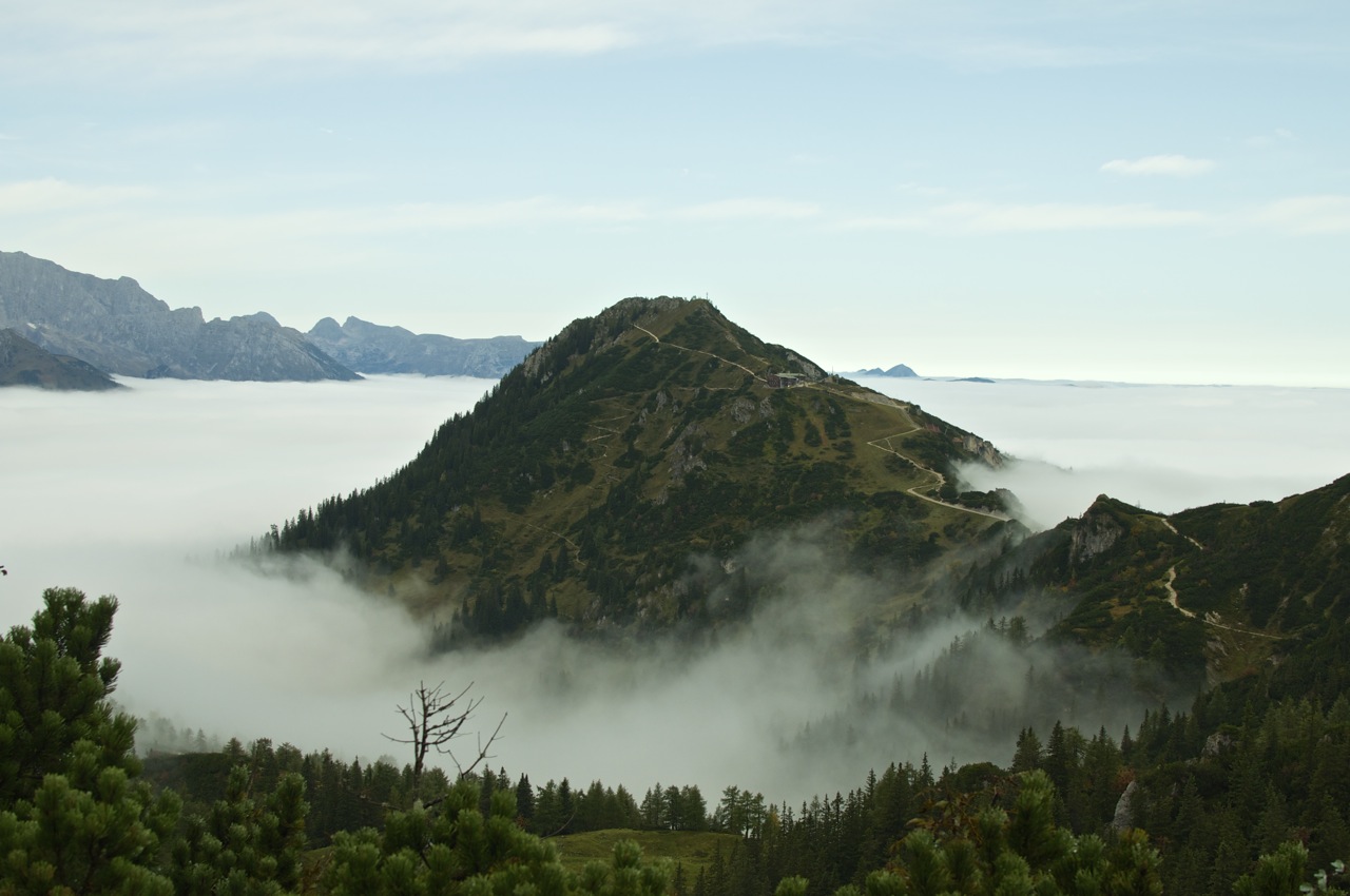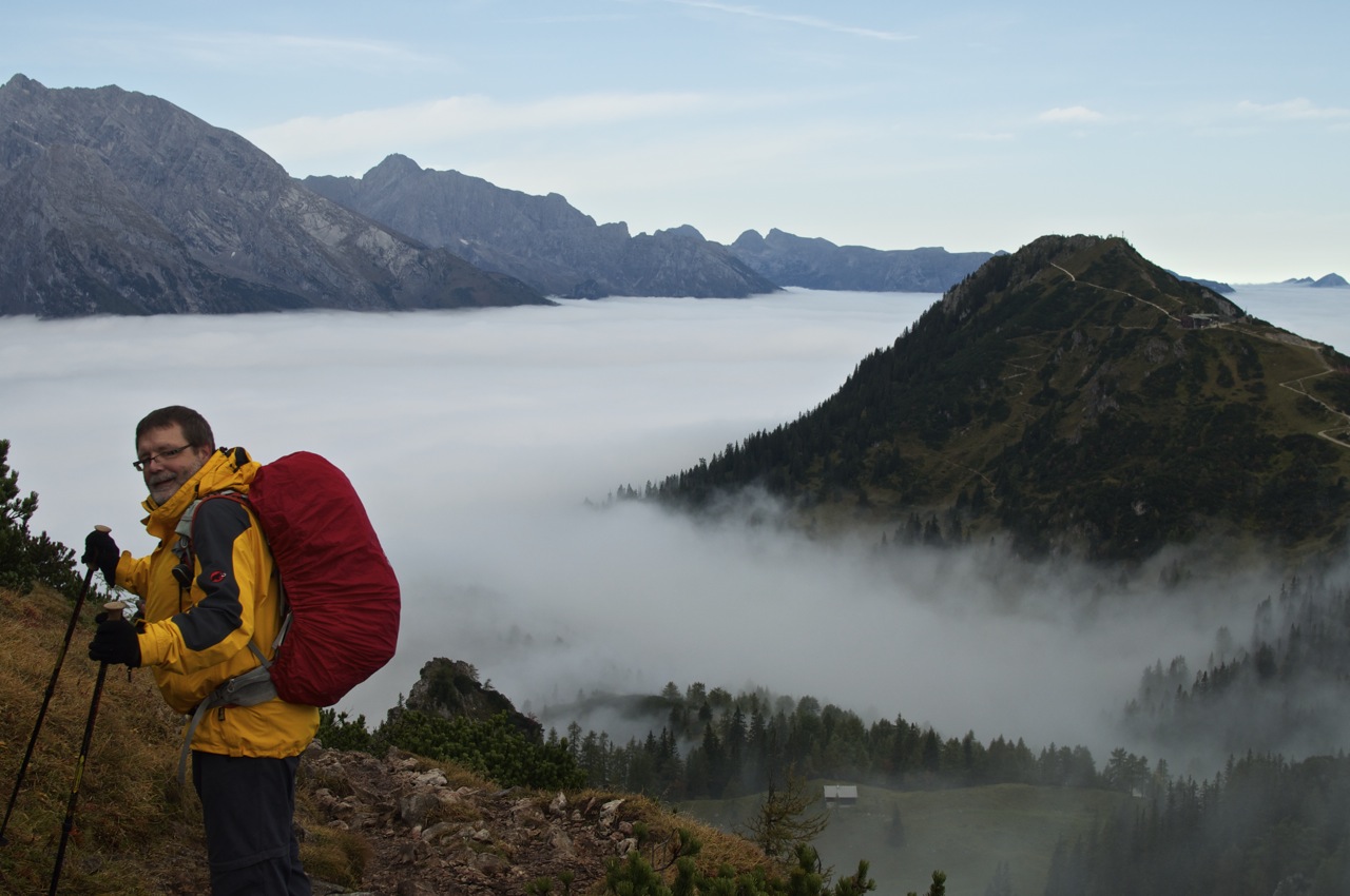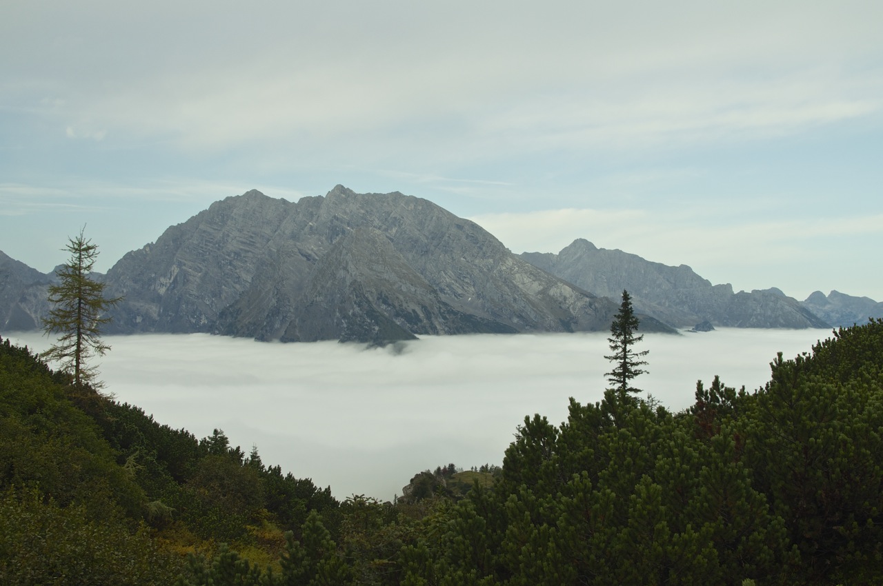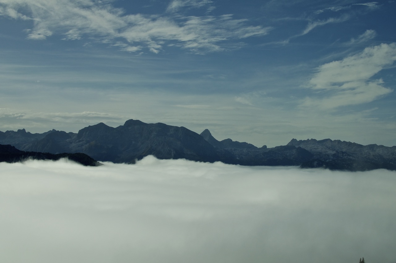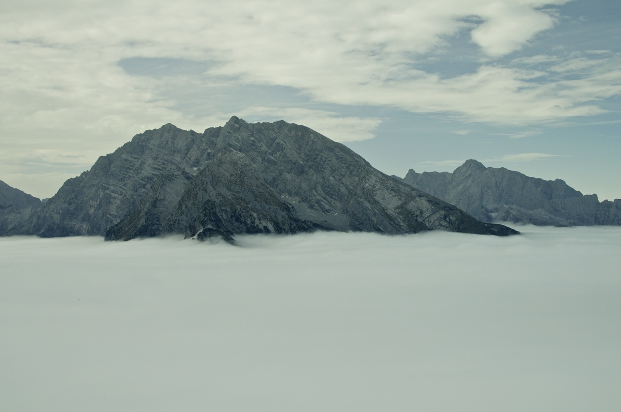 Die geplante Tour vom Schneibsteinhaus über das Hohe Brett und den Hohen Göll zum Purtschellerhaus mussten wir witterungsbedingt leider bleiben lassen, doch die Aussicht über dem Wolkenmeer war auch so beeindruckend.