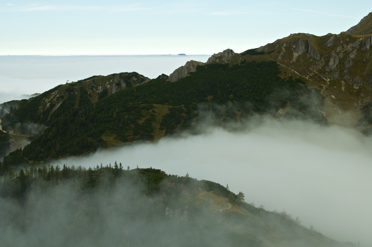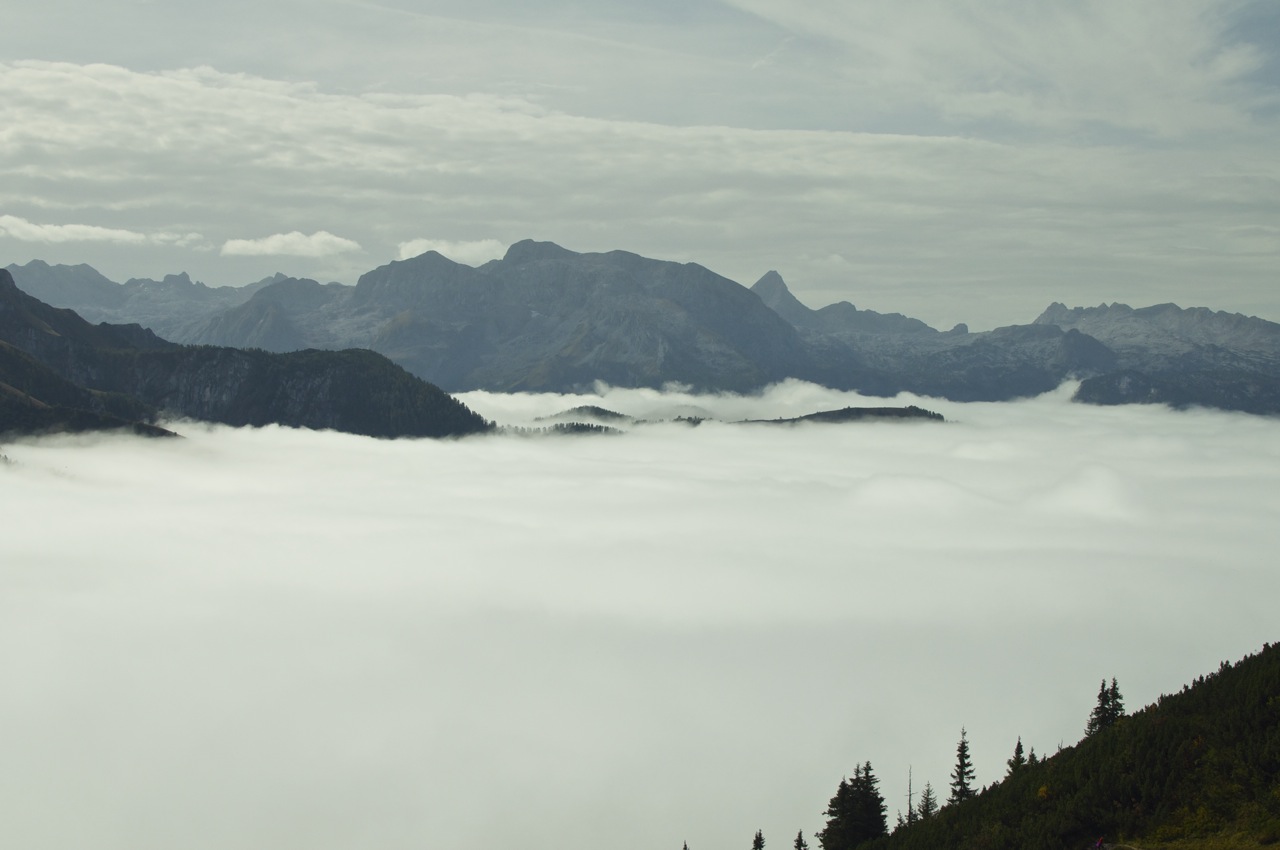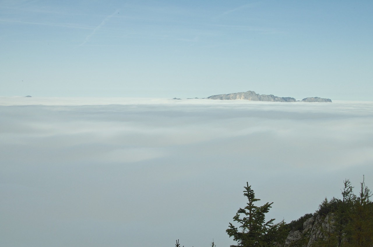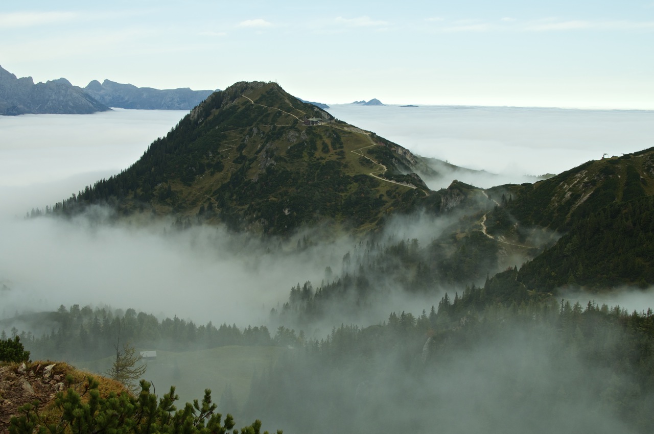 Die geplante Tour vom Schneibsteinhaus über das Hohe Brett und den Hohen Göll zum Purtschellerhaus mussten wir witterungsbedingt leider bleiben lassen, doch die Aussicht über dem Wolkenmeer war auch so beeindruckend.