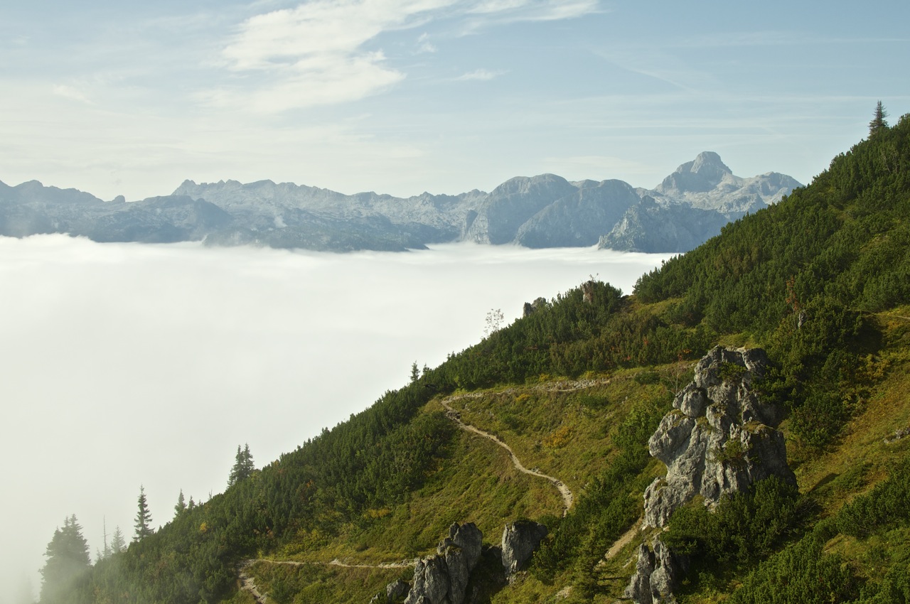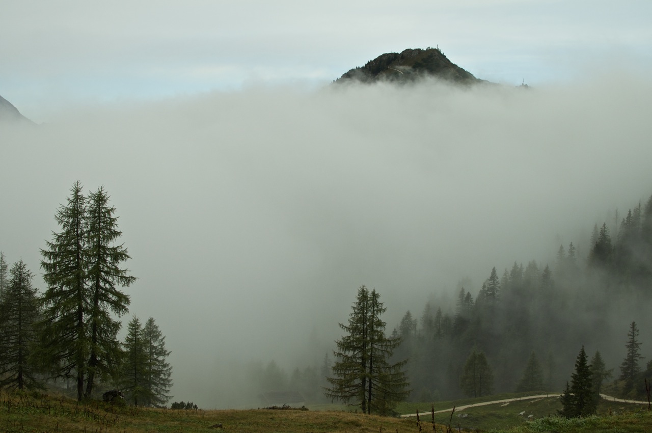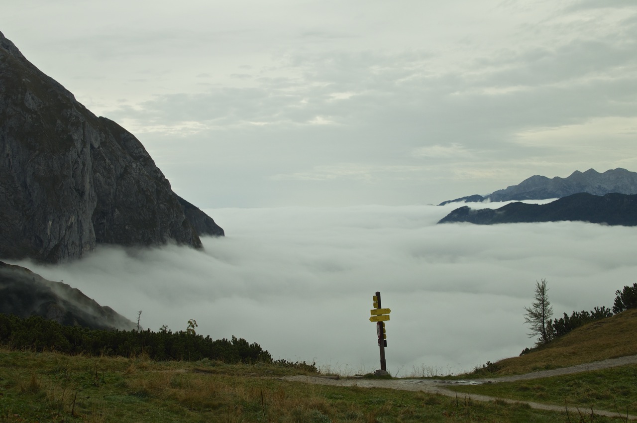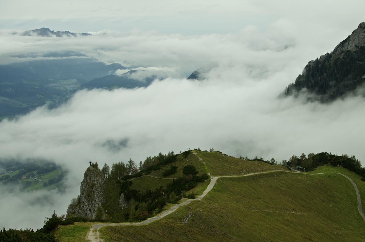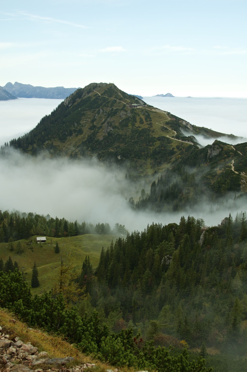 Die geplante Tour vom Schneibsteinhaus über das Hohe Brett und den Hohen Göll zum Purtschellerhaus mussten wir witterungsbedingt leider bleiben lassen, doch die Aussicht über dem Wolkenmeer war auch so beeindruckend.