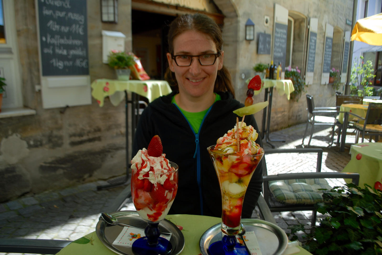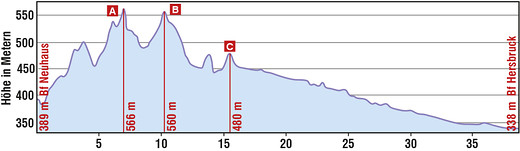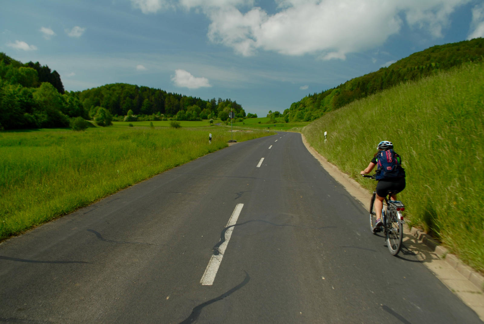 So war die heutige Etappe auch als Königsetappe der Tour de Franconie ausgewiesen, wobei wir beide die sechste Etappe vom vergangenen Sonntag anstrengender empfanden. Heute waren es schlicht und einfach 150 Höhenmeter weniger, 13 km kürzer und vor allem 5° kälter ("nur" 25 statt 30 °C). Etwas an Kondition musste man bei den Anstiegen gleich am Anfang der Tour aber trotzdem mitbringen.