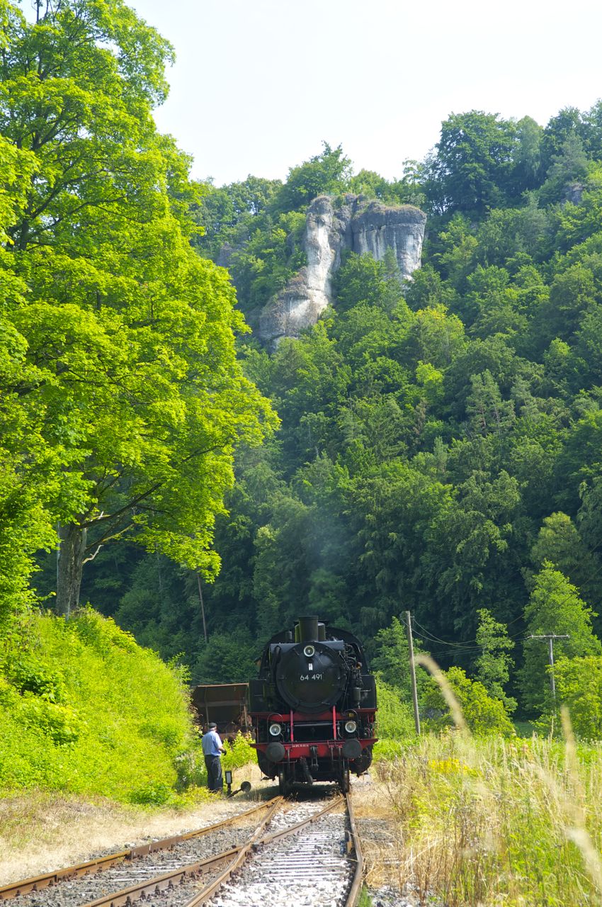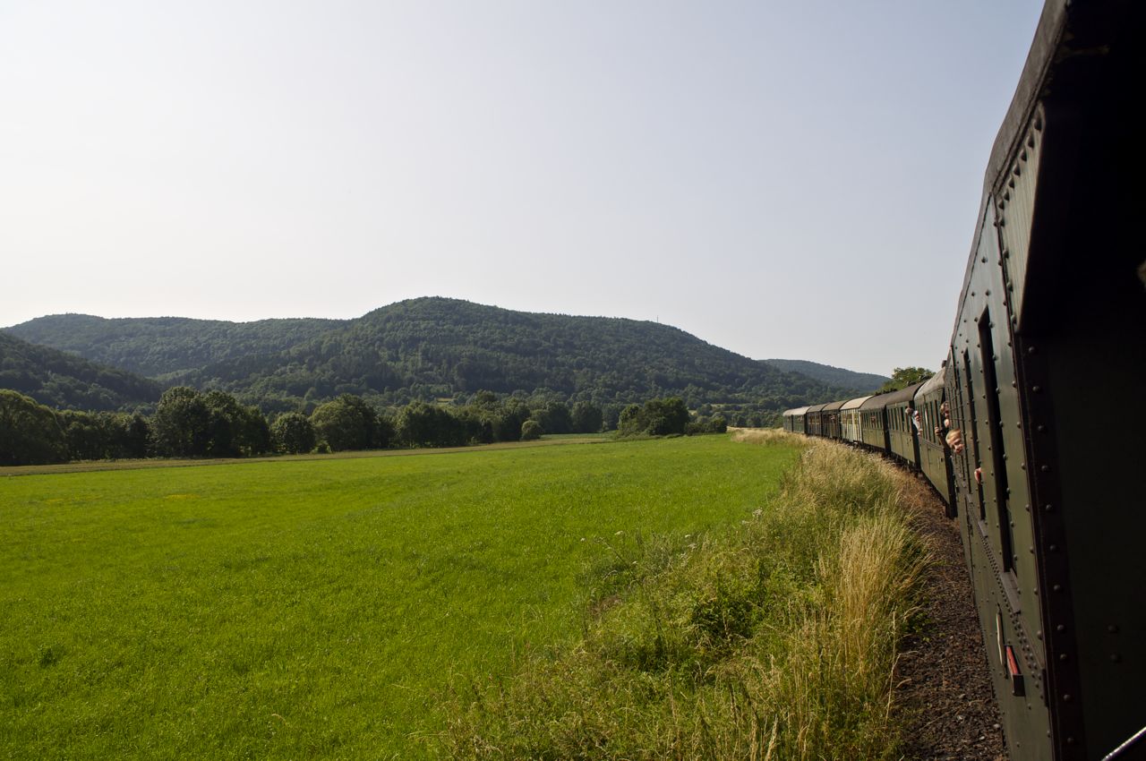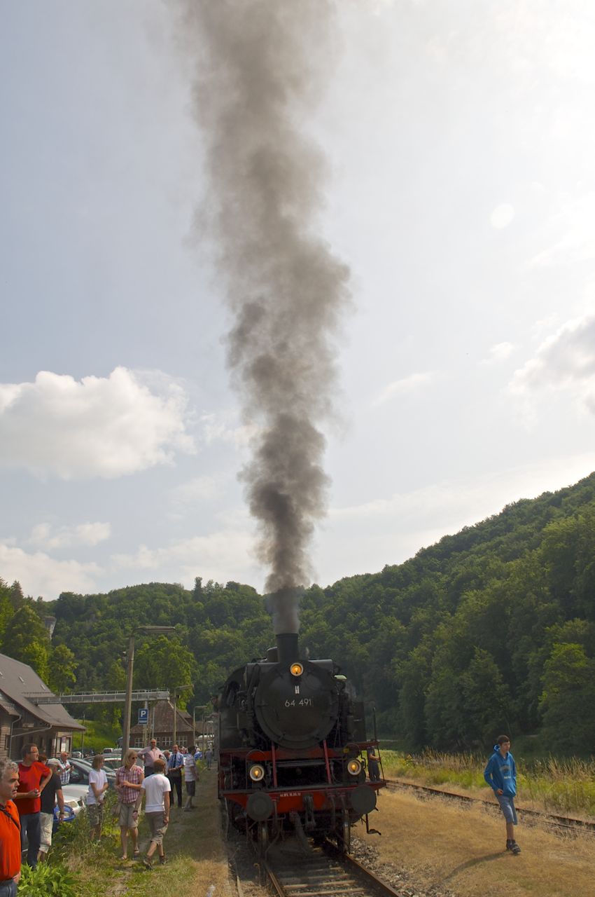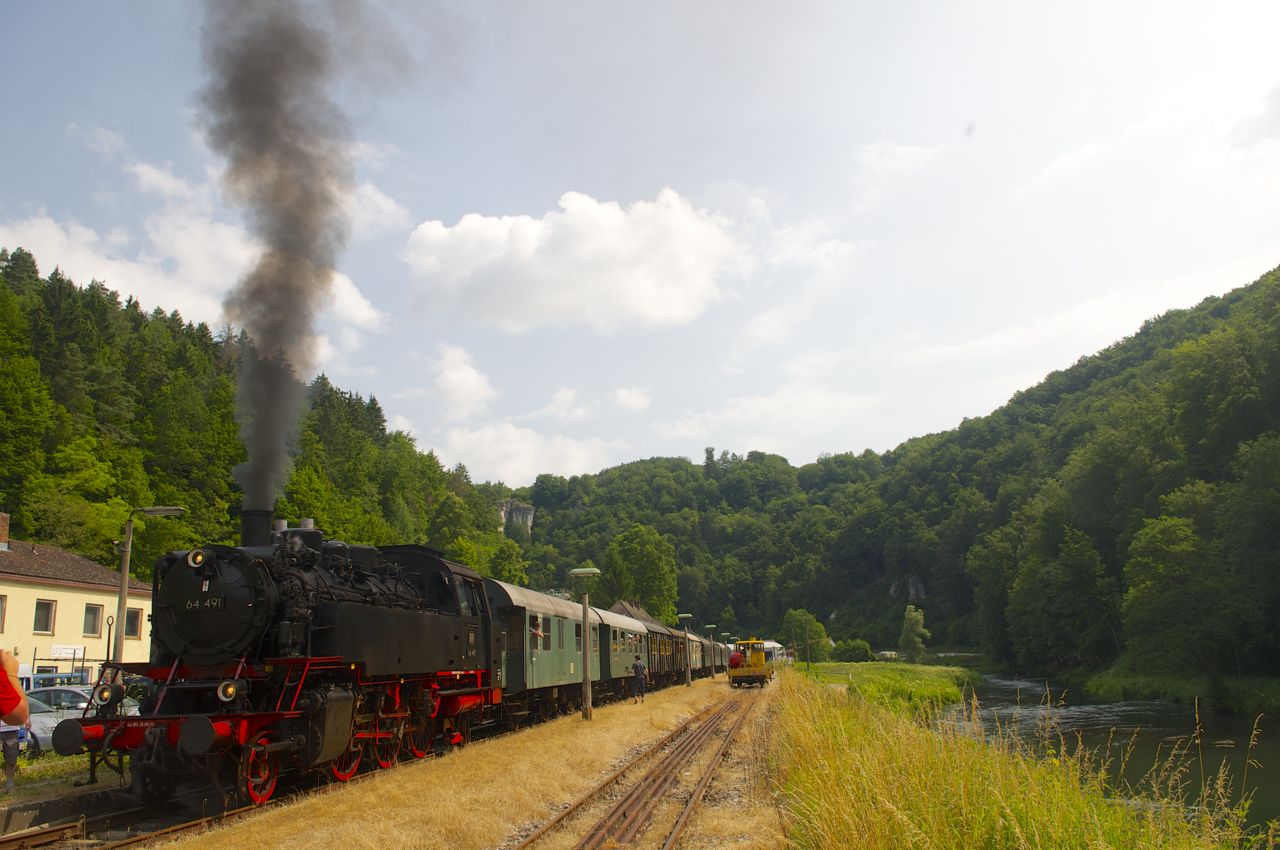 Heute ging es mit der "Dampfbahn Fränkische Schweiz" von Ebermannstadt nach Behringersmühle, zu Fuß hinauf nach Gößweinstein, mit einer historischen Diesellok wieder zurück nach Ebermannstadt und dort gab es auf dem Bahnhofsfest noch ein paar Oldtimer zu bewundern.