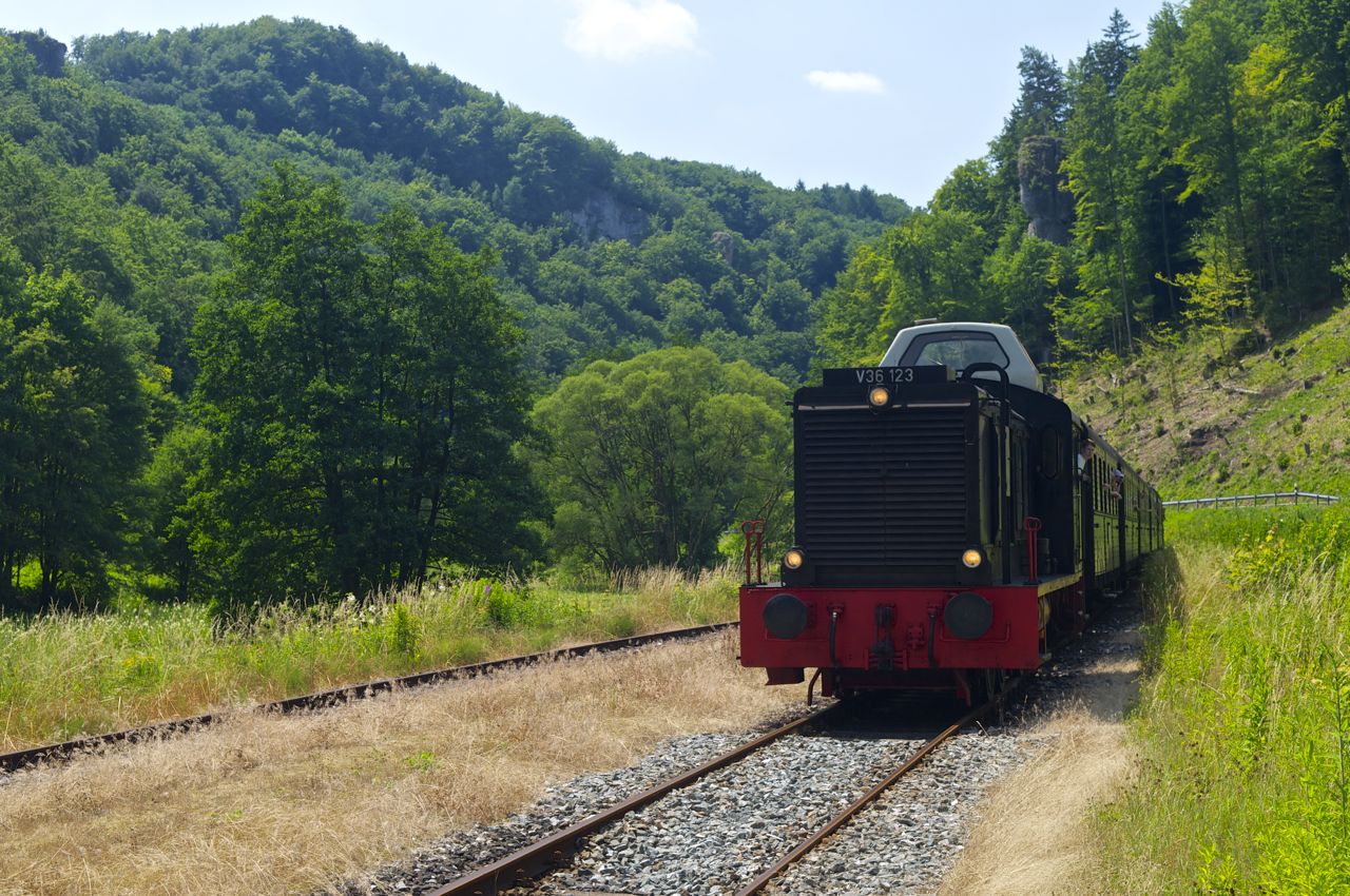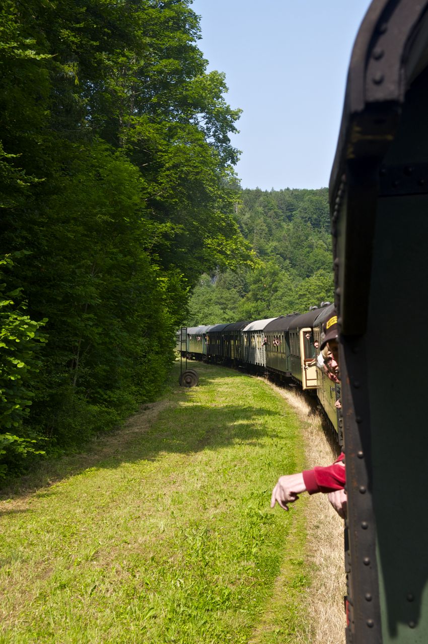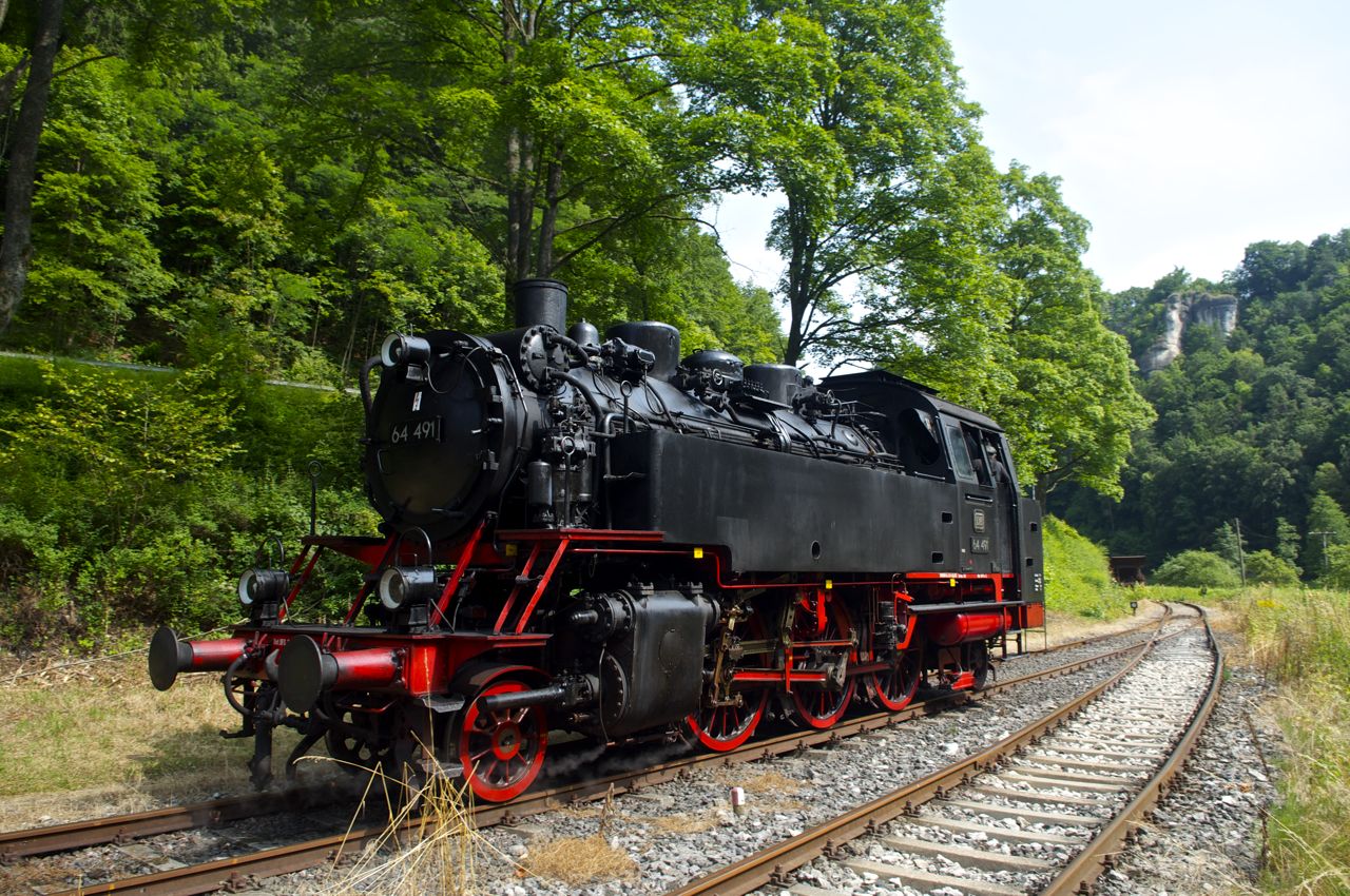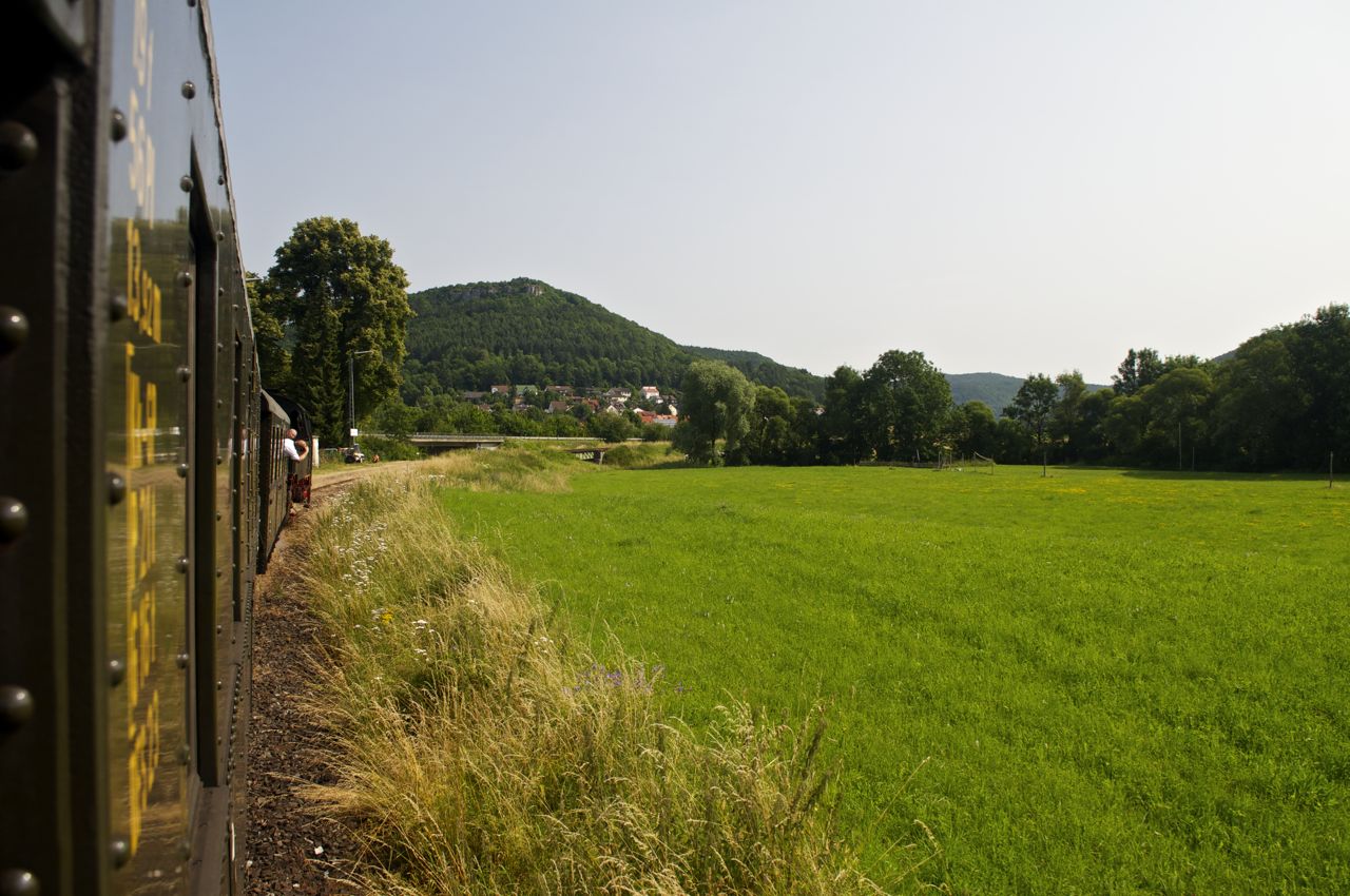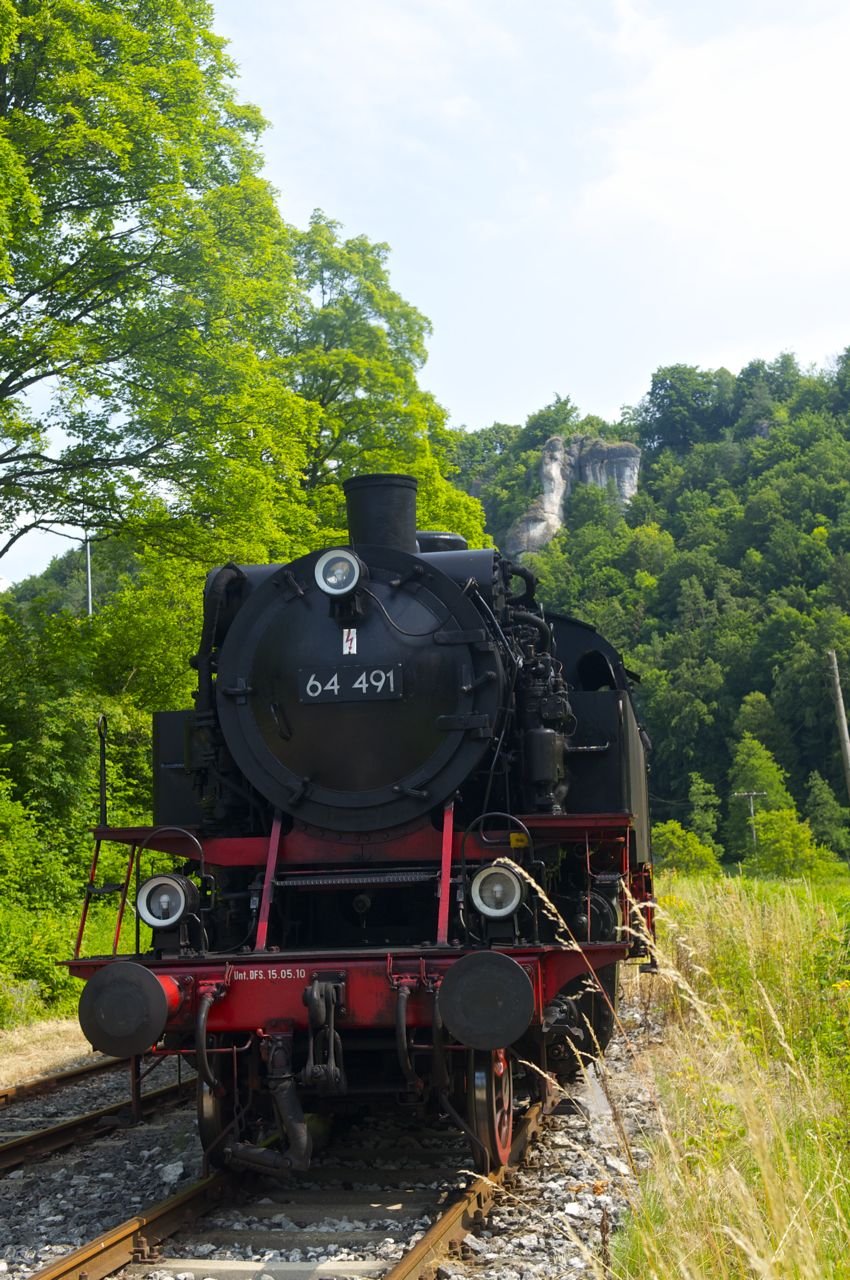 Heute ging es mit der "Dampfbahn Fränkische Schweiz" von Ebermannstadt nach Behringersmühle, zu Fuß hinauf nach Gößweinstein, mit einer historischen Diesellok wieder zurück nach Ebermannstadt und dort gab es auf dem Bahnhofsfest noch ein paar Oldtimer zu bewundern.