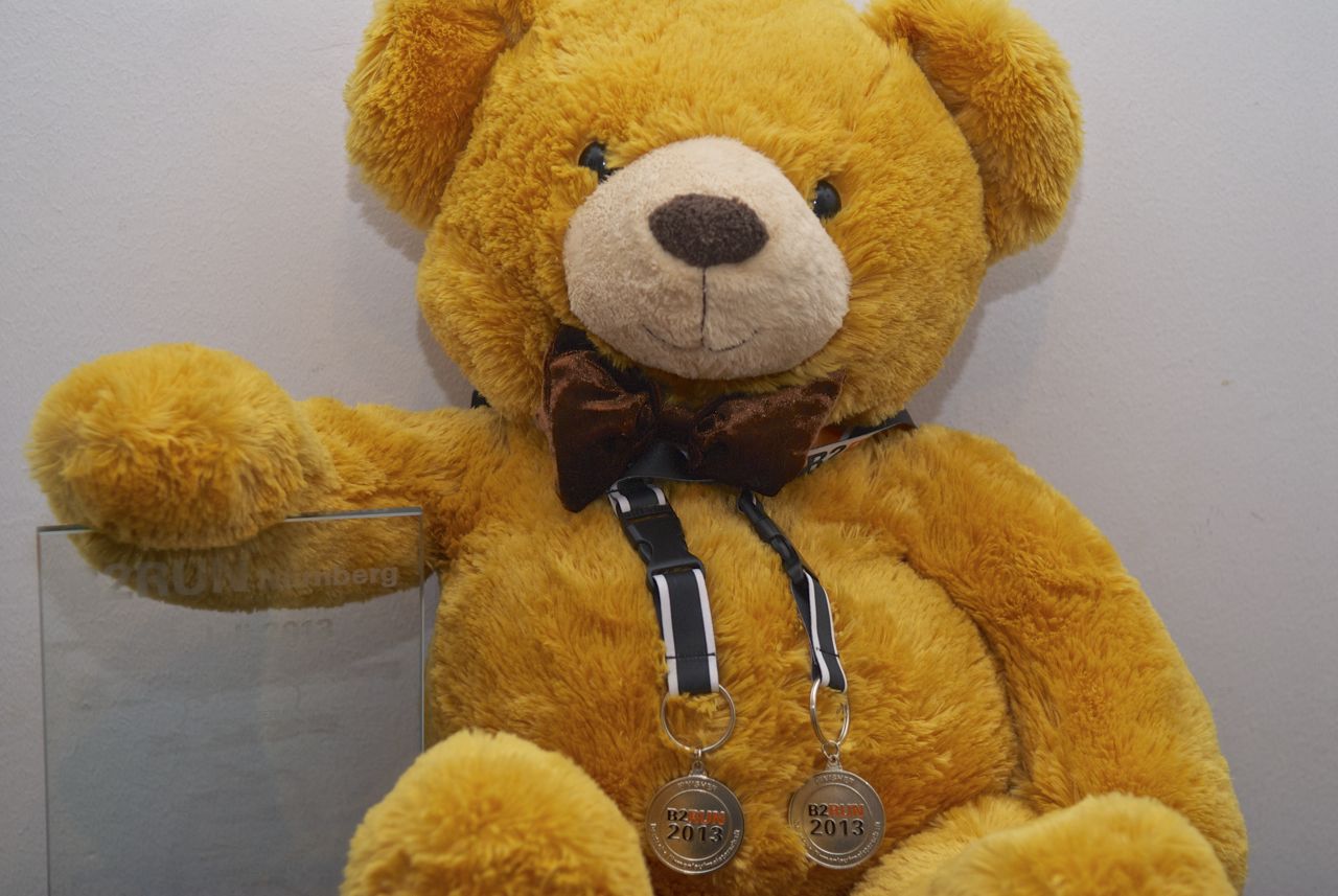 Da der Bär natürlich seine Medaillensammlung wieder erweitern wollte ;-), sorgte er dafür, dass auch wir beide die 6,1 km lange Strecke rund um den Dutzendteich mit Zieleinlauf im Nürnberger Stadion mitliefen. Beide schafften wir in diesem Jahr neue persönliche Bestzeiten und Mia gewann sogar die Kategorie "schnellste Chefin"!